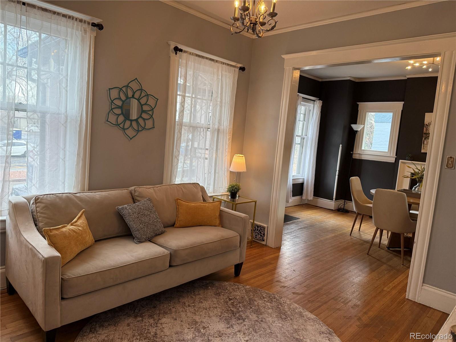 Discover this charming brick townhome in the heart of Congress Park. Built in 1906 and lovingly updated, the residence features 2 bedrooms and 1 bath with clawfoot tub. Plenty of room for storage in the basement. With hardwood floors, central A/C, full size laundry in the basement, and no HOA, the home blends historic character with modern convenience. Outside, enjoy your private patio on a 1,797 sq ft lot and relish easy access to tree-lined streets, local cafés, parks and the vibrant Denver lifestyle. A smart, stylish choice for urban living. Just steps away from several dining options including Shells and Sauce, Pete's Chinese Cafe, and Chef Zorba's Greek and Congress Park Market. Experience the convenience of urban living in this historic neighborhood.