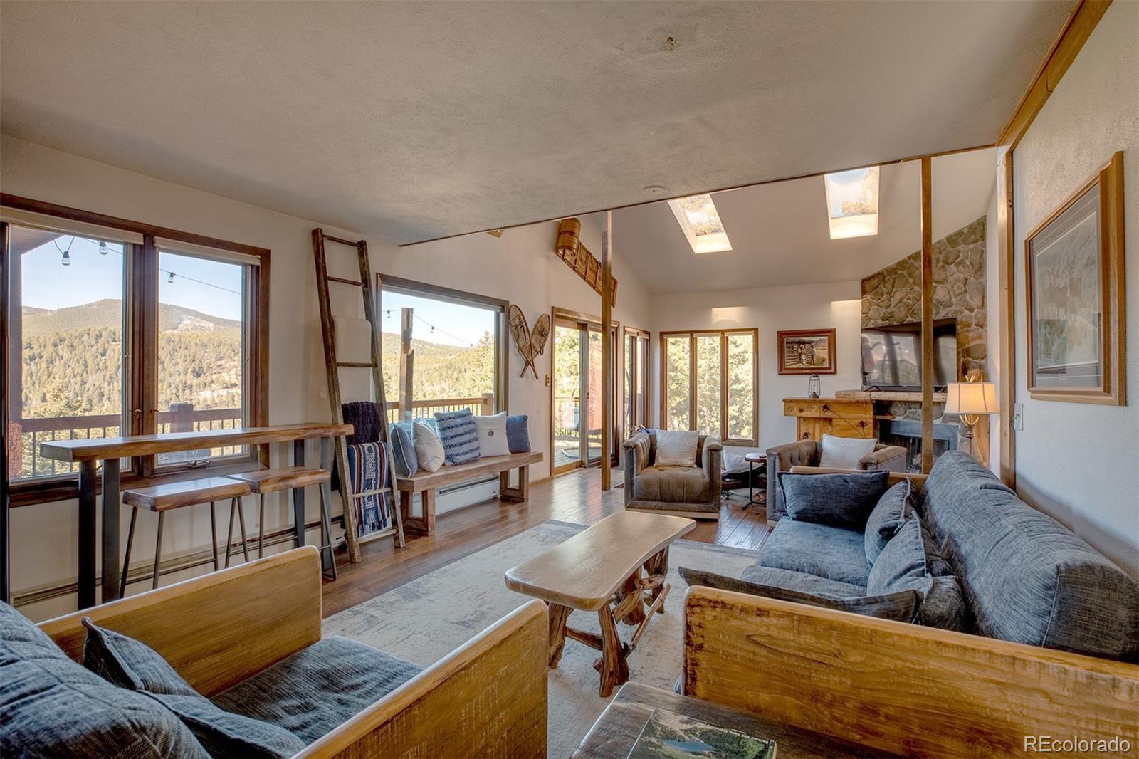 If you’ve been dreaming of mountain living with room for everyone (and then some), this Evergreen retreat delivers — with big views, cozy spaces, and a layout that actually makes sense for real life. This 4-bedroom, 5-bath home offers over 4,000 finished square feet and multiple decks perfectly positioned to soak in sweeping mountain scenery and fresh alpine air. Inside, you’ll find warm custom woodwork, a classic wood-burning fireplace for snowy evenings, and multiple gas stoves that make the entire home feel like a welcoming mountain lodge. One of the standout features is the private lock-off apartment — ideal for guests, multi-generational living, or rental income (short- or long-term). Whether you’re hosting family, giving teenagers their “independence,” providing living quarters for a caregiver, or offsetting your mortgage, the flexibility here is hard to find. After a day exploring Evergreen Lake, hiking nearby trails, or grabbing coffee and dinner in charming downtown Evergreen, come home to soak in the hot tub under starry skies, gather on the decks for sunset views, or cozy up by the fire with a cup of something warm. The home has a relaxed cabin feel with thoughtful craftsmanship throughout — comfortable, inviting, and perfectly suited to its mountain setting. If you’re looking for an Evergreen home that combines views, versatility, and that unmistakable Colorado cozy factor — with easy access to everything that makes Evergreen special — this one is ready to welcome you home. Be sure and check out the virtual tour and floor plans!