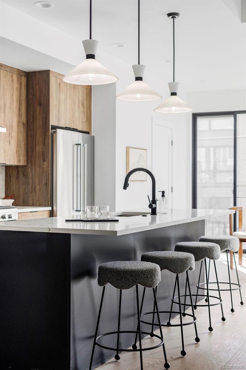This is the FINAL South-facing three-bedroom residence of its kind in the development, offering a rare opportunity to secure permanent Front Range views with both a private balcony and a hot tub reinforced rooftop deck. This is truly the last chance to own this level of townhome on Tennyson. Welcome to Tennyson Towns, a thoughtfully designed new construction community in the heart of Tennyson Square. This residence showcases elevated, designer finishes throughout, including custom kitchen cabinetry, quartz countertops, a spacious statement island, and an open-concept living area designed to comfortably accommodate large-scale furnishings. The south-facing orientation floods the home with natural light and opens directly to an entertainer’s balcony off the main living level. The expansive rooftop deck is hot tub reinforced and equipped with a gas grill hookup, creating an ideal setting for entertaining, relaxing, and taking in unobstructed mountain views that will last a lifetime. With no HOA and a one-year builder warranty included, this home delivers both design and peace of mind. An attached oversized one-car garage provides excellent storage and everyday convenience. Located just steps from vibrant Tennyson Street, you are surrounded by Michelin-recognized restaurants, breweries, coffee shops, galleries, salons, and an indoor golf club. Berkeley Lake Park and Dog Park are a short walk away, and easy access to I-70, downtown Denver, and the mountains within quick reach. Preferred lender incentives up to $3000. Purchase directly from the builder. Schedule a private showing with Sarah Thomsen at 719-304-4667.