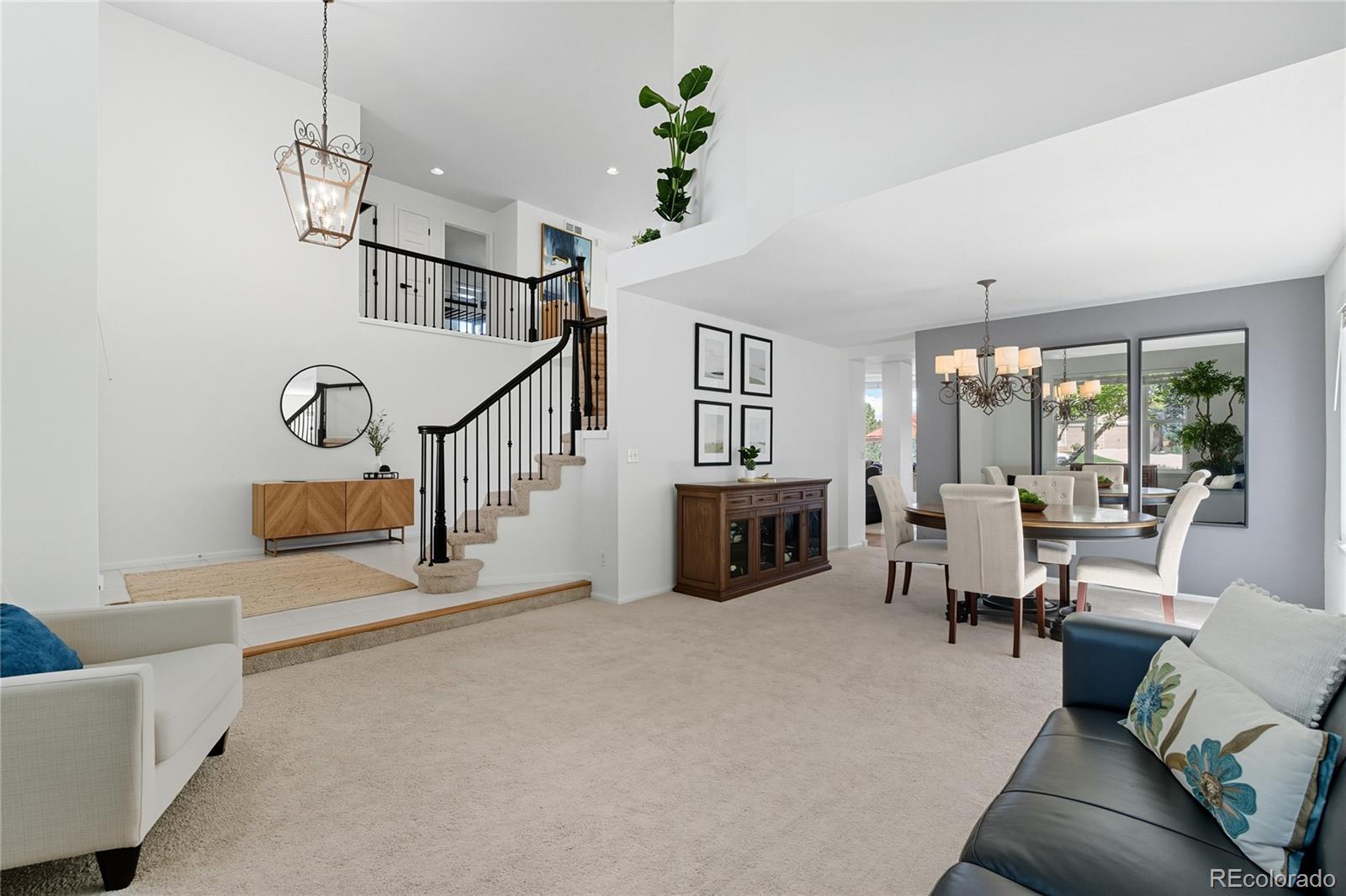 THIS HOME QUALIFIES FOR SPECIAL FINANCING. Beautiful home located on a cul-de-sac backing to The Links Golf Course. One of the most popular Joyce models with over 3800 square feet of finished living space. This home lives large with lots of room for everyone. 5 Bedrooms and 4 Baths including a Bedroom and Bath on the main level. Step into a beautiful Foyer with a vaulted stair case. The Living Room and Formal Dining Room are open off the Foyer. The Kitchen and Great Room are secluded in the back of the house and include a back stair case. The Kitchen is welcoming, bright and there is a newly refinished Deck with retractable awning, ready to enjoy the views of the golf course. The Kitchen is open to the Great Room that is oversized with lots of windows to capture those great views. There is a Bedroom on the main level that could be perfect office or Guest Bedroom and down the hall is a 3/4 Bath. The Laundry/Mud Room is located on the main level off the 3 car Garage. Head up the stairs to a lofty open area with storage. The Primary Suite has views of the golf course and a remodeled Primary Bath. Don't miss the Linen Closet tucked behind the door in the Primary Bathroom. Walk in Closet as well. Relax and have a bath in the big oversized tub. There are 3 more Bedrooms upstairs and a full Bathroom too. In the Basement find a large finished Family Room that includes a projector with the screen painted on the wall. Lots of room for whatever you want to do with it. Built-in counter with cabinet and mini refrigerator that is a nice minibar for drinks and snacks when guests arrive. The Exercise Room includes a rubber floor and a tv mount. The 3/4 Bath and Storage completes the space. Outside is mature landscaping with trees and bushes. There is a large Front Porch and welcoming front yard. This neighborhood is tucked away and close to everything Highlands Ranch, including schools, 4 Recreation Centers, walking and bike trails, shopping and restaurants.