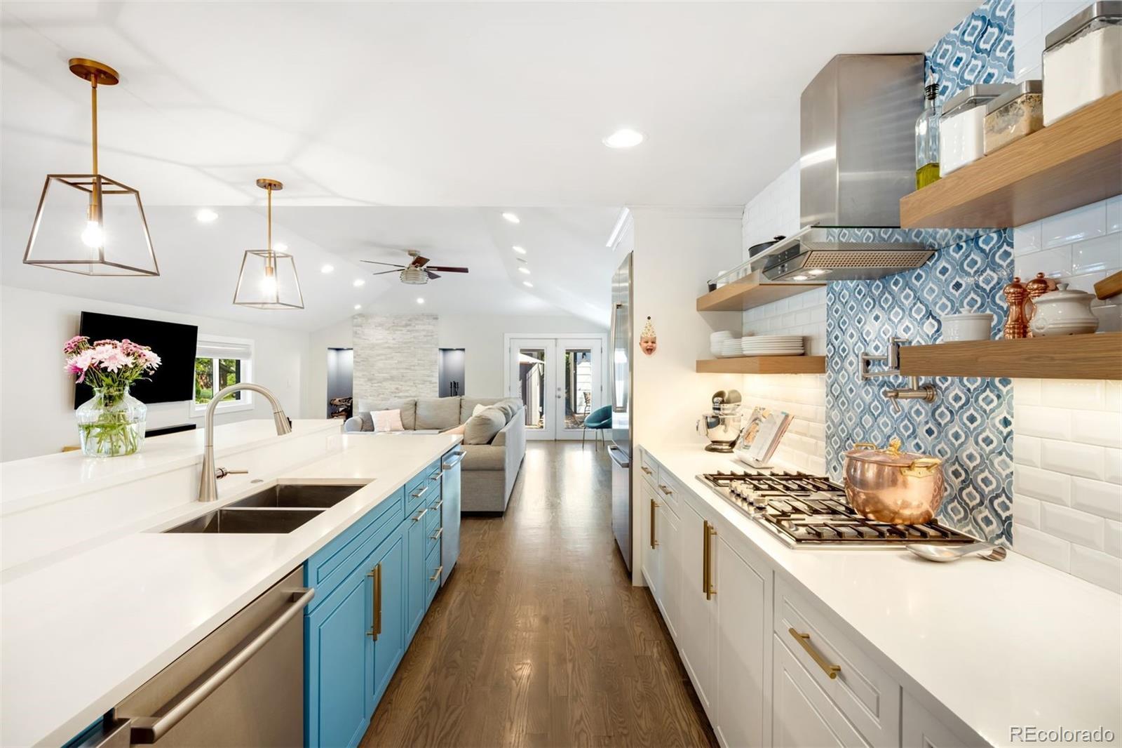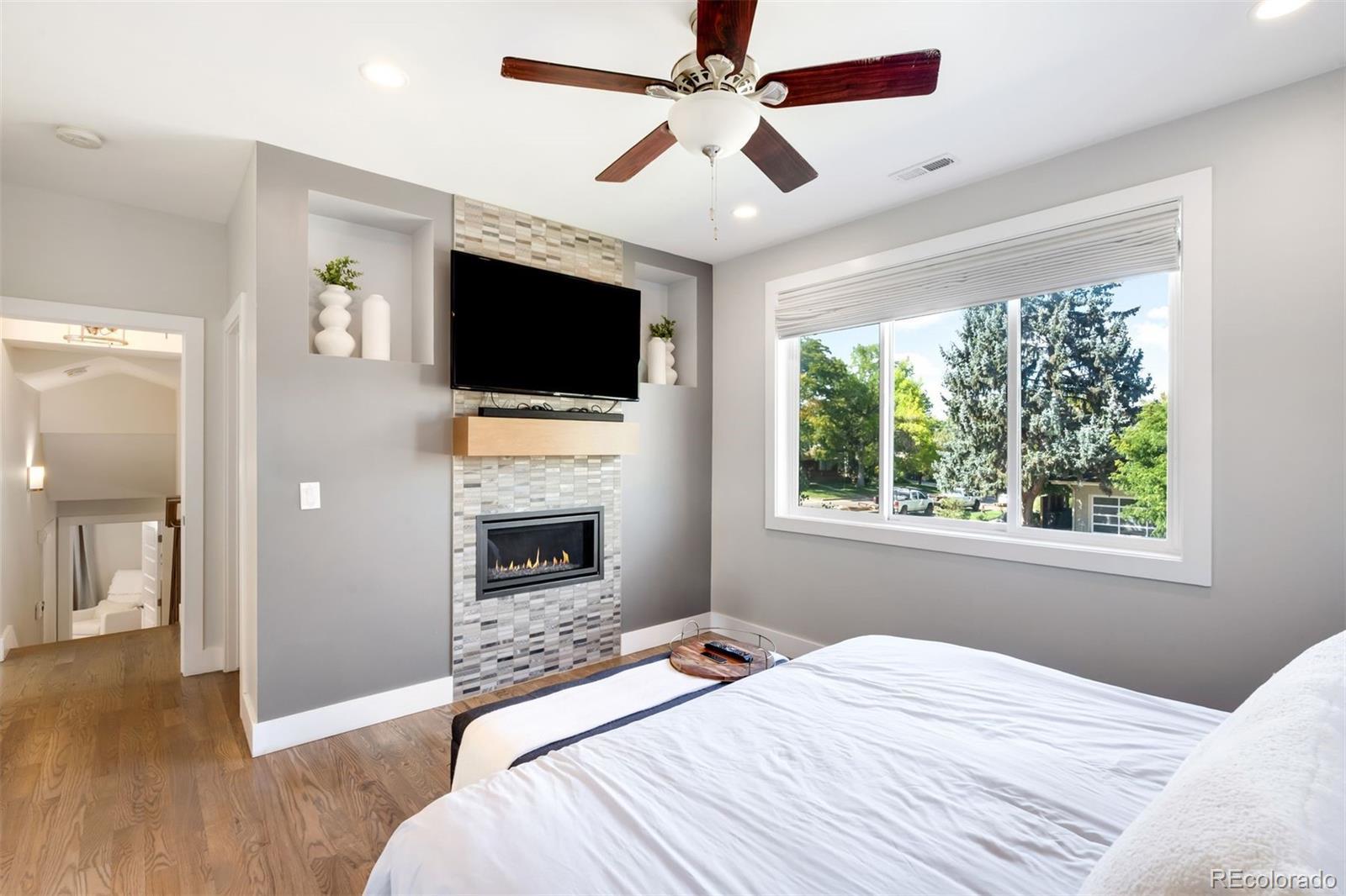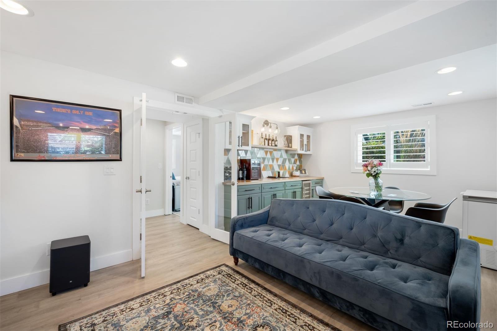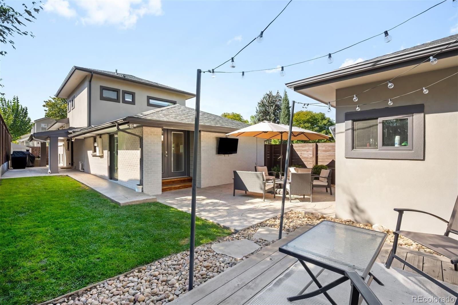 In the heart of Crestmoor Park, this beautifully updated 5-bedroom, 4-bath home blends thoughtful design, modern amenities, and a prime location just steps from one of Denver’s most cherished parks. The chef’s kitchen is designed for everyday ease and entertaining, featuring granite countertops, a large island, open shelving, a coffee bar, and the rare combination of dual Bosch ovens, dual dishwashers, and dual sinks. Natural light pours in from oversized windows, with direct access to the side patio extending the space outdoors. The dining area is bright and welcoming, while the living room showcases soaring ceilings, a sleek stone-surround fireplace, and doors that open to the private backyard. The lower level is an entertainer’s dream with a custom wet bar, built-ins, and space for a media lounge or game table. A secluded guest suite with an adjacent full bath completes this level. Upstairs, three secondary bedrooms share full baths and provide flexible options for playrooms, home offices, or guest quarters. The third floor is reserved for the primary suite, a retreat with its own fireplace, a walk-in closet, and a spa-like 5-piece bath with dual vanities, soaking tub, and walk-in shower. A conveniently placed laundry room adds practicality. Outdoors, the backyard is landscaped for gatherings with a stamped concrete patio, dining space, and mature greenery. The detached two-car garage includes a mini-split system for year-round comfort, and the detached Studio Shed, also with a mini-split, is ideal as a home office, gym, or creative studio. Just steps from Crestmoor Park and within walking distance of Pete’s Market, Park Burger, and Boulevard One at Lowry, this home is also minutes from Cherry Creek. Top-rated schools, neighborhood favorites like High Point Creamery and Call Your Mother Deli, and community amenities including the Crestmoor Community Center are all nearby. This home is the complete package: spacious, stylish, and perfectly located.