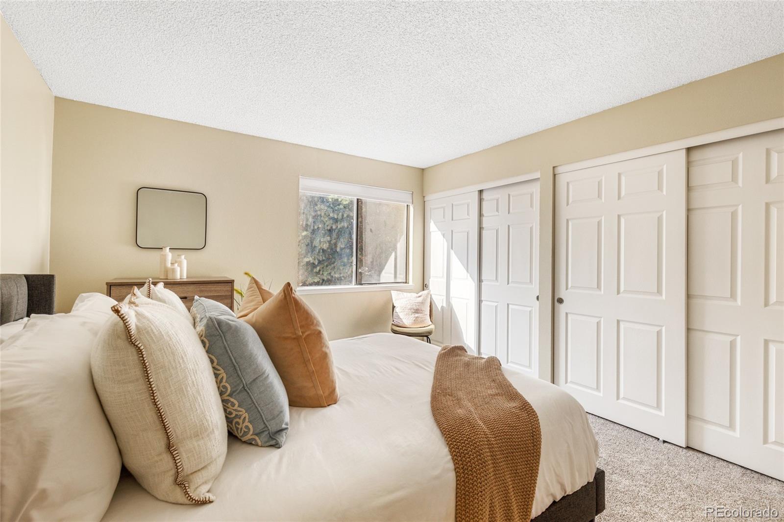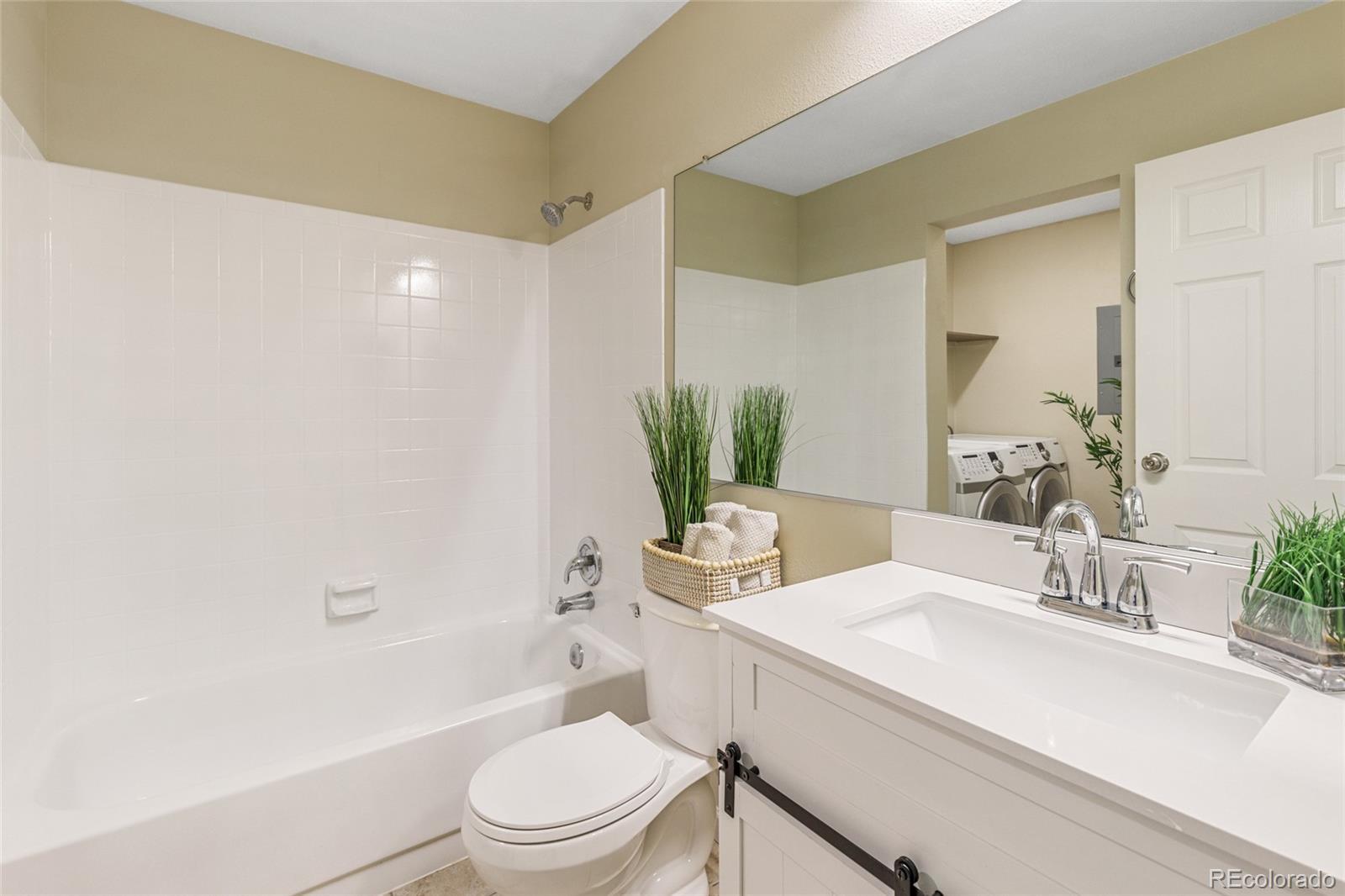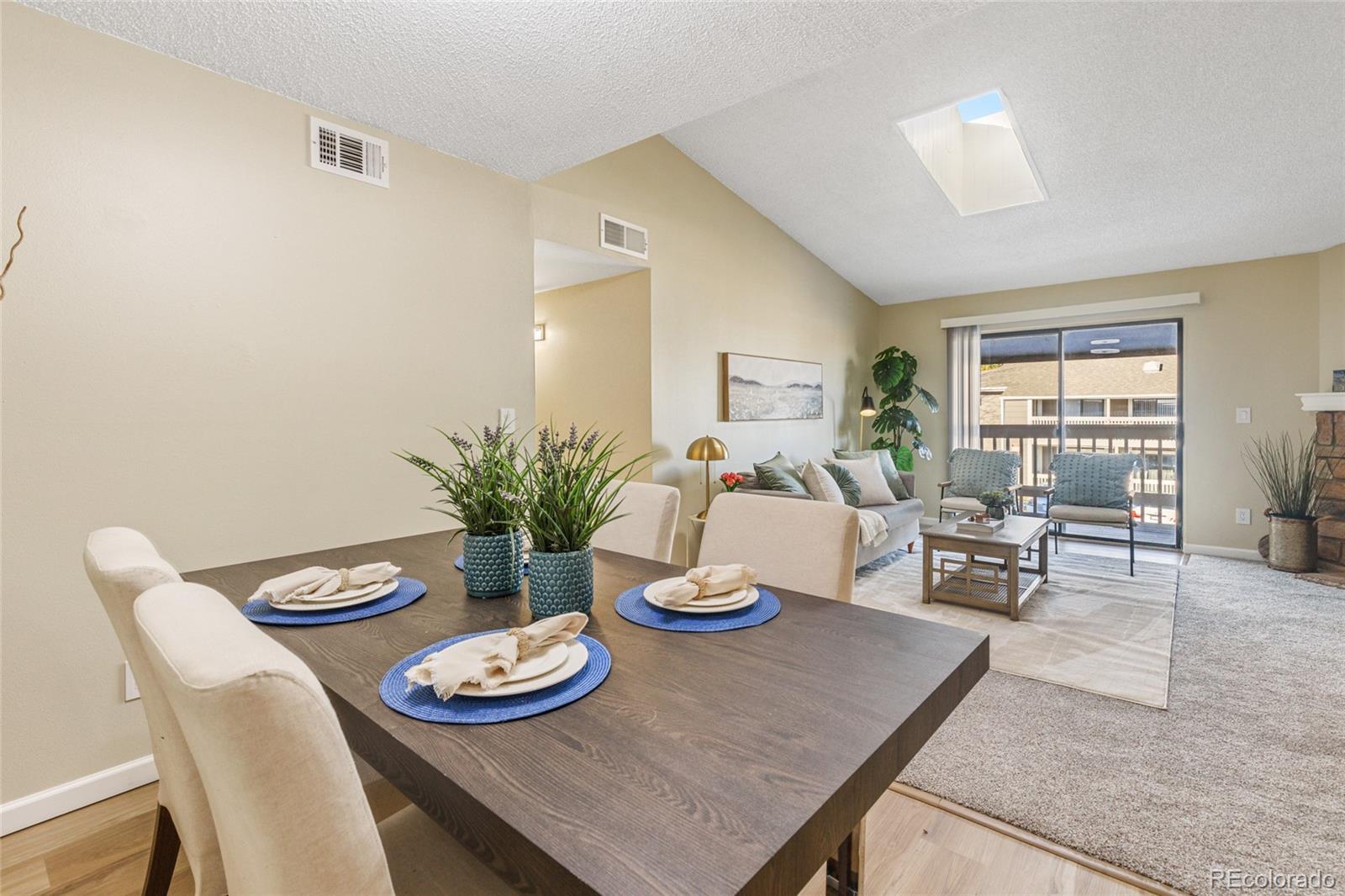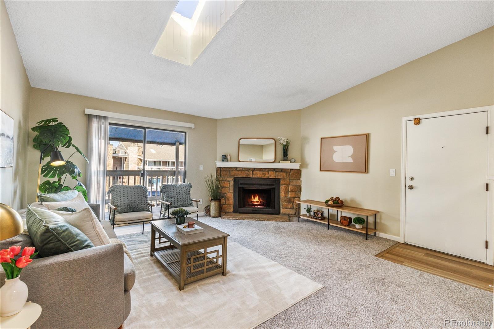 Beautifully Remodeled 3-Bedroom, 2-Bath Second-Floor Condo – All Updates Completed in 2026. The brand-new kitchen features elegant quartz countertops, stainless steel appliances, counter depth refrigerator creates more space and modern finishes. Both bathrooms have been fully renovated with quartz vanities, contemporary tile work, and updated lighting. Brand-new carpet runs throughout the home, and every room has been freshly painted, creating a clean and cohesive look. All new 6 panel doors and lighting in every room. Enjoy cozy evenings by the fireplace or entertain effortlessly with two sliding glass doors that open to a spacious covered patio. Vaulted ceilings and a skylight fill the home with abundant natural light. Oversized washer and dryer included. The unit includes two reserved parking spaces (#339 and #343) and is ideally located directly across from open space. Conveniently situated just 5 minutes from Buckley Air Force Base, close to Anschutz Medical Campus, 20 minutes from DIA, and within walking distance to a bus line. Biking/Walking Trail borders complex and other open space near by. The community offers excellent amenities, including a playground, basketball court, and clubhouse—making this an exceptional place to call home. Perfect layout for roommates and rental at over $2,000 per month.