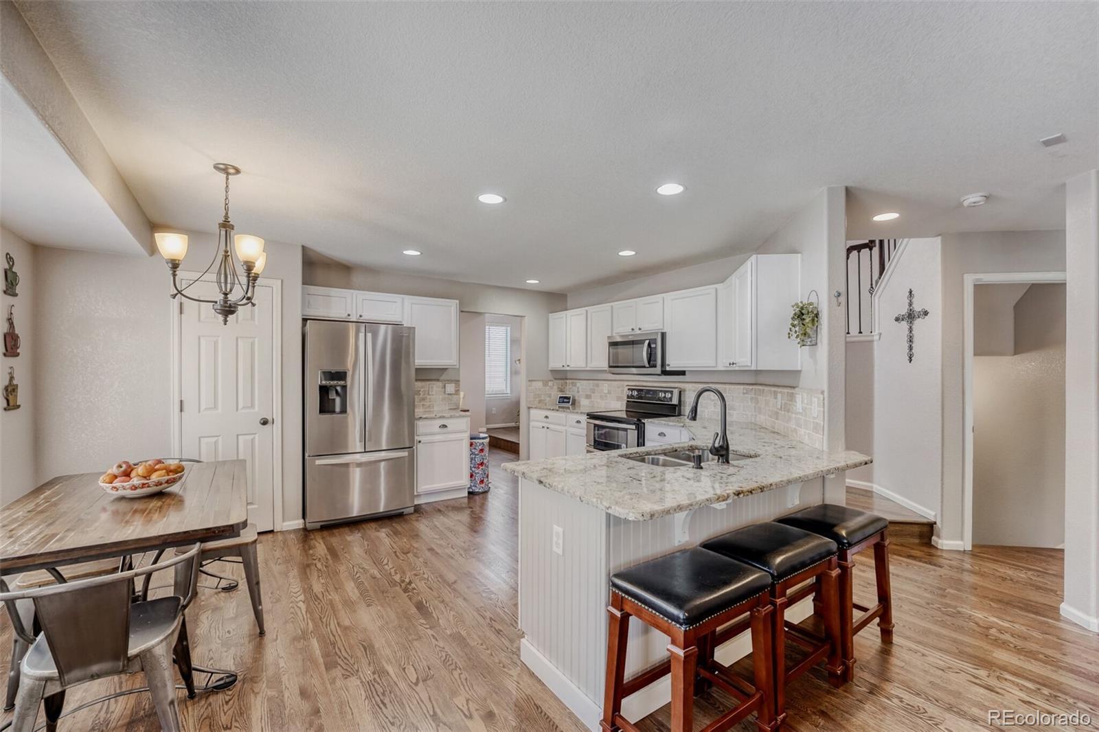 OPEN HOUSE SATURDAY 1/24, 11:00 - 2:00. Come check it out... this is the one you're going to fall in love with! You'll be impressed with the great finishes, spacious floor plan and the abundance of livable, usable space. With a formal living room and dining room, remodeled kitchen with eat-in area, family room with built-in speakers and custom built-ins, the main floor flows beautifully for hosting, entertaining or just everyday living. The backyard is private, inviting & fully fenced. The primary bath has a spacious walk-in closet and full 5-piece bath, fully remodeled! There are three additional bedrooms with a remodeled bath on the upper floor. The basement is fantastic for entertaining, relaxing or a quiet office space. It has a great design including a wet-bar and mini fridge. In addition, with built-in speakers pre-wired, it makes a perfect home theater. Amazing location with proximity to all you need from shopping, dining, recreation and easy access to DIA.