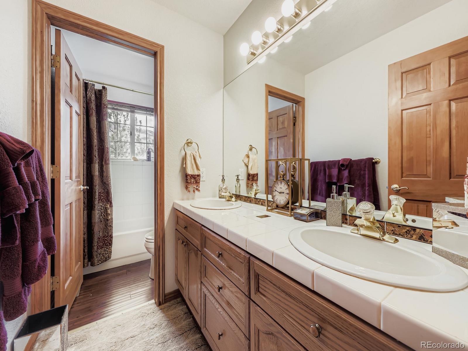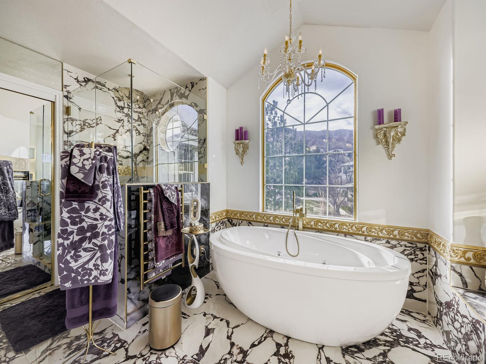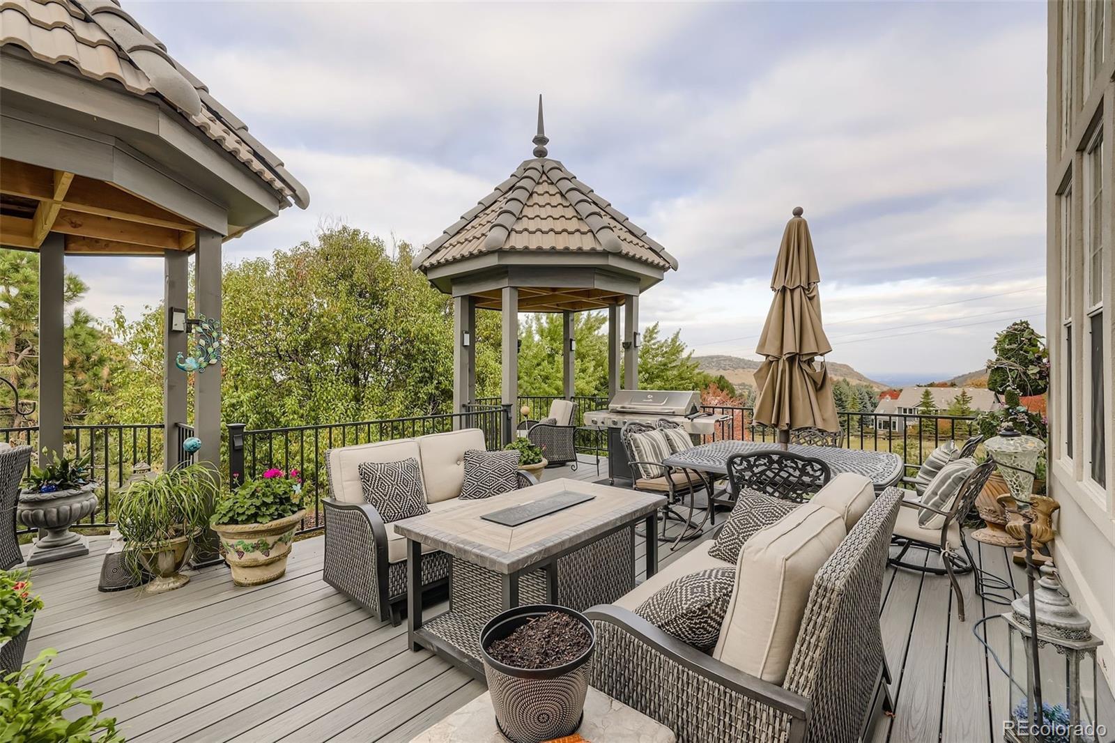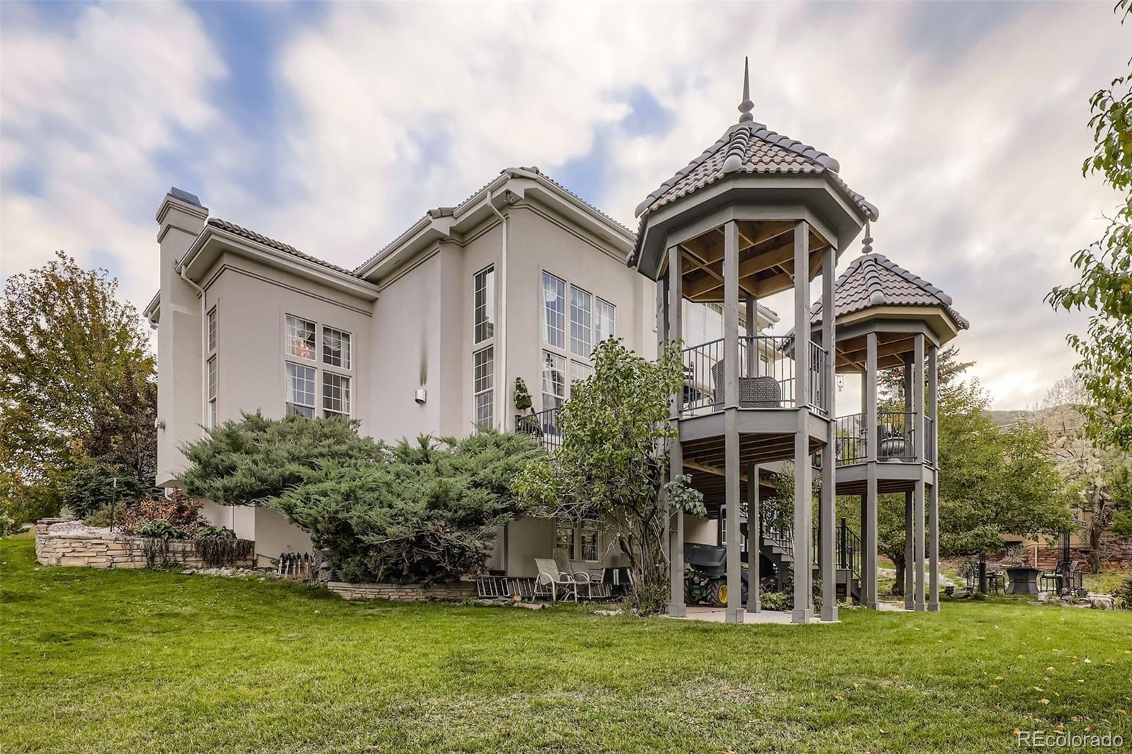 NEXT OPEN HOUSE: Saturday January 31st from 12-3pm. Live like royalty in this freshly painted Morrison masterpiece, where a $120,000 custom “Castle Deck” with twin turrets and sweeping elevated views creates a fairytale-worthy outdoor escape on a large corner lot backing to hundreds of acres of greenbelt in a one-of-a-kind and popular neighborhood just minutes from Red Rocks Country Club. Step inside and be greeted by a striking main living room with porcelain tile, vaulted ceilings, and a fireplace, flowing seamlessly past the staircase into a second living area and open kitchen featuring granite countertops and partially heated floors — perfect for entertaining or everyday life. Adjacent to the kitchen is a dedicated dining space, ideal for family meals or hosting guests. Downstairs, you’ll find three additional bedrooms, a living space perfect for movie nights, and a bar for serving guests. Upstairs, the home features three bedrooms, including the primary suite. The primary suite is a serene retreat with a private sitting area, new mahogany floors, and a spa-inspired bathroom featuring porcelain tile, a walk-in shower with massage jets, a freestanding jacuzzi tub, heated porcelain floors, and a see-through fireplace connecting the bath and bedroom. Two dual fireplaces and three gas fireplaces add warmth and charm, while new thick plush carpet in the hallway and stairs ensures comfort throughout. Step outside to a peaceful natural setting with deer and wildlife roaming nearby. Additional highlights include an oversized 3-car garage, stamped decorative concrete front porch, barrel concrete composite tile roof, central vacuum system, and brand-new A/C, whole-house attic fan, and premium central humidifier. From the iconic castle-style deck and rare greenbelt access to the flowing living spaces and luxurious primary suite, this home offers a complete Colorado lifestyle. Schedule your showing today before this one-of-a-kind home is gone.