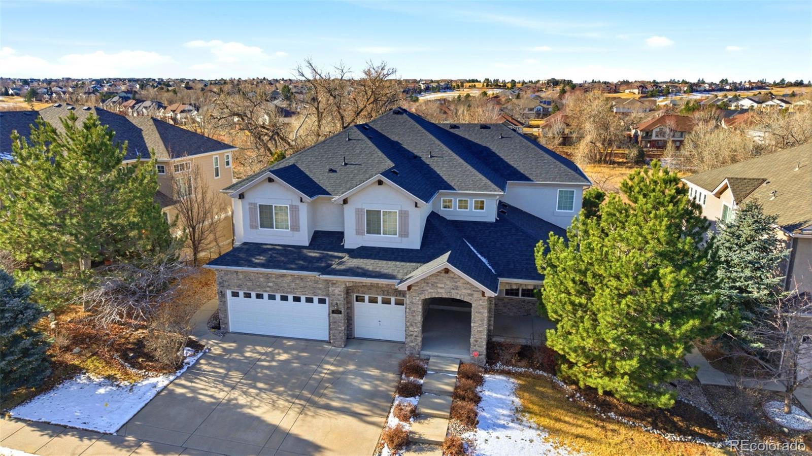 $25,000 seller concession with full price offer! Coming on the market January 15, 2026. Beautifully designed home backing to tranquil open space, offering privacy and peaceful views. Bright living spaces feature luxury vinyl plank flooring and abundant natural light. The updated kitchen includes custom cabinetry, quartz countertops, large island, breakfast nook, plus butler’s and walk-in pantries, and opens to the family room with soaring ceilings, expansive windows, and a cozy fireplace. Main level offers a private office with French doors, laundry with cabinetry, and a 3-car garage. Upstairs features a spacious primary suite with vaulted ceilings, sitting area, open-space views, and a 5-piece bath, plus additional bedrooms, Jack-and-Jill bath, hall bath, and loft. Finished walk-out basement includes wet bar, large rec area, guest bedroom, ¾ bath, and storage. Enjoy the private backyard with deck overlooking open space and stone patio with pergola. New Class 4 wind-resistant roof (Nov 2025) and brand-new sewer line. Convenient location near shopping, dining, highways, and top-rated schools in highly desired Cherry Creek School District. Open Houses: Friday, January 16 from 2:30pm-4:30pm & Sunday, January 18 from 1:00pm-4:00pm