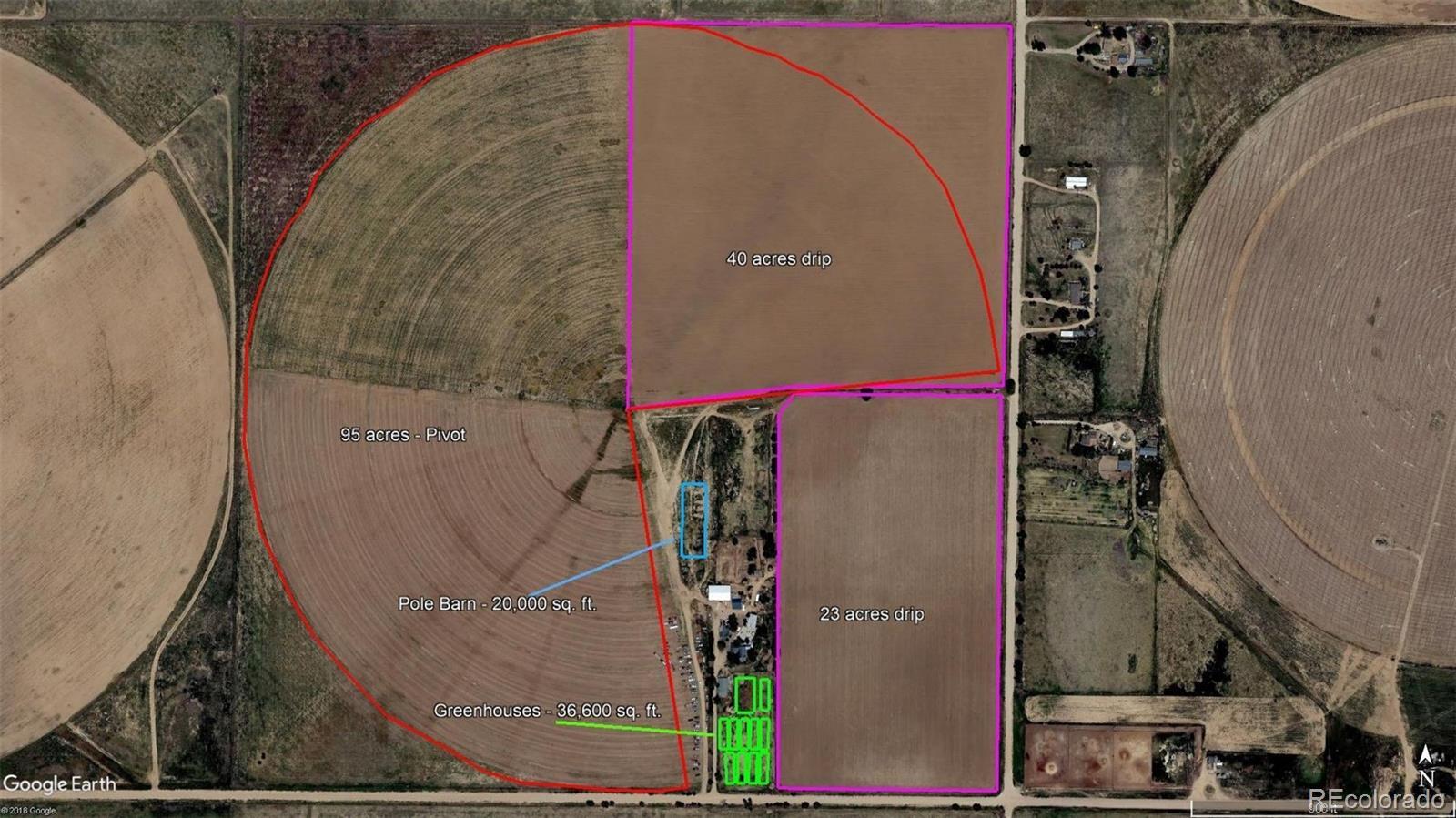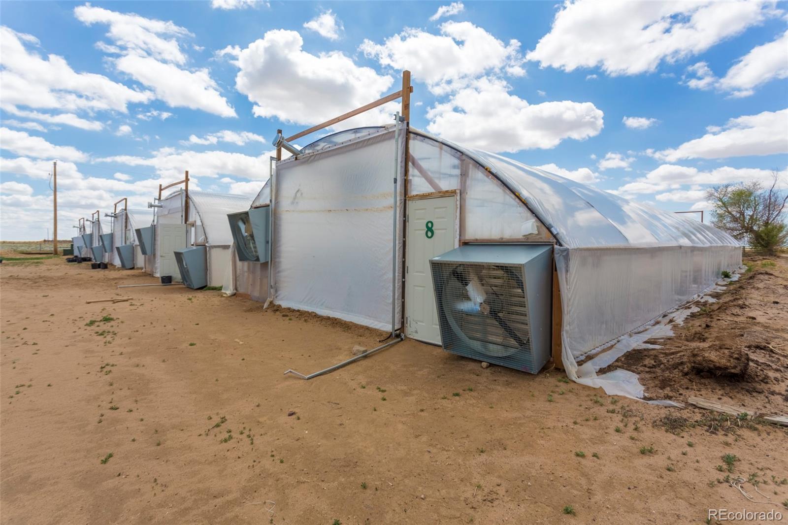 Farm and Homestead opportunity: 160 acre turn key fully functional farm with THREE homes in Colorado Springs’ Pikes Peak Enterprise Zone, new owner can receive substantial tax credits for various economic development activities! Extensive list of structures and equipment included! Main Farmhouse is 3 bed 2 bath, 2,620 sf. The Cottage home is 1 bed 1 bath and 510 sf. The NEW manufactured home, completed January 2025, is 4 beds, 3 baths, and 2,280 sf – plus 3 campers for seasonal employees! Major features include a 20,000 sf Pole Barn (5 yrs old), 11 greenhouses totaling over 36,000 sf completed in 2019 with LED lighting, several other barns & steel buildings, multiple storage sheds, and a steel silo/storage building. Irrigation for 120 acres of the crop producing acreage is provided by a center pivot and drip irrigation, fed by 2 new well pumps. An extensive list of equipment includes tractors, Swathers, Mowers, Cultivators, drip irrigation row makers & removers, cultipackers, air compressors, and more – see brochure for complete list. Newer upgraded electrical service to many structures and internet is available in all 3 homes and the pole barn. Six frost-free water hydrants protect your assets. Situated about 40 min southeast of Downtown Colorado Springs (17 miles east of Pikes Peak Int’l Raceway), this ready-to-operate farm is the perfect opportunity to create a profitable and self sustaining life and still remain close to town. Two years ago, a tenant farmer attained the “Certified Organic Status”, new owner can achieve as well. Water by domestic well & water shares through AGRA. Shown by appointment, seller financing available. See supplements for complete inclusion list and information on Enterprise Zone benefits.