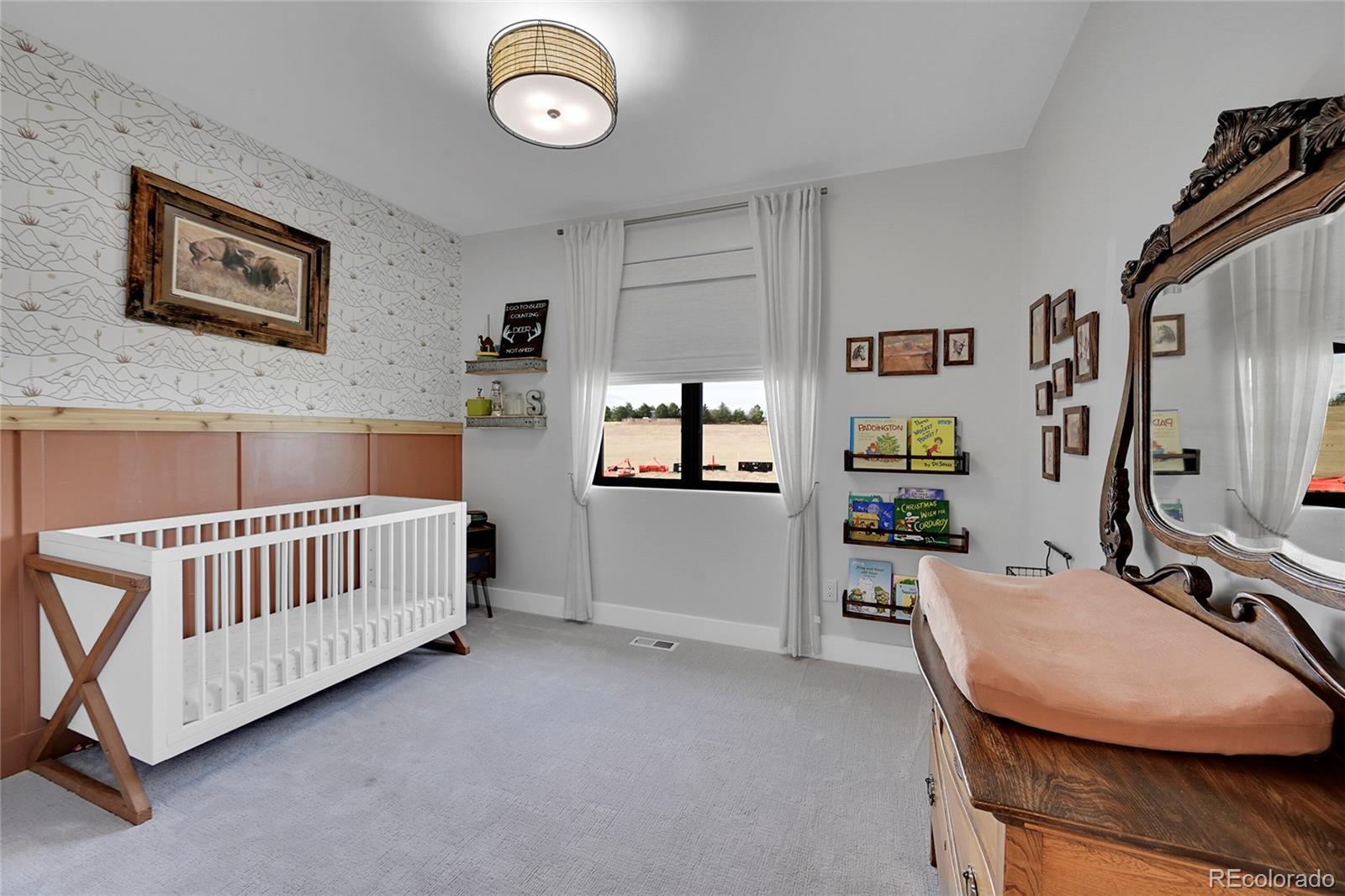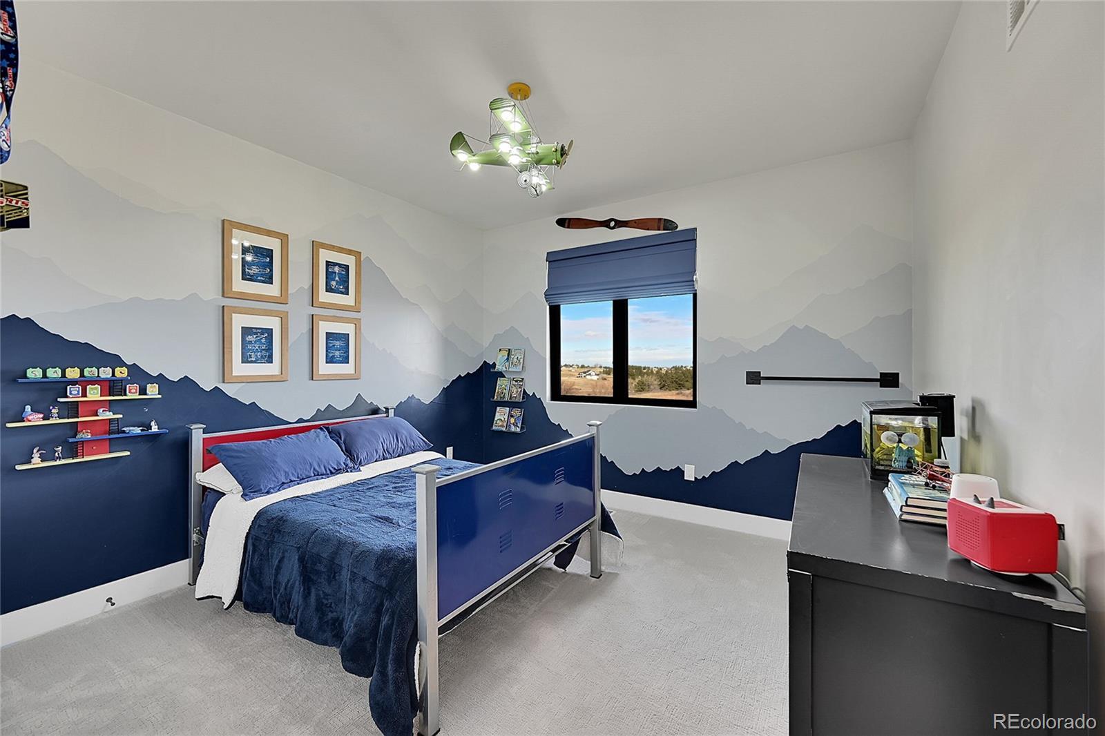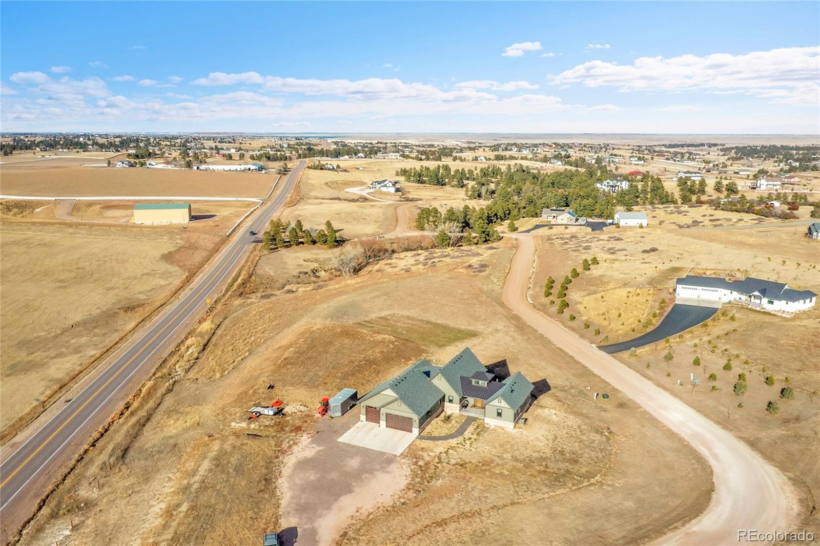 Rocky Mountain Runway House. A rare opportunity to own a newly constructed estate within the exclusive, gated enclave of Rocky Mountain Airpark Estates-where refined design meets wide-open Colorado living. Set on an expansive 10-acre parcel and benefiting from the favorable taxes of Elbert County, this remarkable residence offers privacy, scale, and a lifestyle tailored for those who expect more. From the moment you arrive, the home impresses with soaring ceilings, dramatic volumes of natural light, and curated designer finishes throughout. The main-level primary suite is a true retreat, featuring vaulted ceilings, direct patio access, a spa-inspired five-piece bath with soaking tub, and an oversized walk-in closet. The great room stuns with floor-to-ceiling windows framing sweeping views, anchored by a striking rock fireplace that commands attention. The kitchen is both showpiece and workhorse, complete with an oversized prep island, quartz countertops, ice maker, beverage refrigerator, and a generous walk-in pantry-perfect for effortless entertaining. A thoughtfully designed mudroom and laundry with dog wash station add everyday ease. Three additional main-level bedrooms are bright, spacious, and beautifully appointed. The lower level expands the experience with a rec room, guest suite with a three-quarter bath and steam shower, a dedicated gym, and an indoor sport court ideal for entertaining, recreation, and year-round enjoyment. Designed with aviation enthusiasts in mind, the property offers direct proximity to the private Everitt Airport, with plans available for a future hangar on site. You will love the endless space to create your own vision of Colorado luxury. This is more than a home-it's a lifestyle defined by freedom, function, and uncompromising quality.