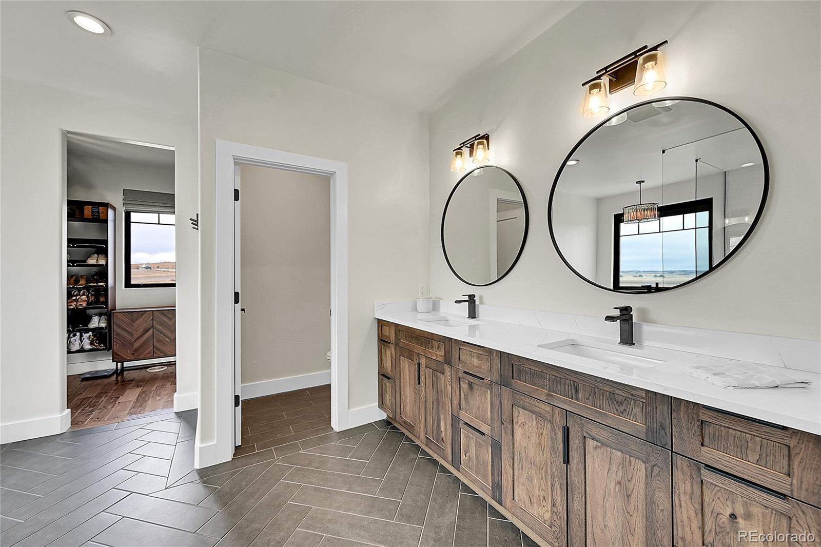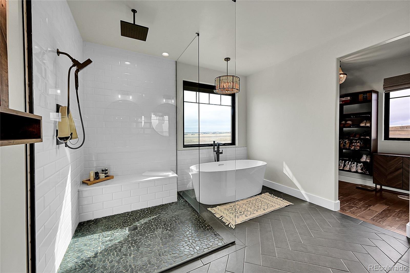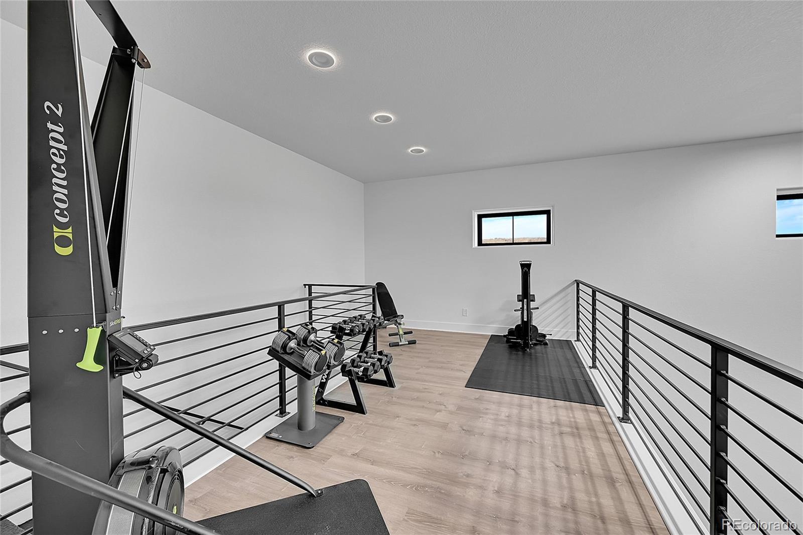Rocky Mountain Runway House. A rare opportunity to own a newly constructed estate within the exclusive, gated enclave of Rocky Mountain Airpark Estates-where refined design meets wide-open Colorado living. Set on an expansive 10-acre parcel and benefiting from the favorable taxes of Elbert County, this remarkable residence offers privacy, scale, and a lifestyle tailored for those who expect more. From the moment you arrive, the home impresses with soaring ceilings, dramatic volumes of natural light, and curated designer finishes throughout. The main-level primary suite is a true retreat, featuring vaulted ceilings, direct patio access, a spa-inspired five-piece bath with soaking tub, and an oversized walk-in closet. The great room stuns with floor-to-ceiling windows framing sweeping views, anchored by a striking rock fireplace that commands attention. The kitchen is both showpiece and workhorse, complete with an oversized prep island, quartz countertops, ice maker, beverage refrigerator, and a generous walk-in pantry-perfect for effortless entertaining. A thoughtfully designed mudroom and laundry with dog wash station add everyday ease. Three additional main-level bedrooms are bright, spacious, and beautifully appointed. The lower level expands the experience with a rec room, guest suite with a three-quarter bath and steam shower, a dedicated gym, and an indoor sport court ideal for entertaining, recreation, and year-round enjoyment. Designed with aviation enthusiasts in mind, the property offers direct proximity to the private Everitt Airport, with plans available for a future hangar on site. You will love the endless space to create your own vision of Colorado luxury. This is more than a home-it's a lifestyle defined by freedom, function, and uncompromising quality.