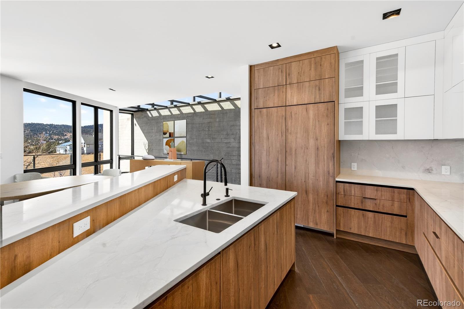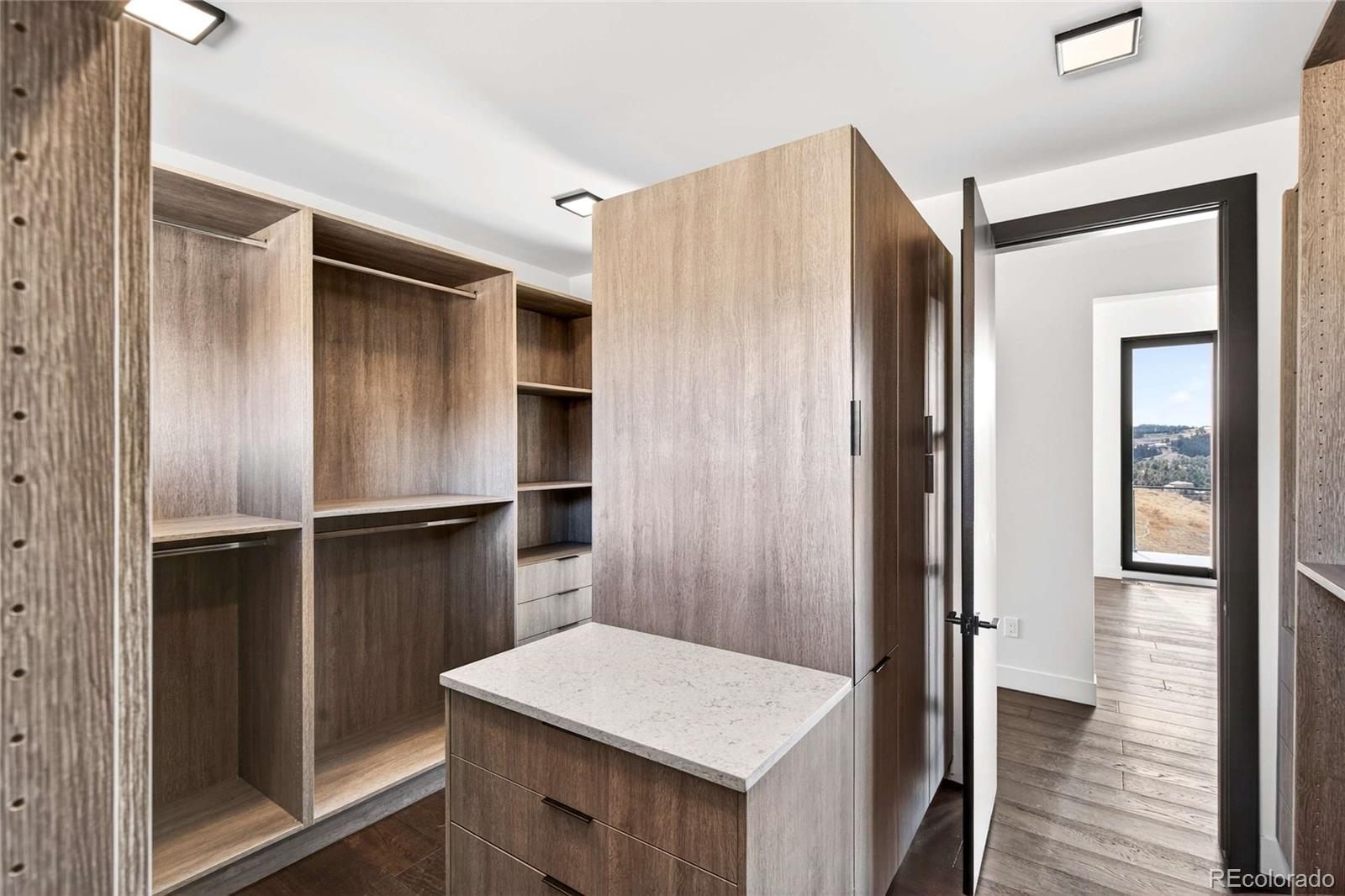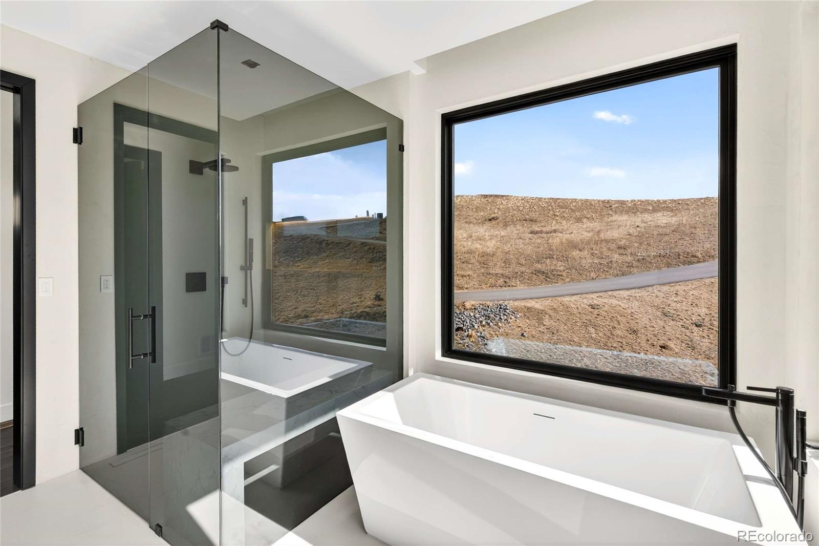 Set on 1.59 acres in Golden’s coveted Paradise Hills enclave, 545 Strada Rossa Road presents a rare opportunity to acquire a newly built architectural residence designed by TKP Architecture—now offered as a bank-owned property. Thoughtfully composed to honor the surrounding foothills, the home blends striking modern design with expansive mountain vistas and refined livability. Walls of Andersen windows invite natural light and frame sweeping views, while soaring ceilings, warm oak flooring, and bespoke built-ins create a sense of understated sophistication. The open-concept main level centers around a chef’s kitchen appointed with Dacor appliances, Hansgrohe fixtures, custom Marfa cabinetry, and a dramatic waterfall stone island oriented to capture the landscape beyond. The primary suite is a private retreat featuring a spa-inspired bath with floating vanities, a freestanding soaking tub, and an oversized walk-in closet. Three additional en-suite bedrooms, a media room, fitness or flex space, and a wet bar offer versatility for both everyday living and entertaining. Comfort and efficiency are enhanced by smart thermostats, a home security system, and a dual Trane heating system. Outdoor living unfolds across multiple levels with a covered patio, upper balcony, outdoor kitchen with grill, and a private pool on the lower terrace. The mostly flat site allows effortless enjoyment of the natural setting, where wildlife sightings are a daily pleasure. A three-car garage, durable membrane roof, and an exterior palette of stone, wood, stucco, and metal complete the home’s modern yet enduring appeal. Paradise Hills HOA services include snow removal, with immediate access to open space and trails. Ideally located approximately 30 minutes from Denver and Boulder, 45 minutes from world-class skiing, and within Jefferson County R-1 schools, this is a compelling opportunity to secure a luxury foothills residence with privacy, views, and architectural distinction.