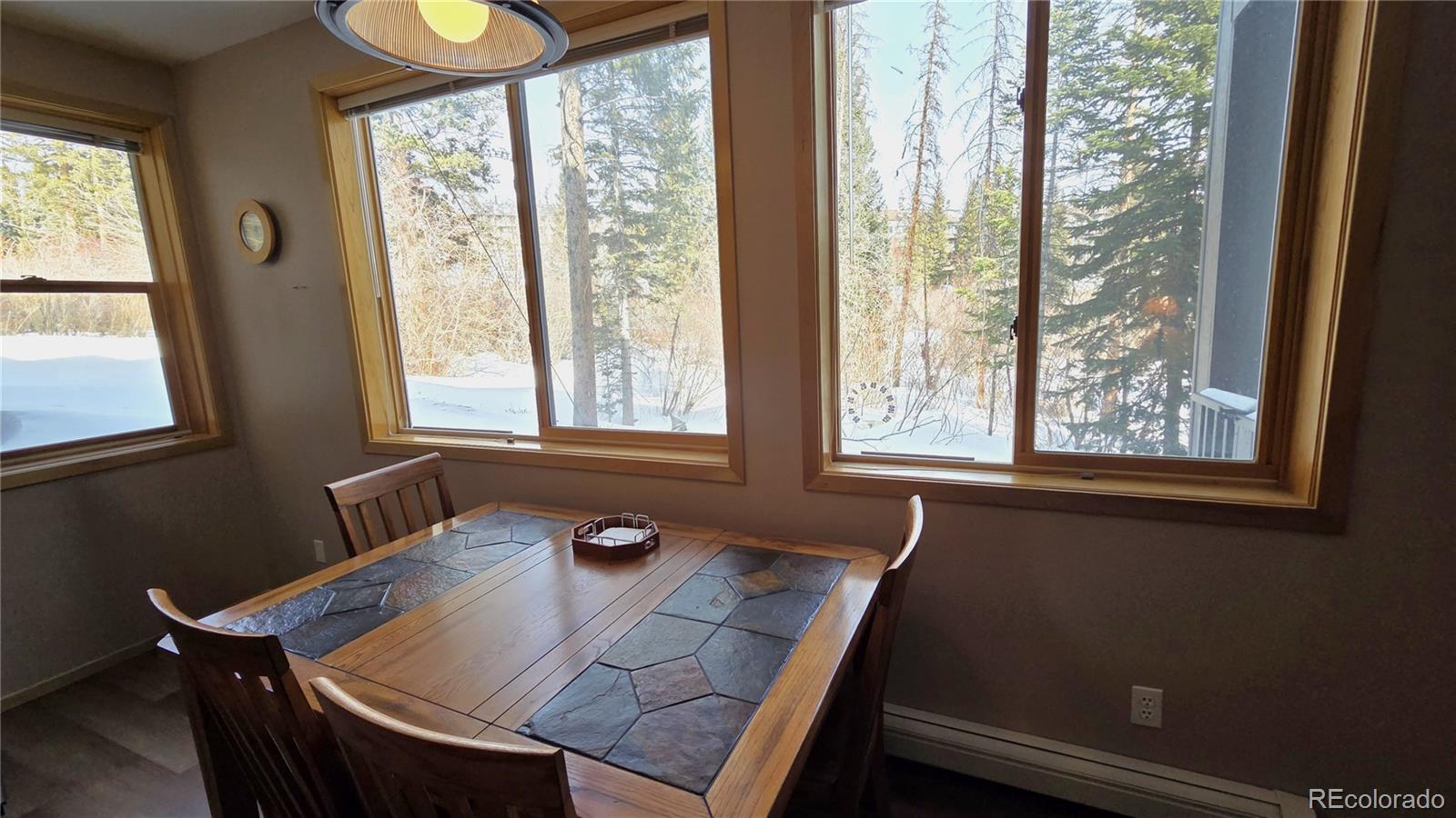 You'll enjoy the private feel and mountain charm of this 2 bedroom, 2 bath condo. Whether it's your mountain escape or full time residence, a 12 month lease gives you access to everything Summit County has to offer. Snowshoe or hike into Wilderness Areas right outside your door. Take the bike path and pedal to nearly anywhere in the county. Easy access to multiple ski areas. Water fun on Lake Dillon. Moderate temperatures and fantastic recreation at your fingertips. You can squeeze in some work in between the fun. Fully furnished and ready to go, just bring your own linens & clothes. With ample windows and a deck that looks out over open space you may catch a glimpse of a moose or fox from time to time. Love where you live! It's so well kept and easy too. Community amenities include a hot tub & fitness center. The year you spend here will include a ton of incredible memories that will last a lifetime. Rent includes utilities. Application & credit check. No pets. No smoking. Minimum 6 month lease. First, last & security deposit required.