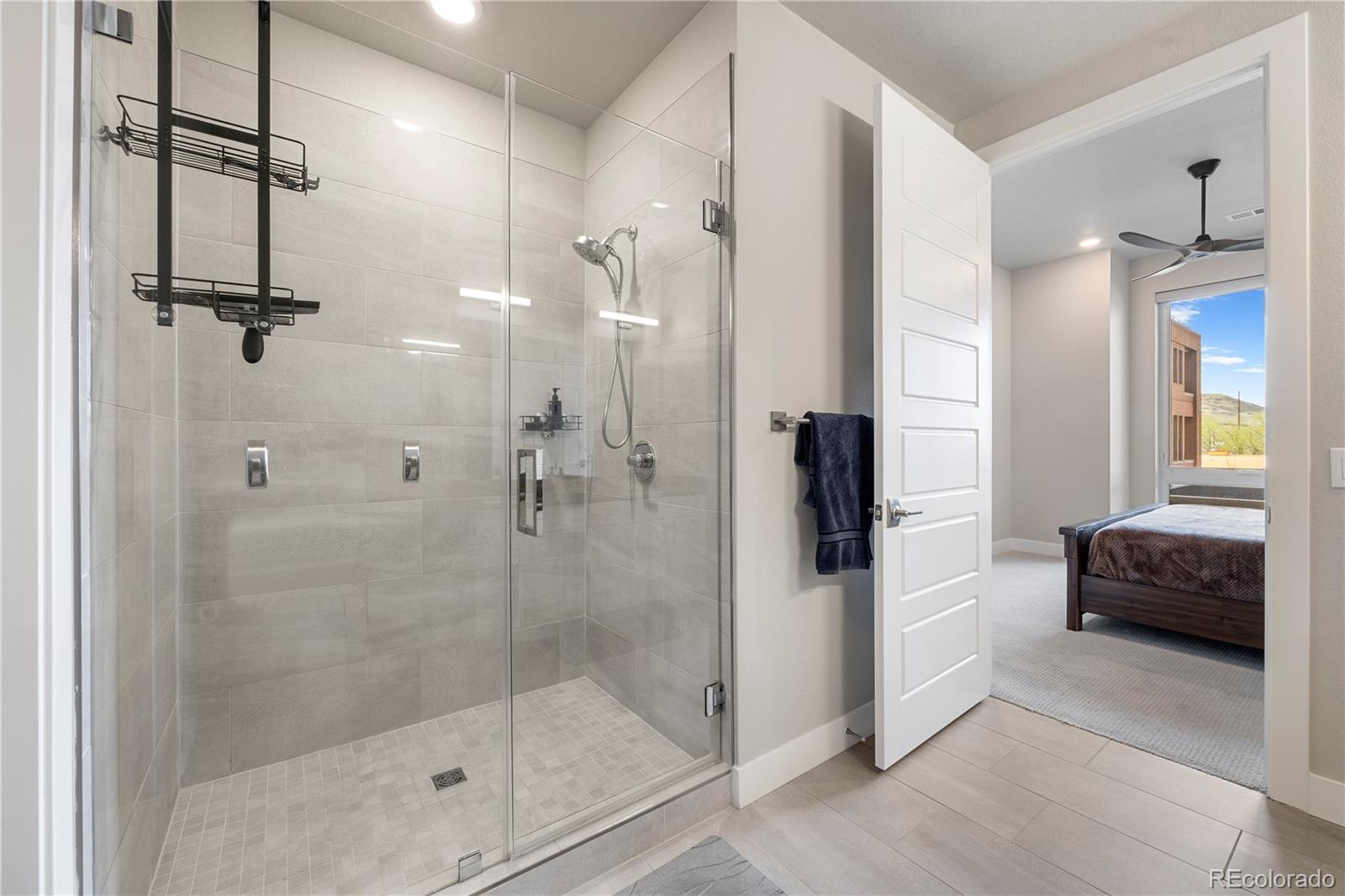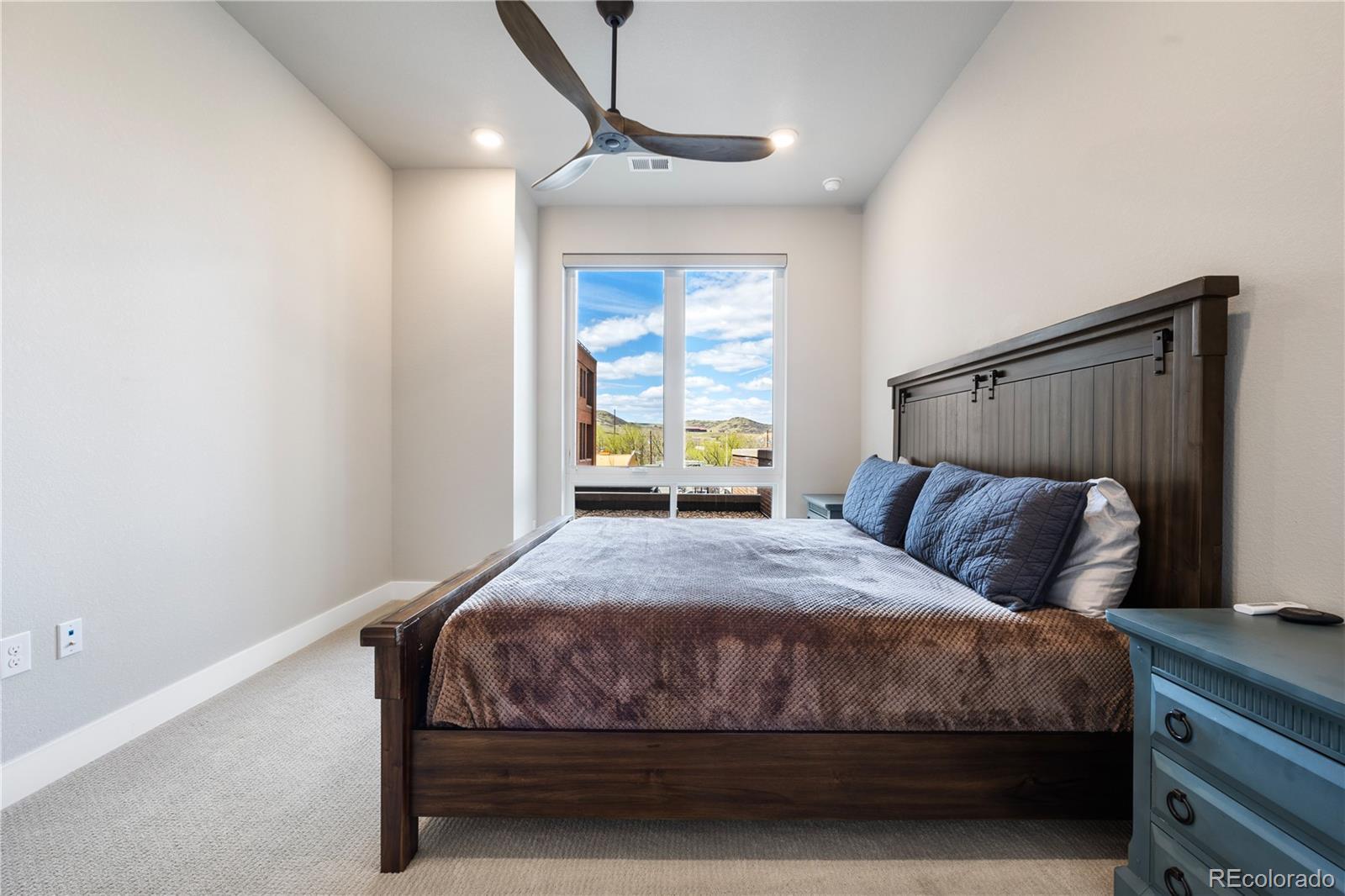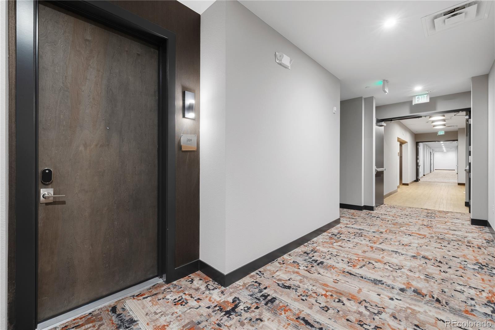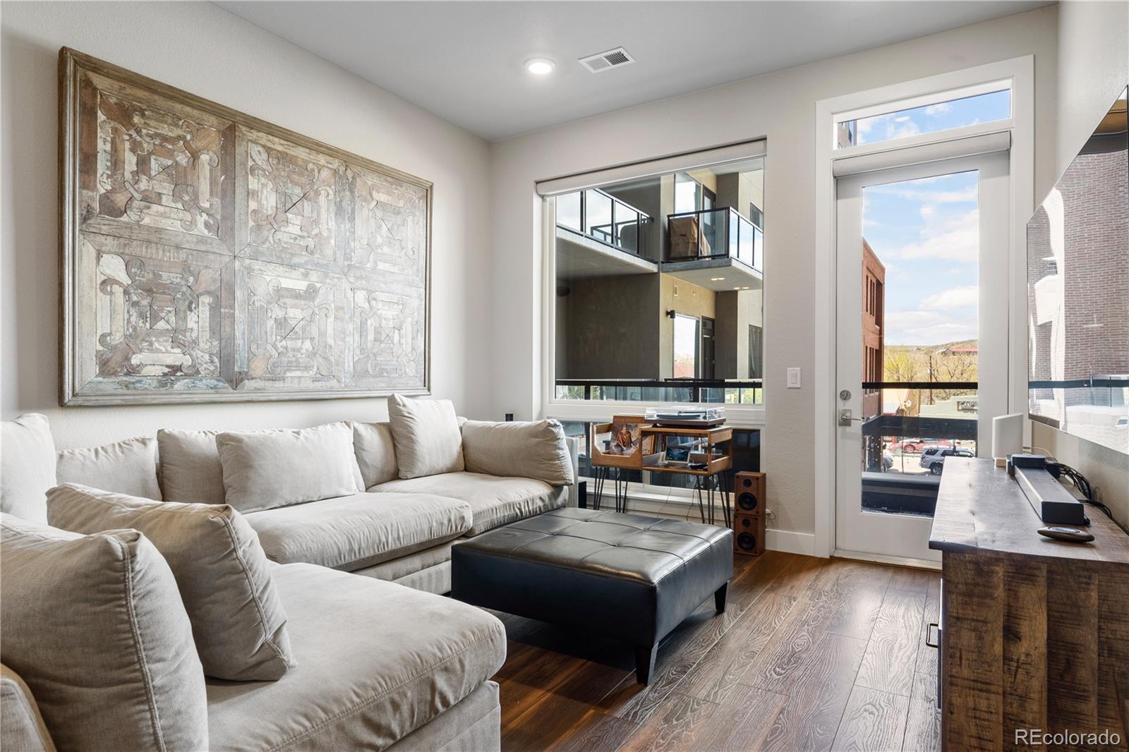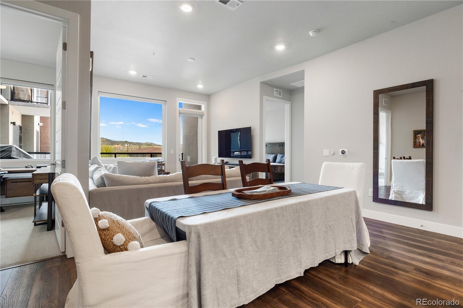 Incredible opportunity to live in the bustling and fun Encore downtown Castle Rock! Don't let this pass you up! ** SHORT SALE OPPORTUNITY ** Imagine being steps to restaurants, shops, cafes, salons, and Festival Park -- where there are weekly events such as Farmer's Markets, Art Shows, and live music. A true downtown lifestyle in the highly-desirable Encore building, right in the heart of downtown Castle Rock. The newly-built condo building features a contemporary and sophisticated design and offers amazing amenities that cater to everyone. This 2nd floor unit has an ideal, west-facing direction overlooking the courtyard with scenic, hilltop views. Stylishly designed and beautifully updated with upgrades, the condo features premium, Hunter Douglas electronic blinds, Google smart home technology, newly installed laundry room storage, and includes two deeded parking spaces. The open floorplan has coveted 10-foot ceilings and is oriented around generously-sized windows with views. The stunning kitchen showcases slab quartz countertops, stainless-steel KitchenAid appliances, and a large center island with seating, plus the adjacent dining area is large enough for entertaining. The spacious primary bedroom features an ensuite luxury bathroom, equipped with frameless glass shower, quartz countertops, and double vanity. Living at the Encore is truly a lifestyle. The amenities include a well-equipped fitness center, clubhouse with kitchen and pool table, 25-person jacuzzi, lounge with golf simulator, dog park, pet spa, outdoor lounging areas with fire pits and grills, and sleek common areas for working or relaxing. Onsite security and key fob entry keeps the building safe and secure and the units have smart, keypad locks for easy access, and two deeded parking spaces come with the unit. The location offers an easy commute to Denver, DTC, or Colorado Springs and there’s so much to do right at your fingertips. This is the best of luxury and low-maintenance living.