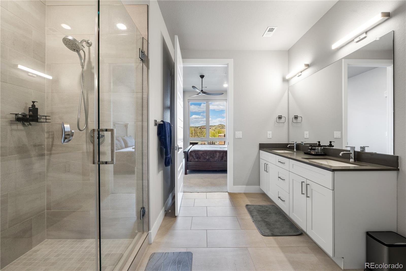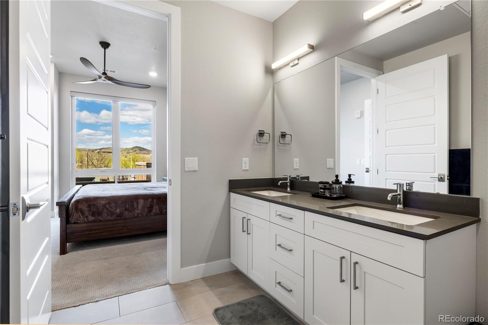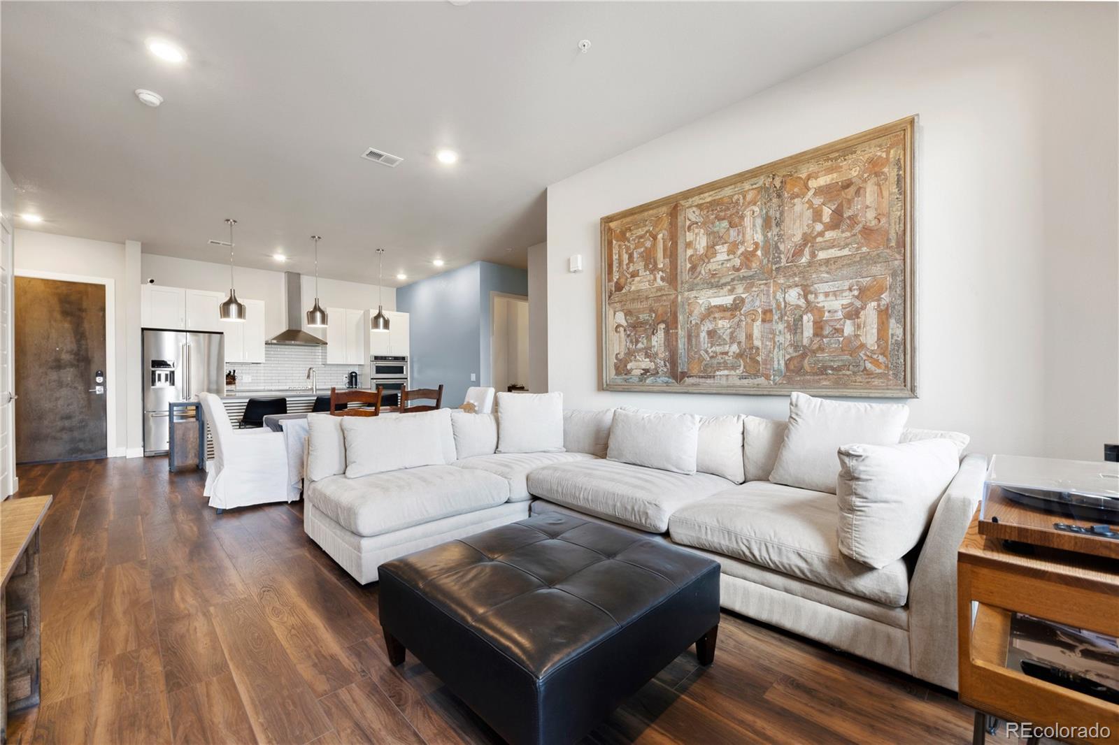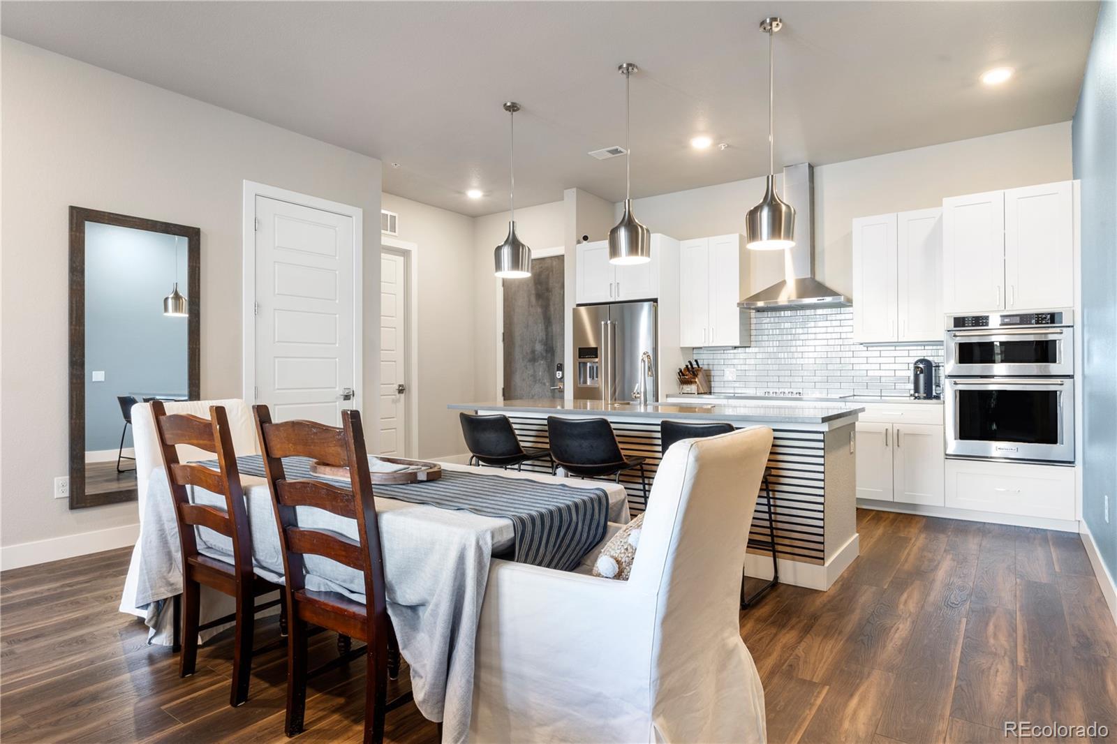 Incredible opportunity to live in the bustling and fun Encore downtown Castle Rock! Don't let this pass you up! ** SHORT SALE OPPORTUNITY ** Imagine being steps to restaurants, shops, cafes, salons, and Festival Park -- where there are weekly events such as Farmer's Markets, Art Shows, and live music. A true downtown lifestyle in the highly-desirable Encore building, right in the heart of downtown Castle Rock. The newly-built condo building features a contemporary and sophisticated design and offers amazing amenities that cater to everyone. This 2nd floor unit has an ideal, west-facing direction overlooking the courtyard with scenic, hilltop views. Stylishly designed and beautifully updated with upgrades, the condo features premium, Hunter Douglas electronic blinds, Google smart home technology, newly installed laundry room storage, and includes two deeded parking spaces. The open floorplan has coveted 10-foot ceilings and is oriented around generously-sized windows with views. The stunning kitchen showcases slab quartz countertops, stainless-steel KitchenAid appliances, and a large center island with seating, plus the adjacent dining area is large enough for entertaining. The spacious primary bedroom features an ensuite luxury bathroom, equipped with frameless glass shower, quartz countertops, and double vanity. Living at the Encore is truly a lifestyle. The amenities include a well-equipped fitness center, clubhouse with kitchen and pool table, 25-person jacuzzi, lounge with golf simulator, dog park, pet spa, outdoor lounging areas with fire pits and grills, and sleek common areas for working or relaxing. Onsite security and key fob entry keeps the building safe and secure and the units have smart, keypad locks for easy access, and two deeded parking spaces come with the unit. The location offers an easy commute to Denver, DTC, or Colorado Springs and there’s so much to do right at your fingertips. This is the best of luxury and low-maintenance living.