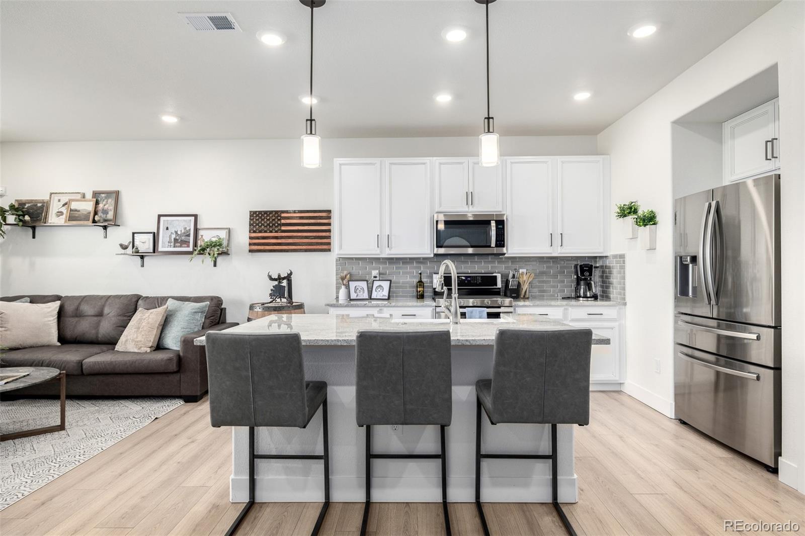 Welcome to 8863 Fraser River Loop, where modern living meets the charm of Colorado's breathtaking Sterling Ranch community. This stunning property is more than just a home—it's your gateway to a vibrant, active lifestyle. Step inside and discover a thoughtfully designed space, bathed in natural light, with an open-concept layout perfect for entertaining or cozy nights in. The chef-inspired kitchen boasts sleek finishes, ample counter space, and a layout that will make hosting a breeze. The spacious bedrooms and spa-like bathrooms round out the interior, offering comfort and tranquility at every turn. Designer finishes and tons of upgrades including 8' doors, upgraded cabinets, counters, farm sink, appliances, window treatments, lights, accent walls, interiot trim package, tankless water heater - This list goes on and on in this Tripointe townhome. But the real magic happens beyond the front door. Nestled in Sterling Ranch, this home places you at the heart of a community that truly has it all. Imagine waking up to miles of scenic trails for hiking and biking, or spending weekends exploring the local parks and open spaces. Love to socialize? Sterling Ranch offers year-round events, from food trucks to holiday festivities, designed to bring neighbors together. And with its sustainable design, high-speed fiber internet, and smart home integration, this community is as future-forward as it is family-friendly. Whether you’re relaxing on your porch, enjoying the mountain views, or taking advantage of Sterling Ranch's endless amenities, 8863 Fraser River Loop is the perfect place to call home. Don't just live—thrive. Come and see this 3 bed 3 bath 2 car garage Sterling Ranch townhome for yourself!