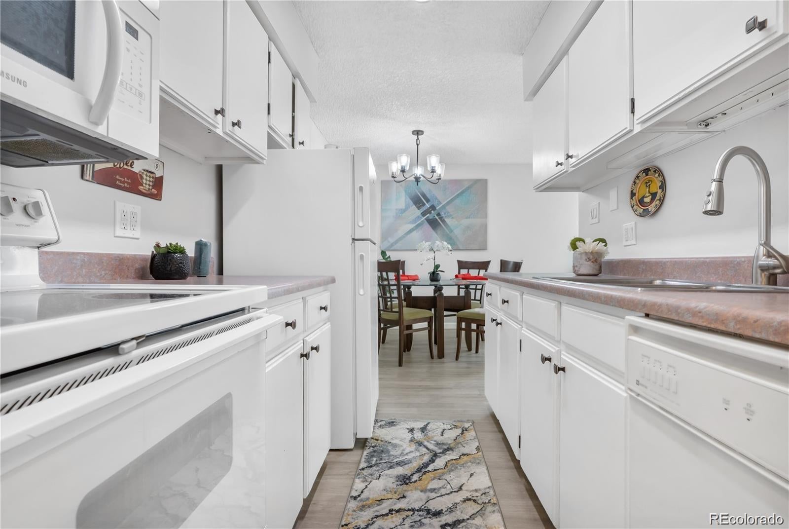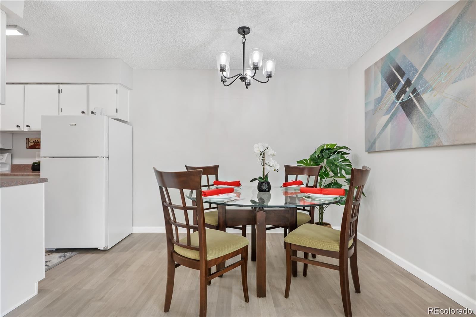 7375 E. Quincy Ave Denver Co 80237 Prime location, in the heart of DTC, 5 min to, Rosemond Park, Eastmoor Park, I-25/I-225, Tamarac Square, Park Meadows, Micro Center, LaFogata, Shanihans, Ocean Prime Restaurants, Light rail, Inverness, etc, Denver University 2 bedroom 2 bath 2ND-floor end unit completely remodeled , just under 1,000 sq. ft plus carport and storage,Super cozy, and bright. repainted reconditioned cabinets. Top shelf remodel including: New repainted kitchen cabinets with new handels , faucet, new handles, new LED Lights, new LVE planks laminate floors, new carpet, new baseboards, new chandelier, fresh 2-tone paint. New blinds, New toilets, New sinks new faucet New vanities all new led lights New door handles New mirror, new windows, new sliding balcony/ patio door, New oak front door with smart lock and door handles. Tons of amenities with this HOA, Including a clubhouse, with a pool, an office, extra storage, coin laundry, a carport, trash, water heat outside maintenance. Agent owner 3/2/1 buydown available.