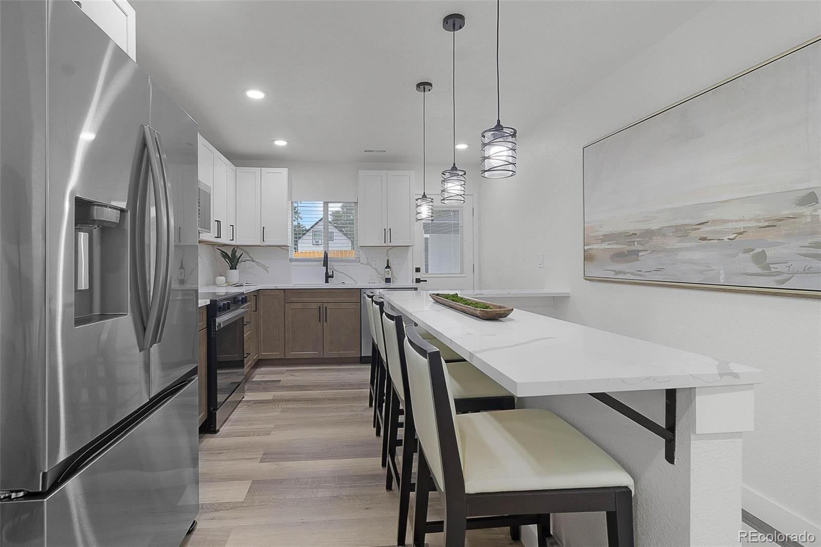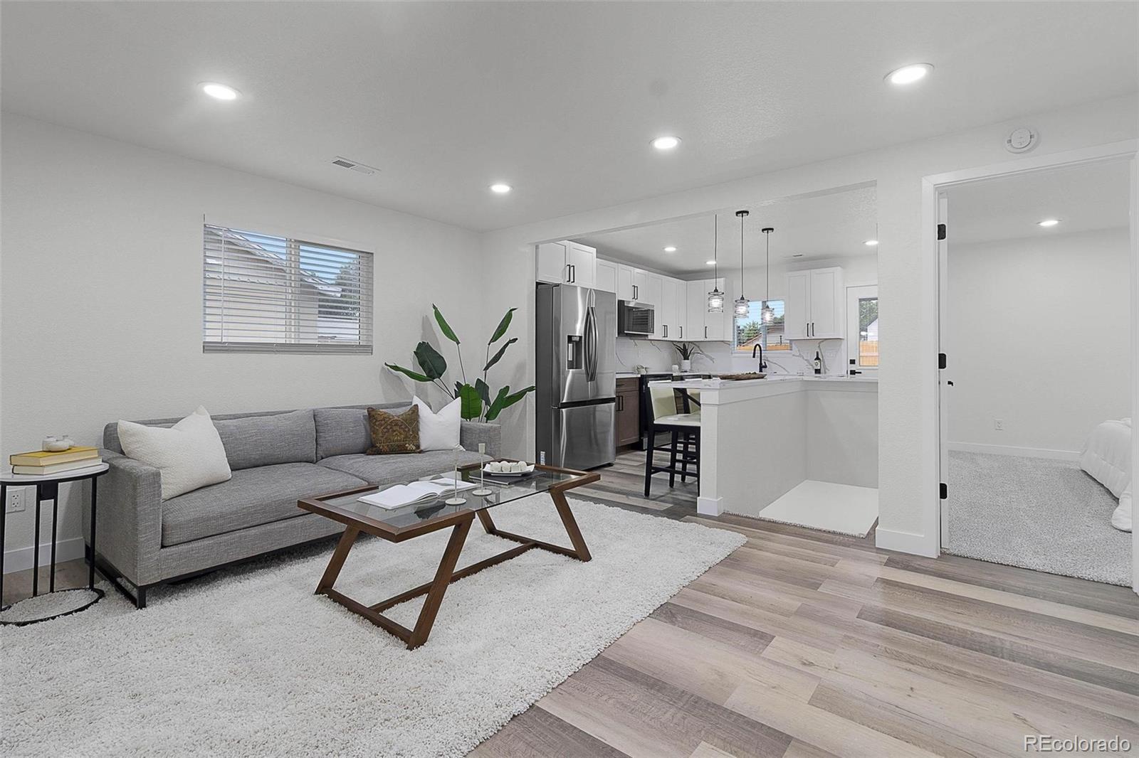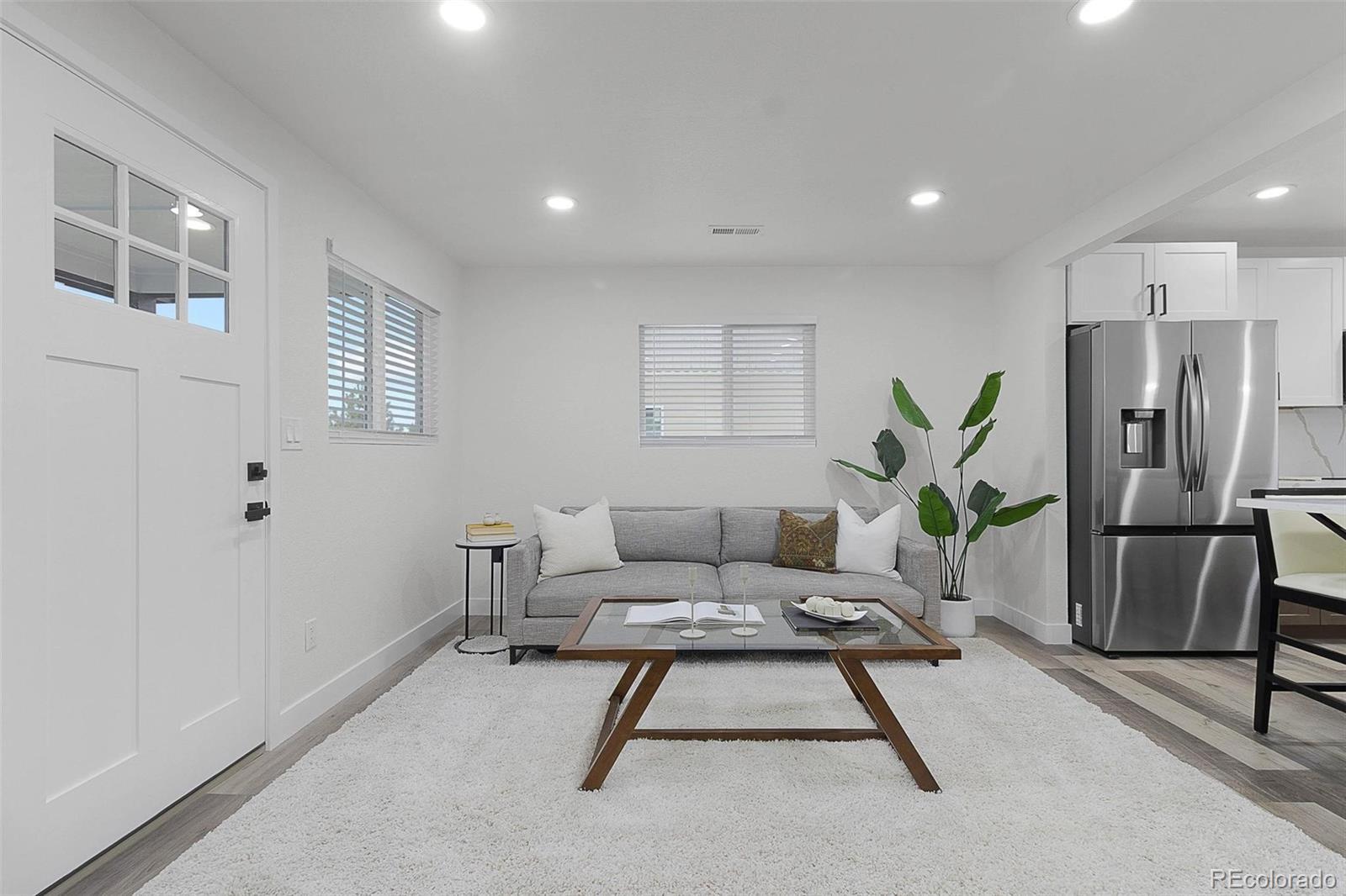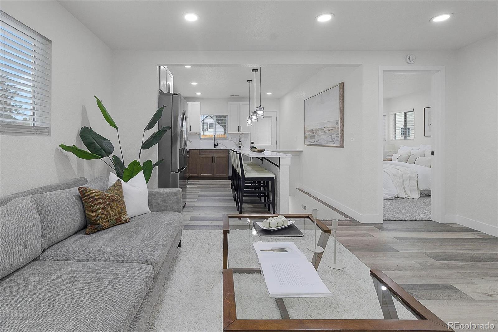 Enjoy year-round views of Downtown Denver from this fully remodeled 3-bedroom, 2-bath home. The main level offers a cozy yet open-concept layout, while the basement features a bedroom, living space, and full bathroom—perfect for guests, multigenerational living, or extra privacy. Modern upgrades include fresh interior/exterior paint, new flooring, carpet, windows, and blinds. The kitchen showcases beautiful double-tone cabinetry and smart appliances, while both bathrooms have been redesigned with sleek, modern finishes. For comfort and efficiency, the home is equipped with a brand-new HVAC system, tankless water heater, and newly poured concrete surrounding the property. Parking is abundant with a 2-car detached garage plus a slab that fits up to 3 more vehicles. Conveniently located minutes from Empower Field, the Auraria Campus, and Downtown Denver’s restaurants, shops, and entertainment—this move-in-ready home blends comfort, style, and unbeatable city skyline views.