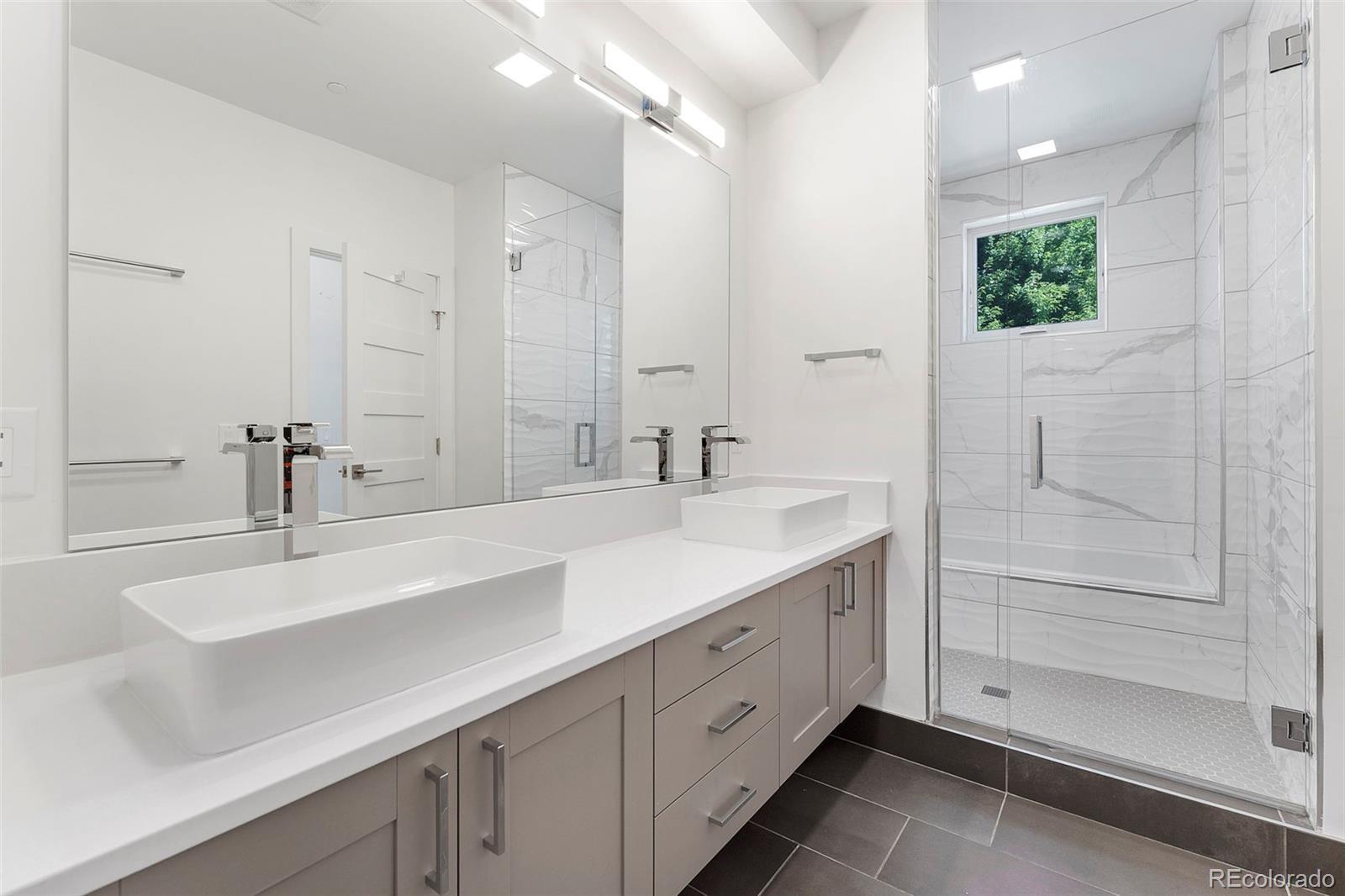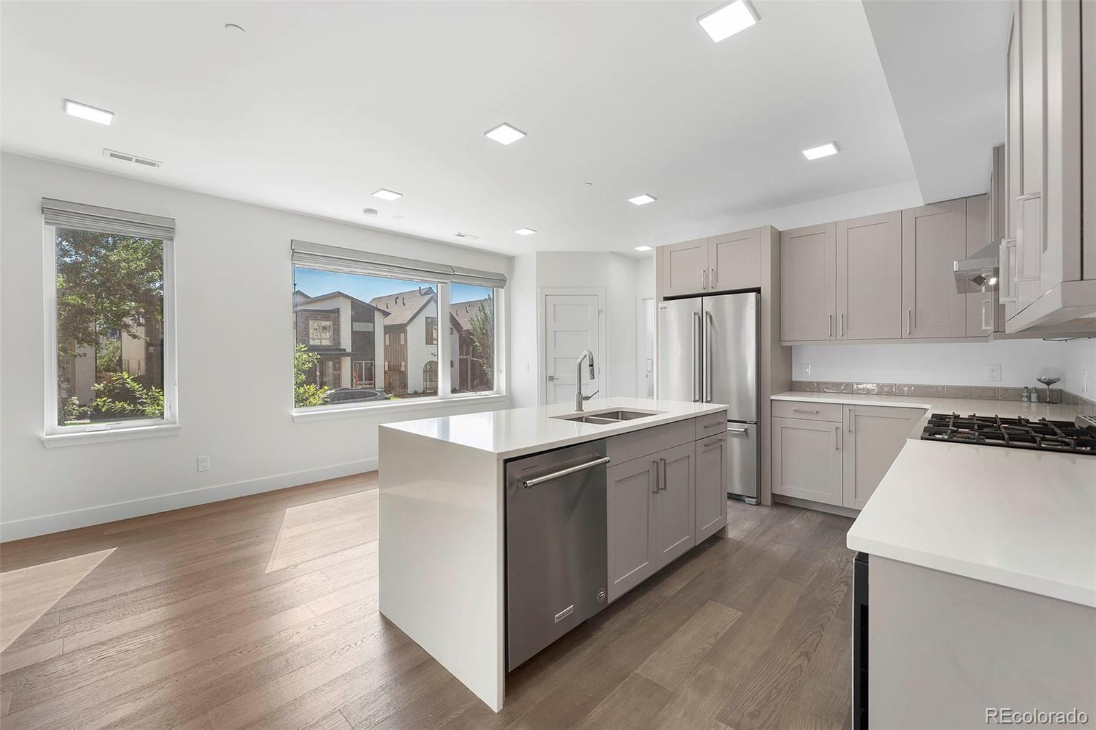 Welcome home, where classic charm meets modern elegance in this beautifully reimagined two-story LoHi Brownstone. Nearly two years were dedicated to refining every detail of the layout and design to create these truly one-of-a-kind residences. Just steps less than a block from some of Denver's best coffee shops, restaurants, and green spaces, and nestled on a picturesque street lined with stunning new homes, the location is as unbeatable as the home itself. Inside, you'll find 3 spacious bedrooms, four well-appointed bathrooms, and a flexible garden-level space that adapts to your lifestyle. The attached 2-car garage offers both convenience and security, while the expansive rooftop deck provides breathtaking views of the Denver skyline your own private retreat above the city. With a built-in gas line, it's perfect for a grill or a cozy fire pit. The chef's kitchen is designed to impress, featuring custom shaker-style cabinetry, quartz countertops, high-end stainless steel appliances, including a 36" range, and a generously sized pantry. The open-concept main floor is ideal for entertaining, and the living area is pre-wired for surround sound, elevating your movie nights or dinner parties. Upstairs, the second level features two large bedrooms, including a luxurious primary suite with a spa-inspired 5-piece bathroom and a massive walk-in closet. Additional thoughtful upgrades include smooth-coat walls, solid-core 5-panel doors, custom Marvin windows, hand-crafted iron railings, and a full fire suppression system for added peace of mind. This is your opportunity to own a distinctive home in one of Denver's most vibrant neighborhoods. Don't miss it.