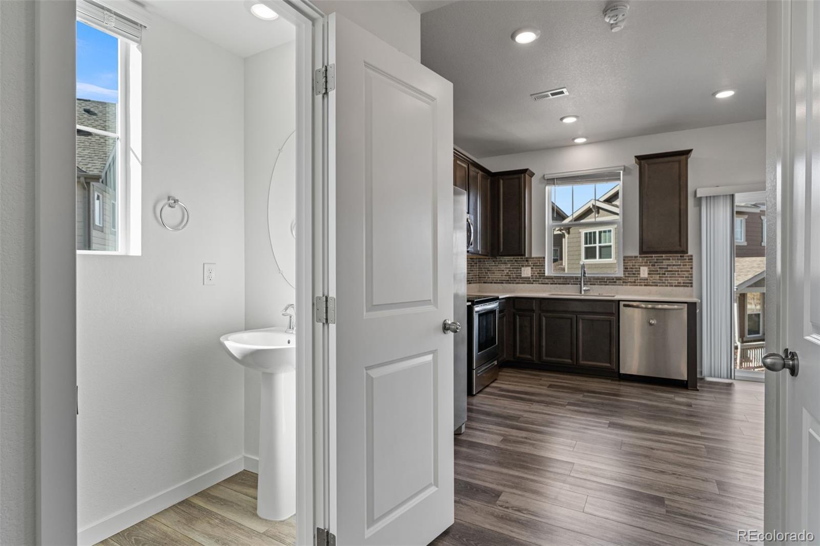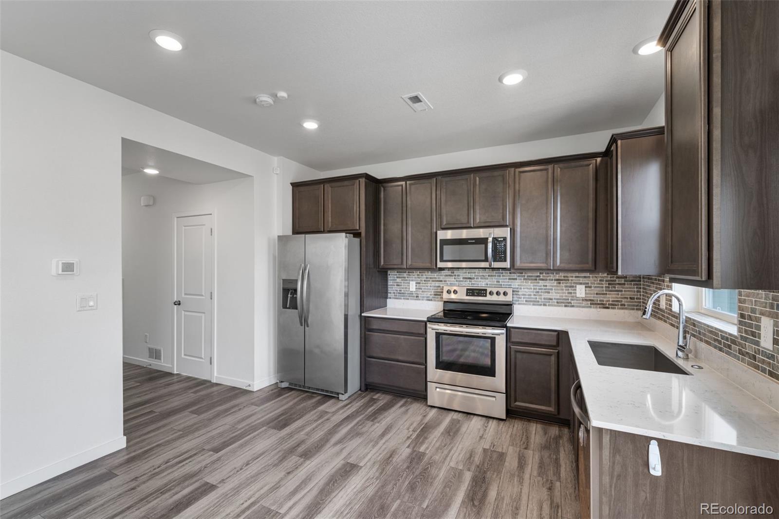 This well-maintained, two-year-old single-family home offers 3 bedrooms, 2.5 baths, a loft, an open kitchen and great room, and a 2-car garage with a shared driveway that is shoveled by the HOA. From the second story, you’ll enjoy beautiful mountain views that provide a scenic backdrop to everyday living and set this home apart. Situated on one of the largest lots in the neighborhood, the property stands out immediately. The yard is thoughtfully xeriscaped and fully irrigated for truly low-maintenance living. The lot allows for fencing if desired, making it ideal for pets or outdoor enjoyment. In addition to driveway snow removal, the HOA also maintains the walkway and front porch, adding everyday convenience. The main level features a bright, functional open floor plan with durable vinyl plank flooring, stainless steel appliances, soft-close cabinetry, a glass tile backsplash, and quartz countertops. The kitchen opens seamlessly to the great room, creating an inviting space for both daily living and entertaining. A conveniently located powder bath completes the main level. Upstairs, the primary suite serves as a comfortable retreat with an ensuite bath and walk-in closet. The loft offers flexible space well suited for a home office, study area, or secondary living space. Upper-level laundry (washer & dryer included) enhances practicality, and additional storage is available in the crawlspace. Priced to compete with many townhomes—while offering the privacy of a single-family home with no shared walls—this property delivers exceptional value. It’s better than new construction, with landscaping already complete and Ring smart home features in place. Built by Lennar, the home showcases thoughtfully selected finishes, energy-efficient construction, and integrated modern technology throughout.Conveniently located near dining, shopping, and everyday amenities, with a beautiful new recreation center currently under construction just a few blocks away.