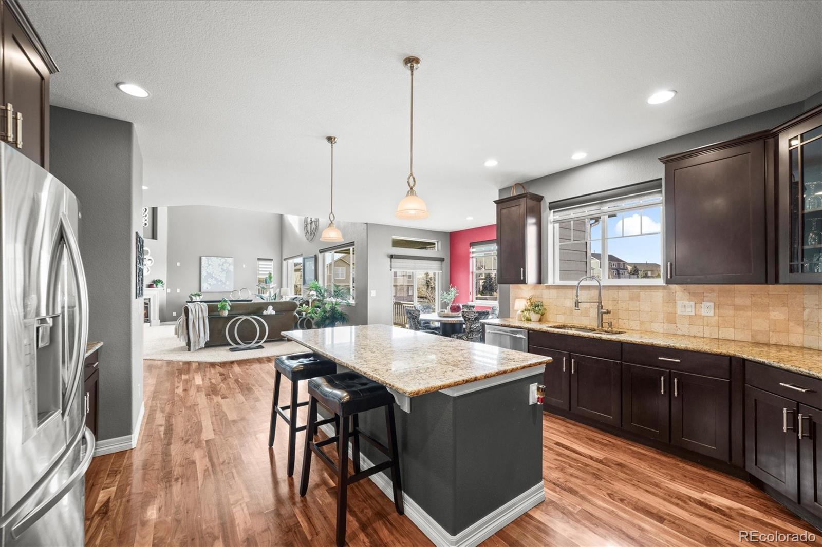 VIDEOS: https://media.cineflyfilms.com/view/?s=2492450&nohit=1 https://drive.google.com/file/d/1x86J86nDmNX5XQnYpAFqtNJIHG8fuAU5/view Experience Luxury Living on the Golf Course in Blackstone Country Club. Quietly nestled in the heart of the prestigious Blackstone Country Club community, this highly upgraded 6,028 sq. ft. home blends elegance, comfort, and breathtaking views. Featuring 5 spacious en-suite bedrooms, this home includes a stunning primary retreat with a bay window, sitting area, two walk-in closets, and a spa-inspired 5-piece bath. The chef’s kitchen is a true showstopper, offering granite countertops, high-end appliances, double ovens, an oversized refrigerator, a large island, butler’s pantry, walk-in pantry, and a sunlit breakfast nook overlooking the golf course. The flowing layout continues into a grand two story family room with 18-foot ceilings and a striking Tuscan stone fireplace—perfectly connected to the gourmet kitchen for effortless entertaining. A massive walkout basement with tall ceilings, big windows, and plumbing rough-ins gives you endless possibilities for future expansion. Step outside to enjoy Colorado sunsets from the covered bi-level deck, or gather with friends around the custom patio and gas fire pit with serene golf course views. Additional standout features include: • 2nd-floor laundry • Custom Matching Blinds throughout • Custom lighting & designer finishes • Granite and Corian countertops • Jack-and-Jill bath • Vaulted ceilings • Oversized 3-car garage • Upper and Lower (2) HVAC systems • 2 Large Hot Water Heaters • Upgraded flooring • and more.. Living in Blackstone means resort-style amenities right at your doorstep: a private pool, fitness center, tennis courts, clubhouse, dining, top-rated schools, and beautifully maintained trails. Discover the perfect blend of luxury, space, and lifestyle—your dream home in Blackstone awaits!