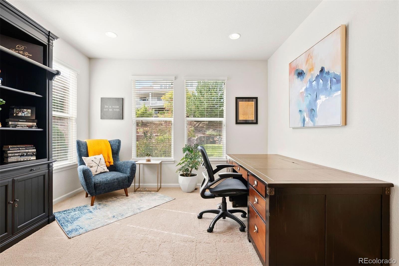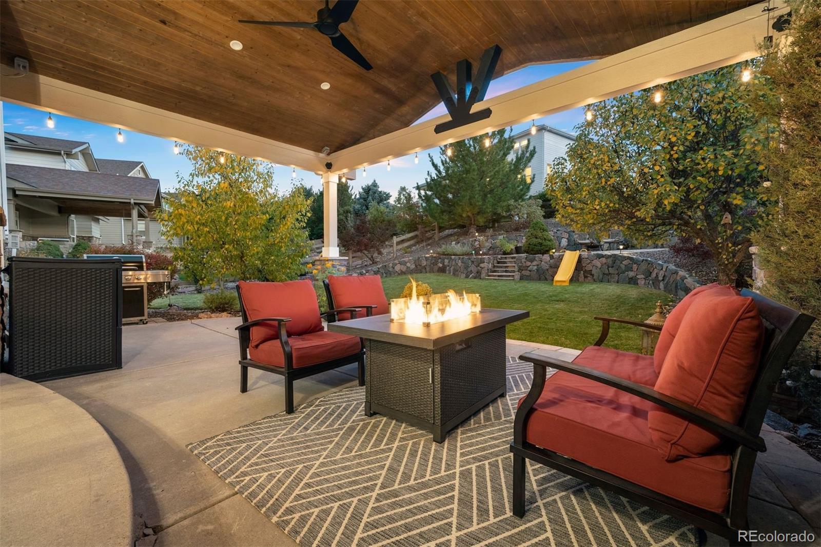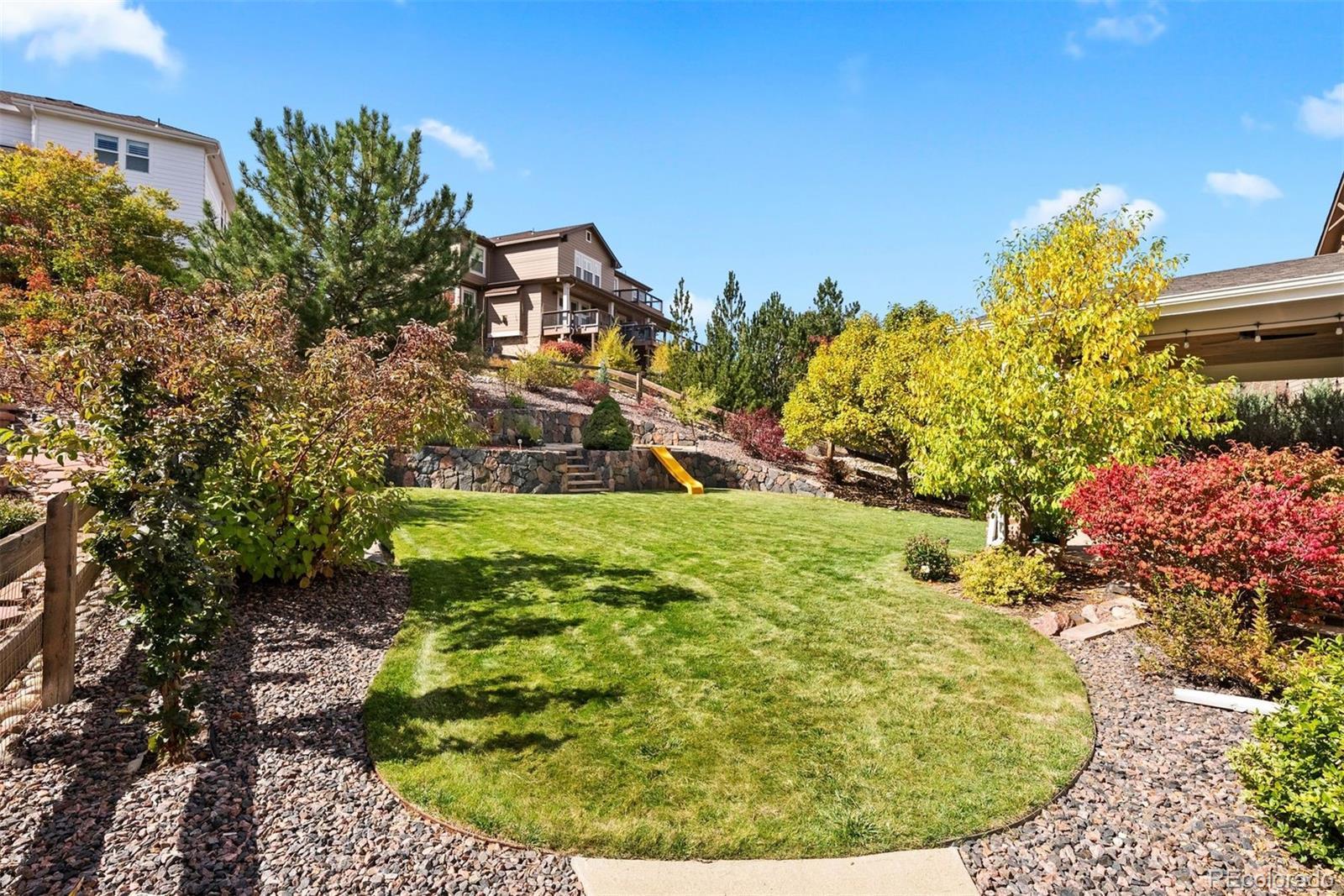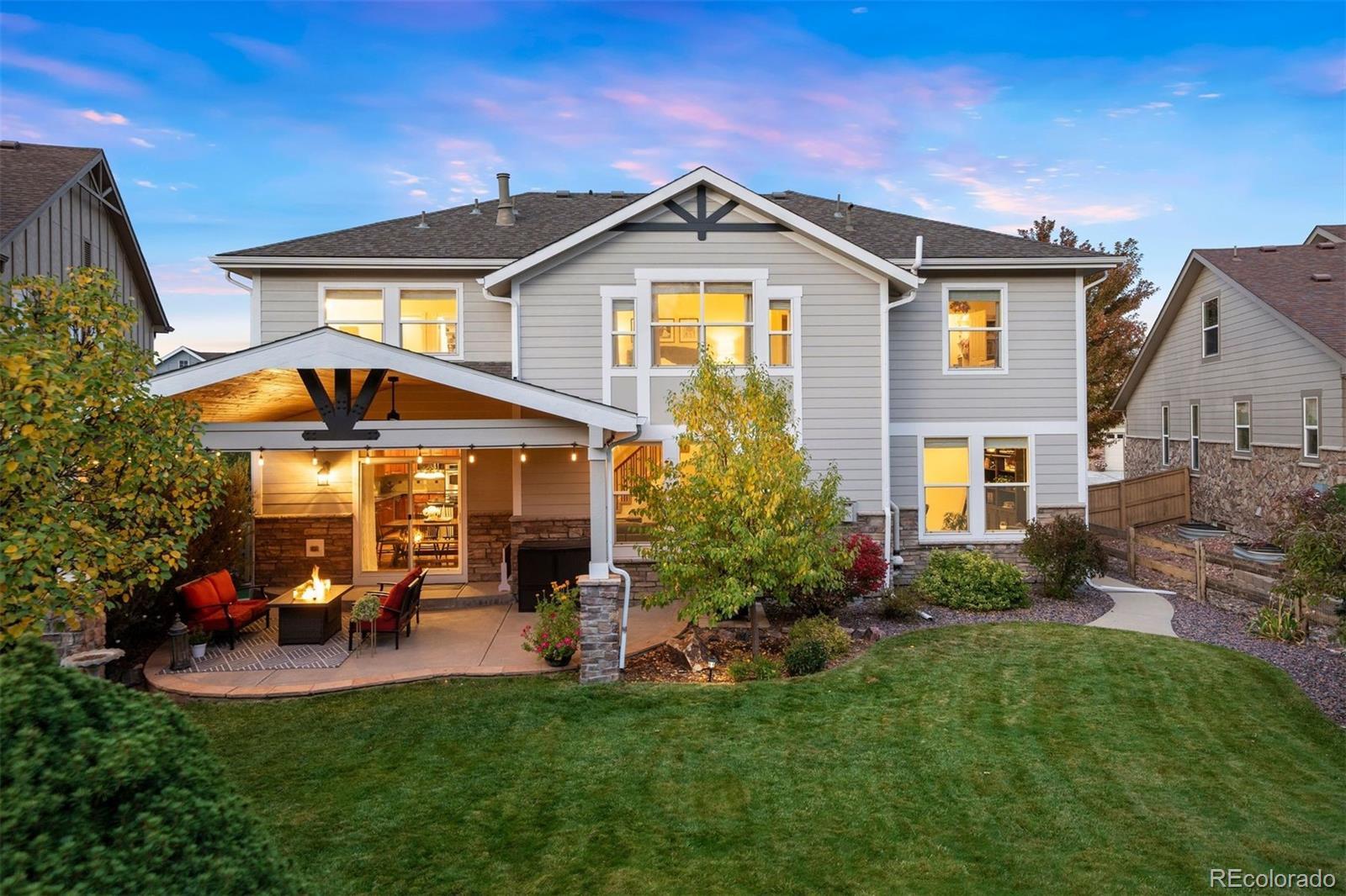 Beautifully positioned in Firelight, this 5-bed, 5-bath home offers an ideal floor plan with space for every lifestyle. The main level features a private office overlooking the lush backyard—perfect for working while enjoying the seasons—along with a spacious kitchen and dining area designed for gatherings. Upstairs, four bedrooms and three baths include a luxurious primary suite with a large walk-in closet with built-ins, a Jack-and-Jill bath connecting two bedrooms, and a fourth bedroom with an en suite. The finished basement expands the living options with a bedroom, bath, bar, and two versatile flex spaces ideal for play, fitness, or movie nights. The outdoor setting is a true highlight: a newer covered patio opens to a generous, professionally landscaped yard with mature trees providing shade, privacy, and year-round color. Oversized garages with three separate bays add practicality. With a new HVAC system, newer paint inside and out, and generously sized rooms throughout, this home is move-in ready. Living in Highlands Ranch means access to everything: miles of paved and unpaved trails, four rec centers, pickleball and tennis courts, indoor and outdoor pools, dog parks, playgrounds, and more—all within reach of top-rated schools, parks, and open space.