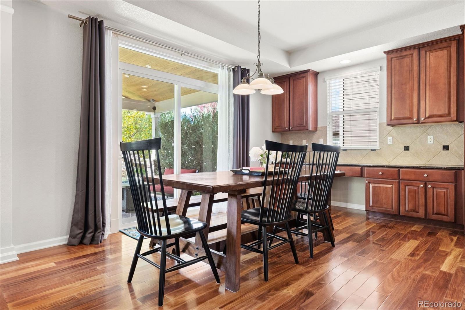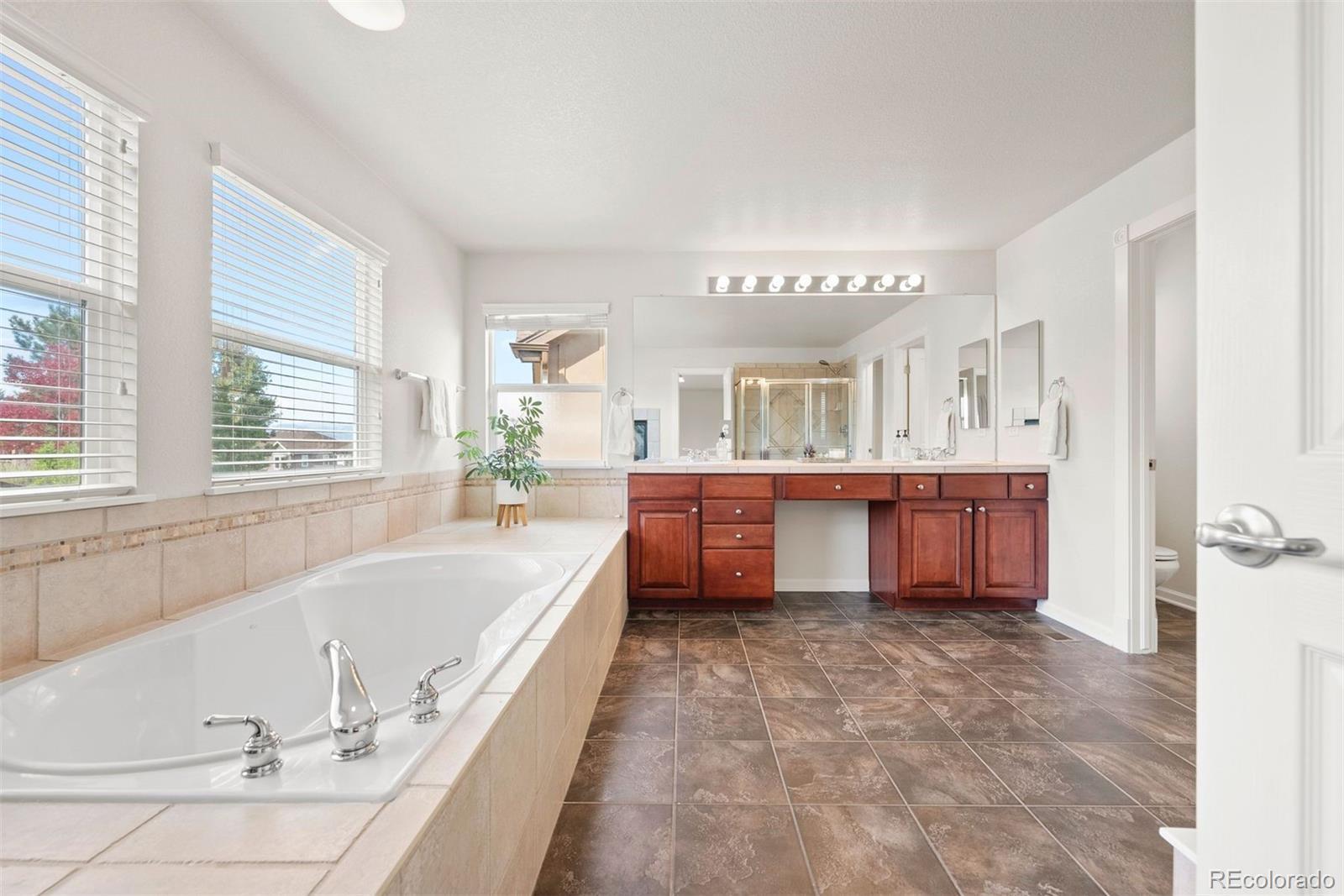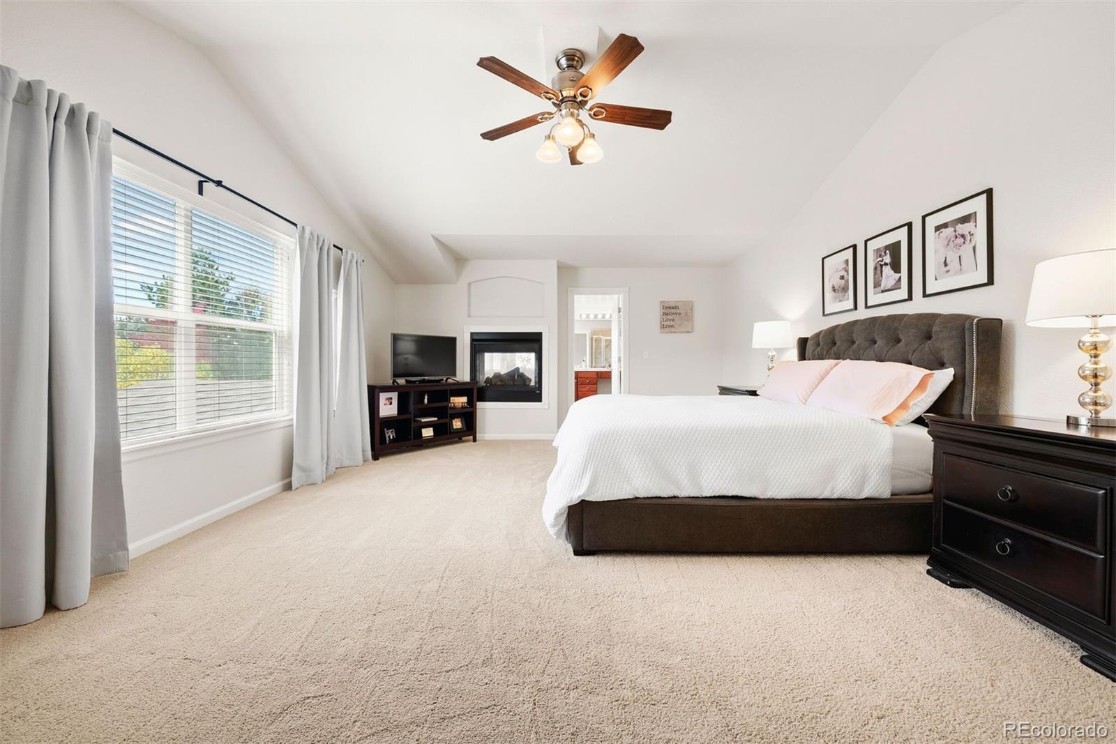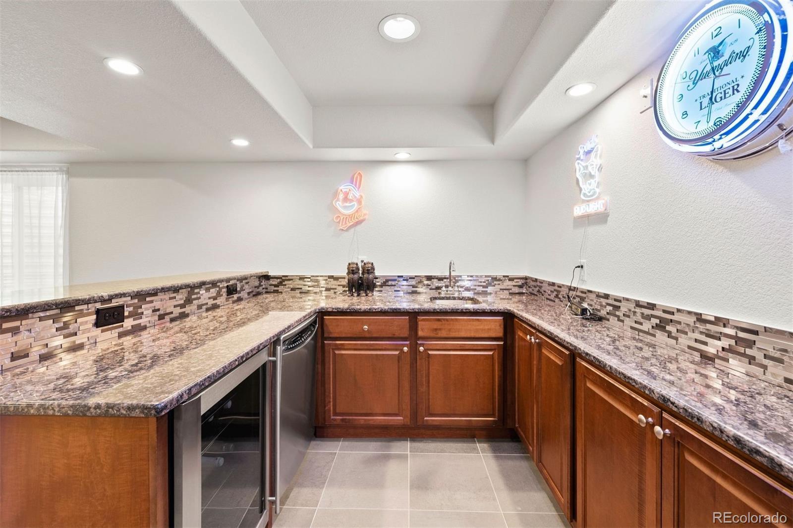Beautifully positioned in Firelight, this 5-bed, 5-bath home offers an ideal floor plan with space for every lifestyle. The main level features a private office overlooking the lush backyard—perfect for working while enjoying the seasons—along with a spacious kitchen and dining area designed for gatherings. Upstairs, four bedrooms and three baths include a luxurious primary suite with a large walk-in closet with built-ins, a Jack-and-Jill bath connecting two bedrooms, and a fourth bedroom with an en suite. The finished basement expands the living options with a bedroom, bath, bar, and two versatile flex spaces ideal for play, fitness, or movie nights. The outdoor setting is a true highlight: a newer covered patio opens to a generous, professionally landscaped yard with mature trees providing shade, privacy, and year-round color. Oversized garages with three separate bays add practicality. With a new HVAC system, newer paint inside and out, and generously sized rooms throughout, this home is move-in ready. Living in Highlands Ranch means access to everything: miles of paved and unpaved trails, four rec centers, pickleball and tennis courts, indoor and outdoor pools, dog parks, playgrounds, and more—all within reach of top-rated schools, parks, and open space.