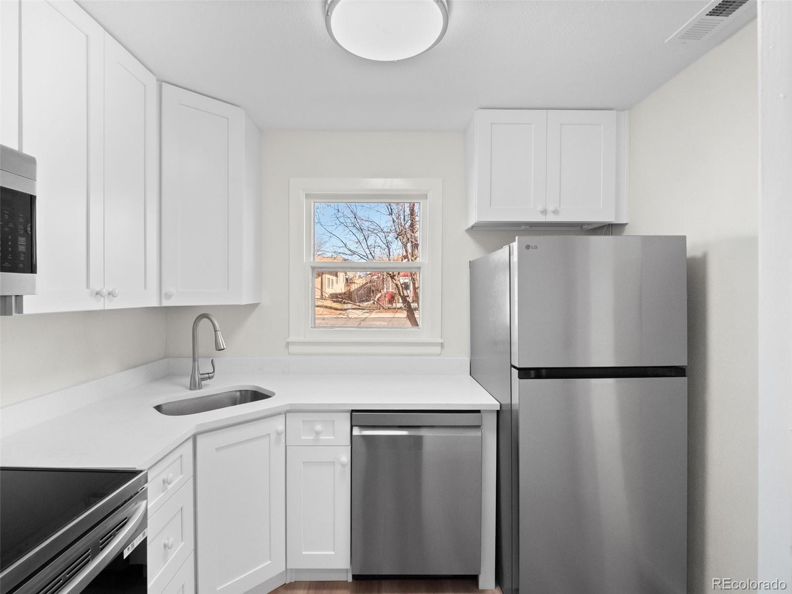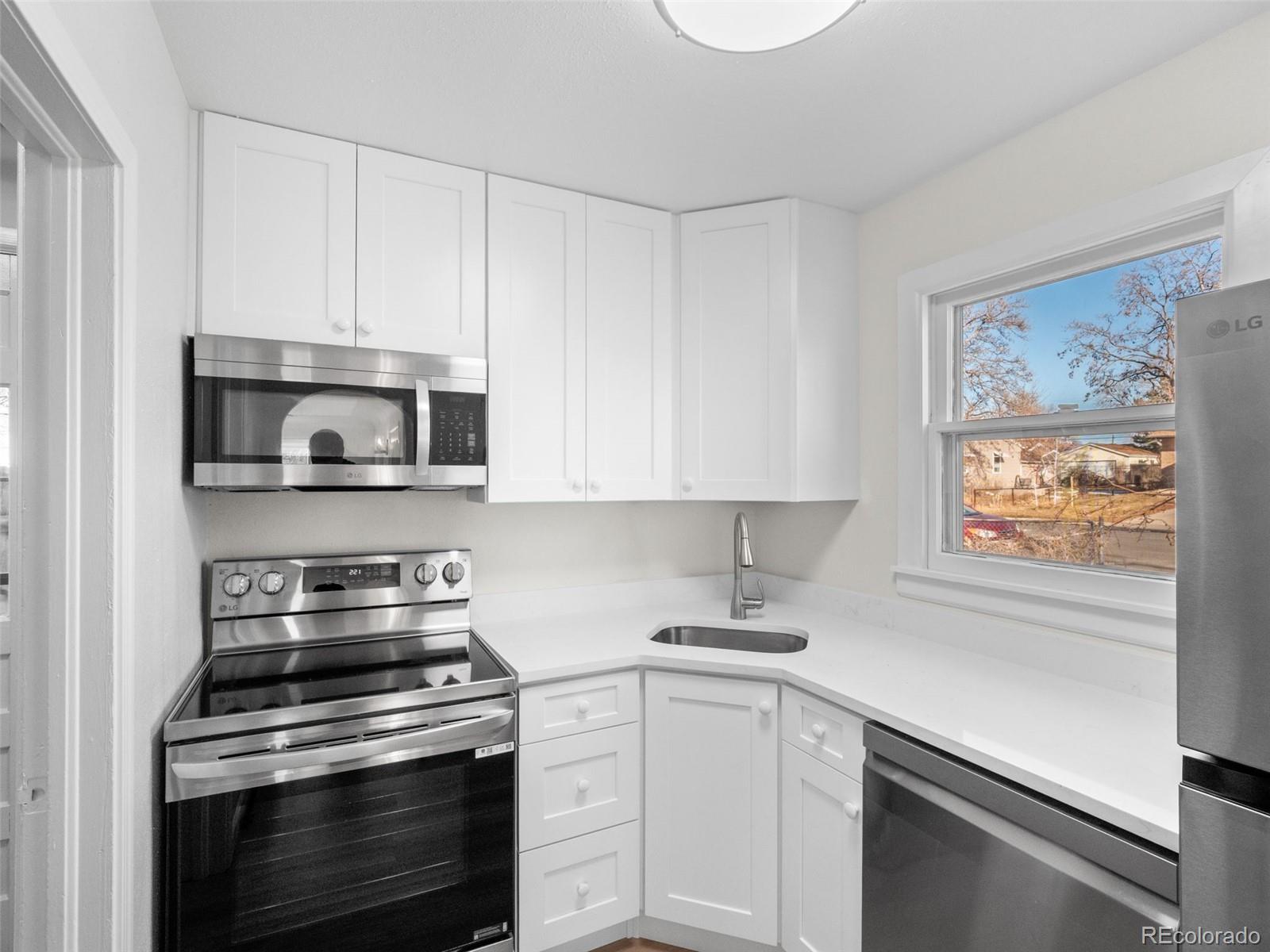 Welcome to this charming home in the heart of Englewood! This beautifully remodeled 2-bedroom, 1-bath ranch blends classic character with modern style and thoughtful updates throughout. Step inside to find fresh paint and new flooring that create a warm, inviting atmosphere from the moment you enter. Situated on a spacious 6,011 sq. ft. corner lot, the home offers plenty of room to relax, entertain, or customize your outdoor space to fit your vision. The kitchen truly shines, featuring crisp white shaker cabinets, sleek quartz countertops, and brand-new stainless steel appliances—perfect for both everyday living and hosting guests. The updated bathroom has been tastefully refreshed to appeal to today’s buyers, while the two-car garage and additional off-street parking provide ample space for vehicles, storage, and all your Colorado toys. Located in Englewood’s desirable Broadway Heights neighborhood on a well-maintained block, this home offers comfort, convenience, and endless potential. Don’t miss your chance to make this inviting property your own!