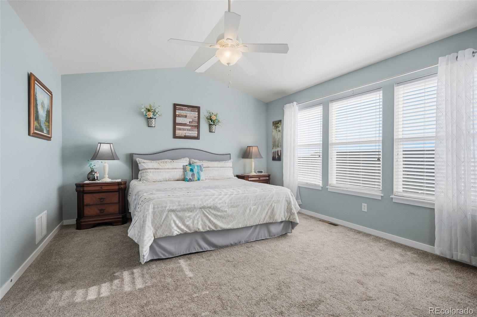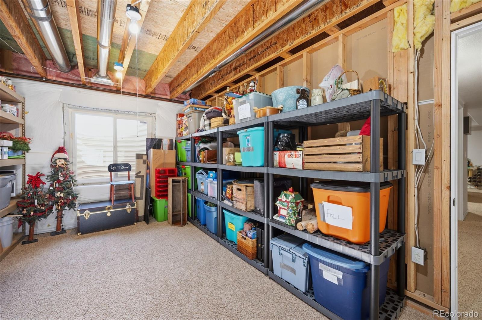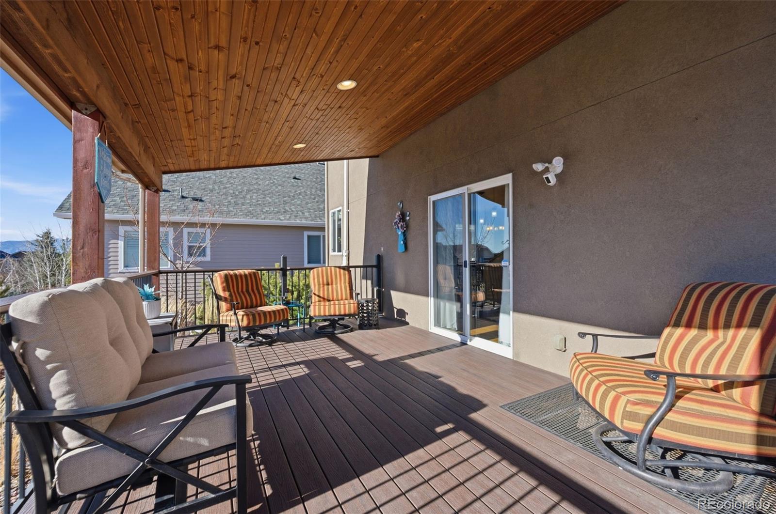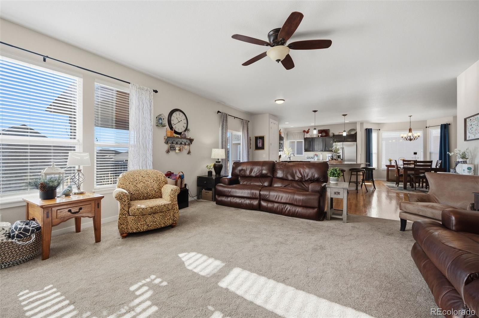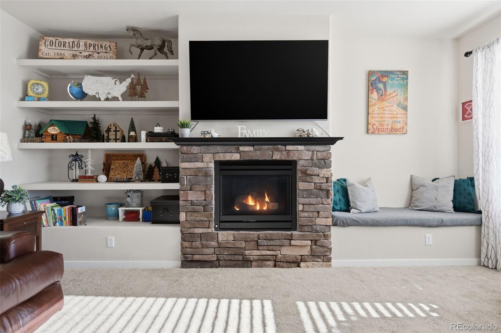 Stunning Five-Bedroom Wolf Ranch Home with Three-Car Garage, Finished Basement This exceptional five-bedroom home in sought-after Wolf Ranch offers space, style, and functionality, highlighted by a three-car garage, finished basement, and beautiful outdoor living. A vaulted entryway welcomes you with hardwood flooring flowing through the entry, dining area, and kitchen, complemented by newer carpet on the main and upper levels. The spacious great room features a gas fireplace with stone surround, built-in shelving, and abundant natural light. The open-concept kitchen showcases upgraded granite countertops, a large island with seating, pendant lighting, and seamless connection to the dining area ideal for everyday living and entertaining. Upstairs, the primary suite impresses with vaulted ceilings and a spa-like bath with soaking tub, freestanding shower, and dual vanities. Three additional bedrooms complete the level, two with walk-in closets and a third perfect for a craft room or home office. A full bath, oversized laundry room, and a large connecting loft add versatility. The finished basement offers a generous rec room with an included pool table, a fifth bedroom, full bath, and a storage room that could easily convert to a sixth bedroom. A separate thermostat provides comfortable temperature control. Enjoy a huge backyard with a 12x18 covered deck, additional concrete patio, natural gas line for the included grill, Pikes Peak views, fruit trees, and a large grassy area. Additional features include a 7x10 wooden shed, year-round decorative eave lighting, central air conditioning, a built in basketball hoop, and a dream three-car garage set up as a workshop with built-in storage, workbench, and natural gas heater. Wolf Ranch has multiple trails, parks, a lake, and an optional pool community center membership.