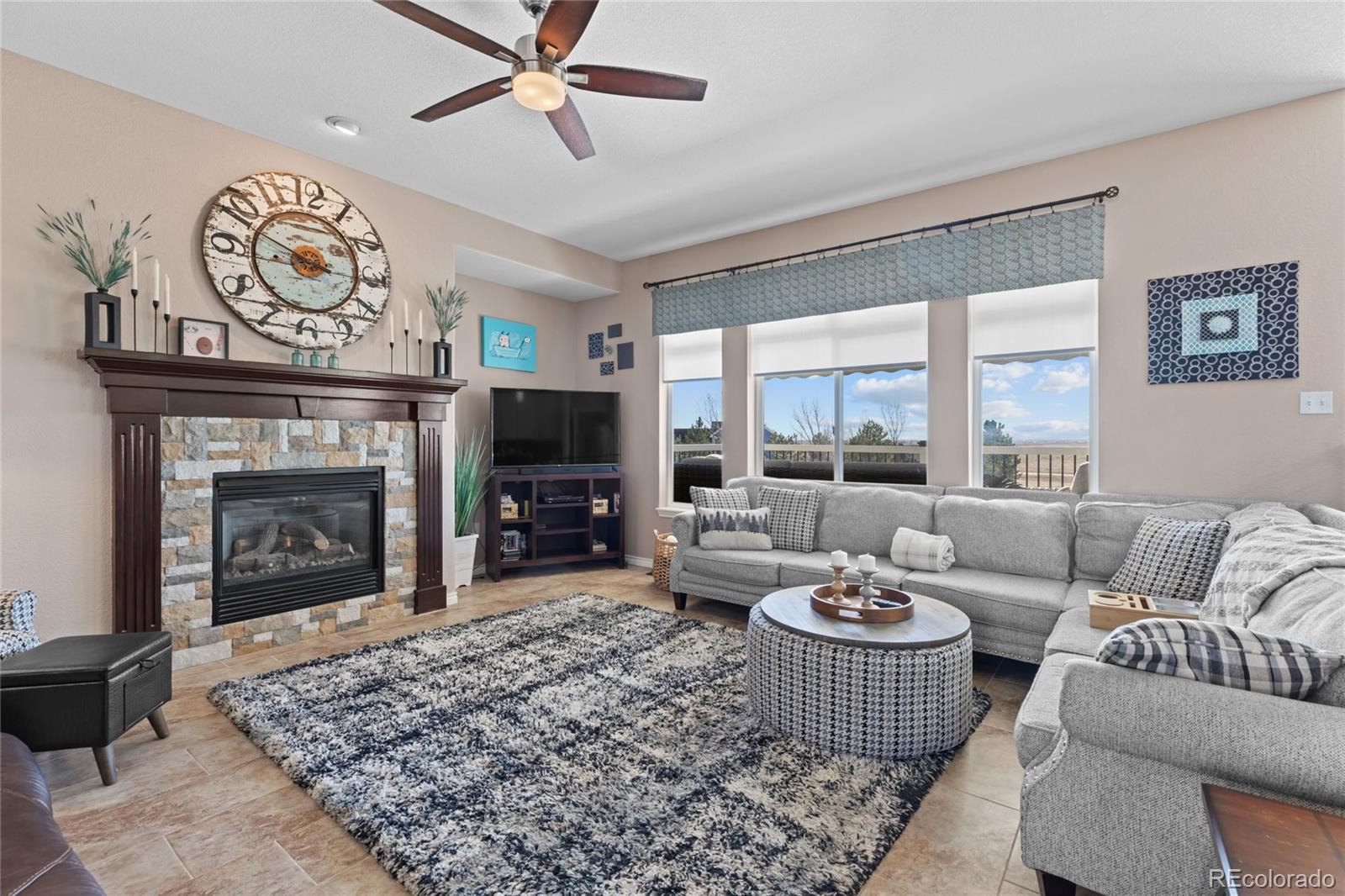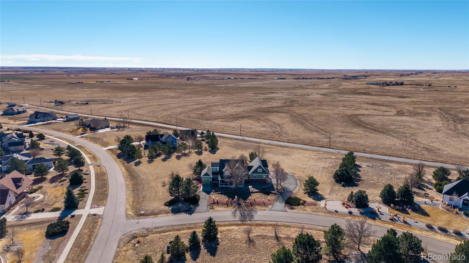 Updated 6-bedroom, 5-bath walkout two-story on a professionally landscaped 1.78-acre corner lot in Antelope Hills. 4,728 finished square feet with oversized attached garages for 4 cars and more (RARE). New luxury vinyl plank flooring flows throughout the home. The main level opens with a foyer to the living room anchored by a gas fireplace with stone surround and wood mantel, flanked by large windows with wide open views of the plains. The kitchen features tile granite countertops, white cabinetry, a center island, and an adjoining breakfast nook. A formal dining area, main level bedroom/den/office, dedicated laundry room with utility sink, bedroom/office, and bath complete the main level. The primary suite includes a 5-piece bath with soaking tub, glass-enclosed shower, and walk-in closet. Two bedrooms above the garage share a full bath with separate access. The finished walkout basement is built for living and entertaining, with a massive recreation room, bar area with seating, a separate office/bedroom, and a full bath. Walk out directly to the patio from the basement level. A Sunsetter retractable awning extends the outdoor living on the back deck. Sellers have invested in the systems that matter. The entire roof was replaced in 2023 with Class IV impact-resistant IKO Nordic shingles carrying a transferable limited lifetime warranty and a newer furnace. Gutters, downspouts, and four south-facing Low-E windows were replaced at the same time. New furnace installed in 2023. New 50-gallon gas water heater installed in 2025. New custom metal handrails throughout. The oversized 3-car garage plus separate attached 1-car garage gives you four covered parking spaces with room for storage and projects. City water. Septic system. HOA is just $57 per month covering trash and grounds maintenance. Located minutes from I-70, DIA, and Bennett schools, with King Soopers less than 5 miles away.