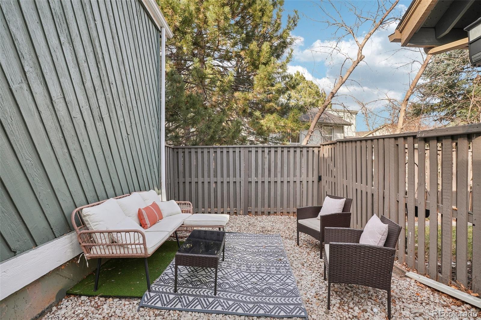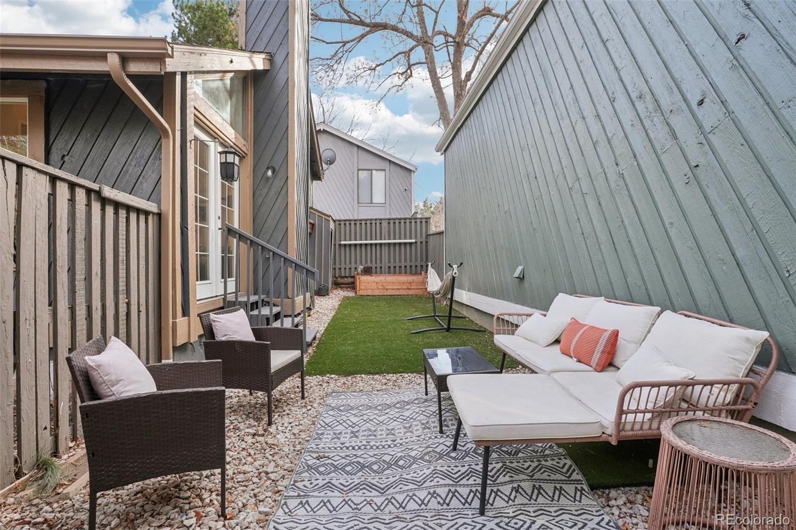 This lovely, updated, and well-maintained 4 bed, 4 bath single-family detached home offers excellent value, location, and amenities all for an attractive price. The interior welcomes you as you enter the foyer, featuring cathedral ceilings, eat-in kitchen with breakfast area, and a spacious living room centered around a fireplace. The upper and lower levels each have 2 full-sized bedrooms, with Jack-and-Jill full baths in between. The fully finished basement, also with its own full bath, is currently used as a gym and can be easily converted into a fifth bedroom if needed. This home's private, fully fenced yard is perfect for evening relaxation, grilling, and outdoor dining. Convenience is made simple with one deeded parking space and plenty of extra parking for guests. HOA covers trash, snow removal, and yard and common area maintenance. With newer mechanicals and roof and updated interior, this home offers an excellent opportunity to buy in Cherry Creek School District and only minutes from Denver Tech Center.