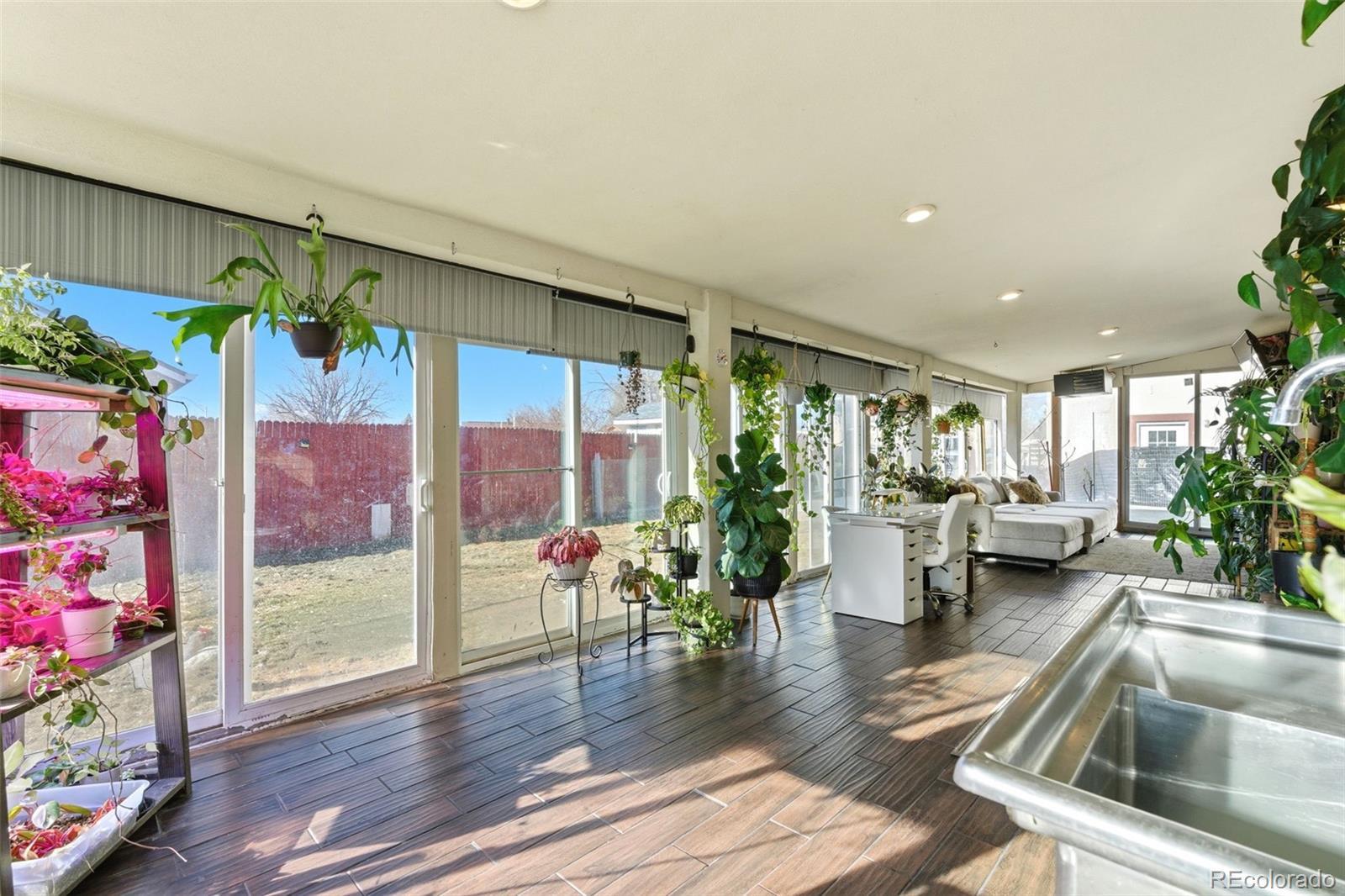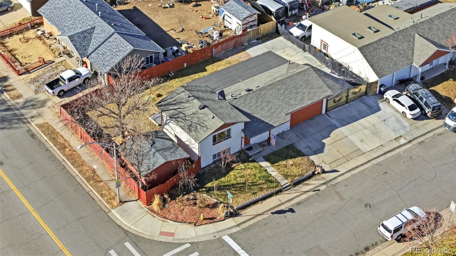 !!ASSUMABLE 2.544% INTEREST RATE!! This inviting single-family home offers modern updates and practical features in a great location. Inside, an airy open-concept layout flows seamlessly from living room to dining and kitchen—perfect for family life and entertaining. The new roof ensures long-term protection and curb appeal, and a brand new AC unit. The fully fenced backyard provides privacy and space, highlighted by a dedicated greenhouse for year-round gardening—great for veggies, herbs, or extending Colorado's growing season. The property allows chickens and small farm animals, so fresh eggs and a mini homestead setup are easy options. A large driveway fits RVs, boats, or extra vehicles comfortably, enhanced by the generous large, corner lot for more light and yard space. Just steps from the elementary school and with easy access to main roads for quick commutes around Denver and the metro area. It's a well-maintained, home with room for hobbies, family convenience, and a touch of urban homesteading. Also equipped with a large shed for storage!