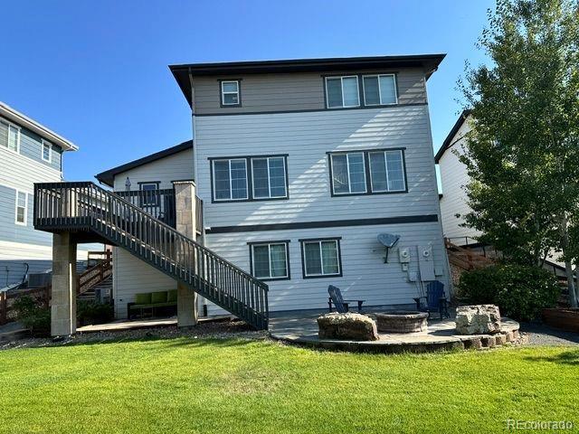Experience the feeling of “home” when you step inside this Candelas gem! Perfectly positioned within the neighborhood, this home sits just steps from the community's expansive Sarah George Park, complete with trails, playground, and baseball field. The main level welcomes you with an inviting, open-concept layout where rich flooring flows seamlessly from the dedicated home office to from the spacious living area. The gourmet kitchen features a granite island with breakfast bar, premium stainless appliances, and double ovens. Perfectly positioned between the garage and walk-in pantry, the ultimate "owner's entry" awaits, featuring a stylish drop zone and custom cabinetry that doubles as a built-in coffee bar for your morning routine. Upstairs, the primary suite serves as a true private retreat with windows that frame panoramic mountain views. Two additional bedrooms, a guest bathroom, and laundry room complete the second floor. The outdoor living is equally impressive, featuring a deck for year-round enjoyment and a sprawling backyard with a large patio with built in fire pit- with beautifully landscaped surroundings. Complete with an unfinished basement ready for your design, this home offers an elevated lifestyle just steps from Candelas’ world-class pools, fitness centers, and miles of scenic trails.