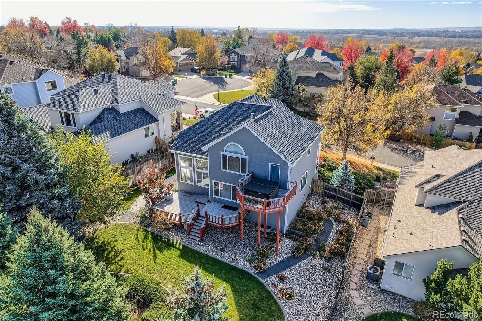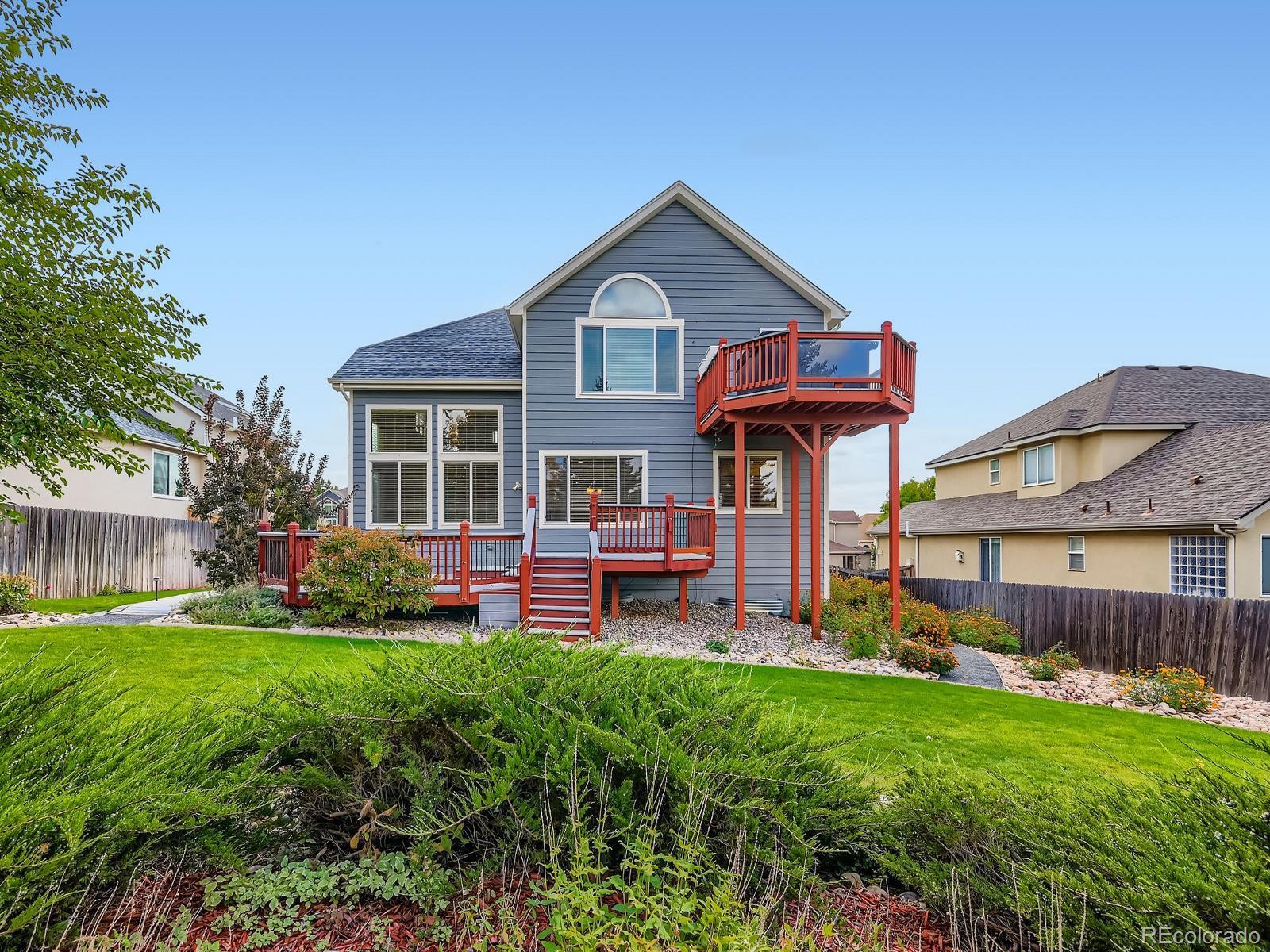 Experience serenity and convenience in this beautifully appointed home just a half-block from Cherry Creek State Park. Wake up each morning with nature at your doorstep—step outside and in moments you’re walking or biking through one of Colorado’s most pristine, scenic parks. No traffic, no noise—just quiet, peaceful living surrounded by beauty. This charming residence perfectly captures the Colorado lifestyle with vaulted ceilings, abundant natural light, and a private, fenced backyard featuring an expansive patio ideal for hosting friends and family. After a morning on the trails, unwind in your own private hot tub on the upper deck just off the primary suite while taking in stunning mountain and lake views. Inside, the main floor offers a gorgeous, updated gourmet kitchen with quartz countertops, custom tile backsplash, high-end stainless steel appliances (including double ovens), a full pantry, and a sunny breakfast nook. The family room boasts Acacia hardwood floors, soaring ceilings, and a cozy gas fireplace. You’ll also find formal living and dining areas, a convenient half bath, and a laundry room just off the three-car garage. Upstairs features three spacious bedrooms, a loft, a full bathroom, and a luxurious 5-piece bath in the primary suite. The mostly finished basement is designed for fun and relaxation with a warm, inviting family room, gas-burning stove, built-in surround sound—perfect for movie nights or entertaining. A fourth bedroom with its own full bath and large jetted soaking tub makes guests feel like they’re staying at a private retreat. Additional highlights include central air, an automatic sprinkler system, upper deck with hot tub, new roof, Trex decking, designer lighting, under-cabinet kitchen lighting, security system, and main-level surround sound. Located next to the Cherry Creek Reservoir—you will enjoy miles of trails, boating, fishing, paddleboarding, swimming, horseback riding, shooting ranges, camping, and so much more.