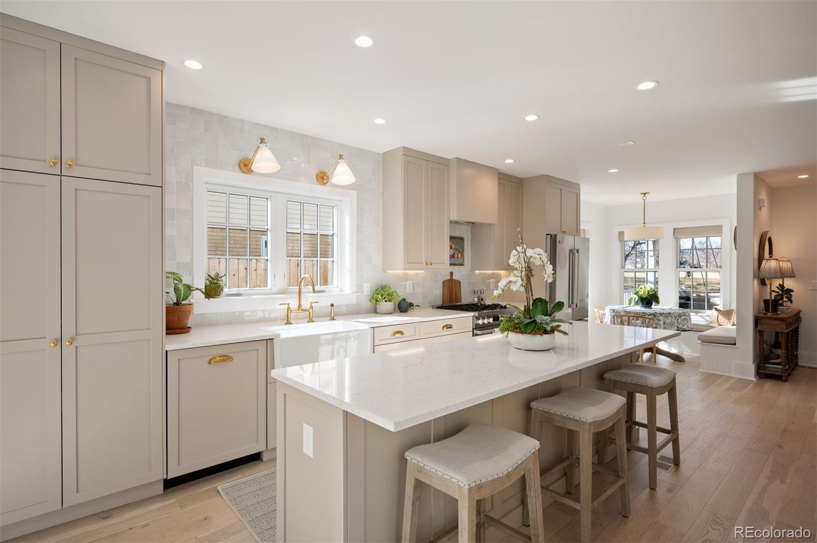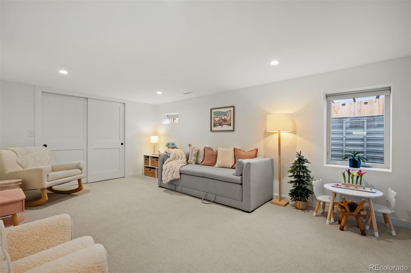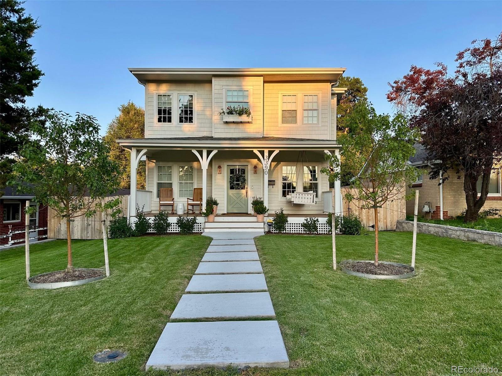 Positioned directly across from Panorama Park, this home features spectacular mountain and park views. Inside, you’ll find Visual Comfort lighting, Kohler fixtures, custom built-ins, and a bright, inviting living area anchored by a fireplace. Originally constructed in 1951 and fully scraped above ground, the residence was completely reimagined and completed in 2024. It offers 3,016 square feet of refined living space, including five bedrooms and four bathrooms. Outdoor amenities include a charming front porch with swing, covered back porch with an outdoor television and a spacious backyard enhanced by extensive landscaping, mature trees, and colorful perennials. The detached two-car garage features tall ceilings for excellent storage flexibility. Panorama Park provides playgrounds, newly upgraded tennis and basketball courts, and dog-friendly green spaces. This home is ideally located near Sloan’s Lake with easy access to Tennyson Street and Highlands Square dining and shopping.