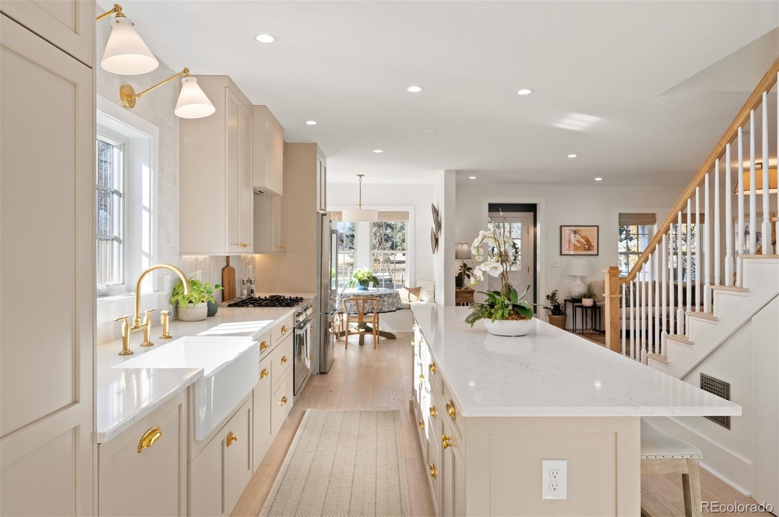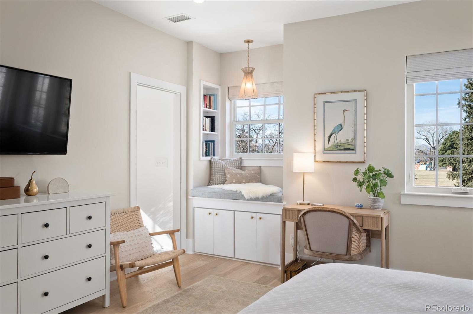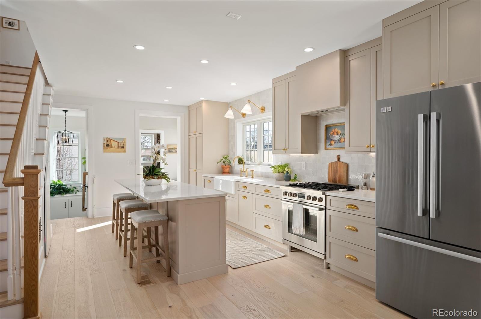Positioned directly across from Panorama Park, this home features spectacular mountain and park views. Inside, you’ll find Visual Comfort lighting, Kohler fixtures, custom built-ins, and a bright, inviting living area anchored by a fireplace. Originally constructed in 1951 and fully scraped above ground, the residence was completely reimagined and completed in 2024. It offers 3,016 square feet of refined living space, including five bedrooms and four bathrooms. Outdoor amenities include a charming front porch with swing, covered back porch with an outdoor television and a spacious backyard enhanced by extensive landscaping, mature trees, and colorful perennials. The detached two-car garage features tall ceilings for excellent storage flexibility. Panorama Park provides playgrounds, newly upgraded tennis and basketball courts, and dog-friendly green spaces. This home is ideally located near Sloan’s Lake with easy access to Tennyson Street and Highlands Square dining and shopping.
