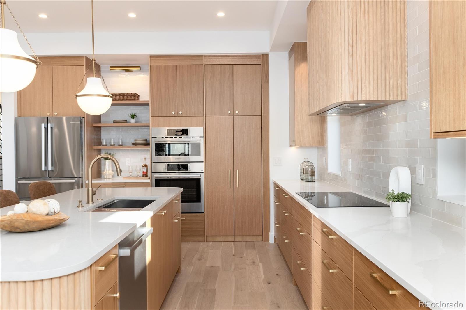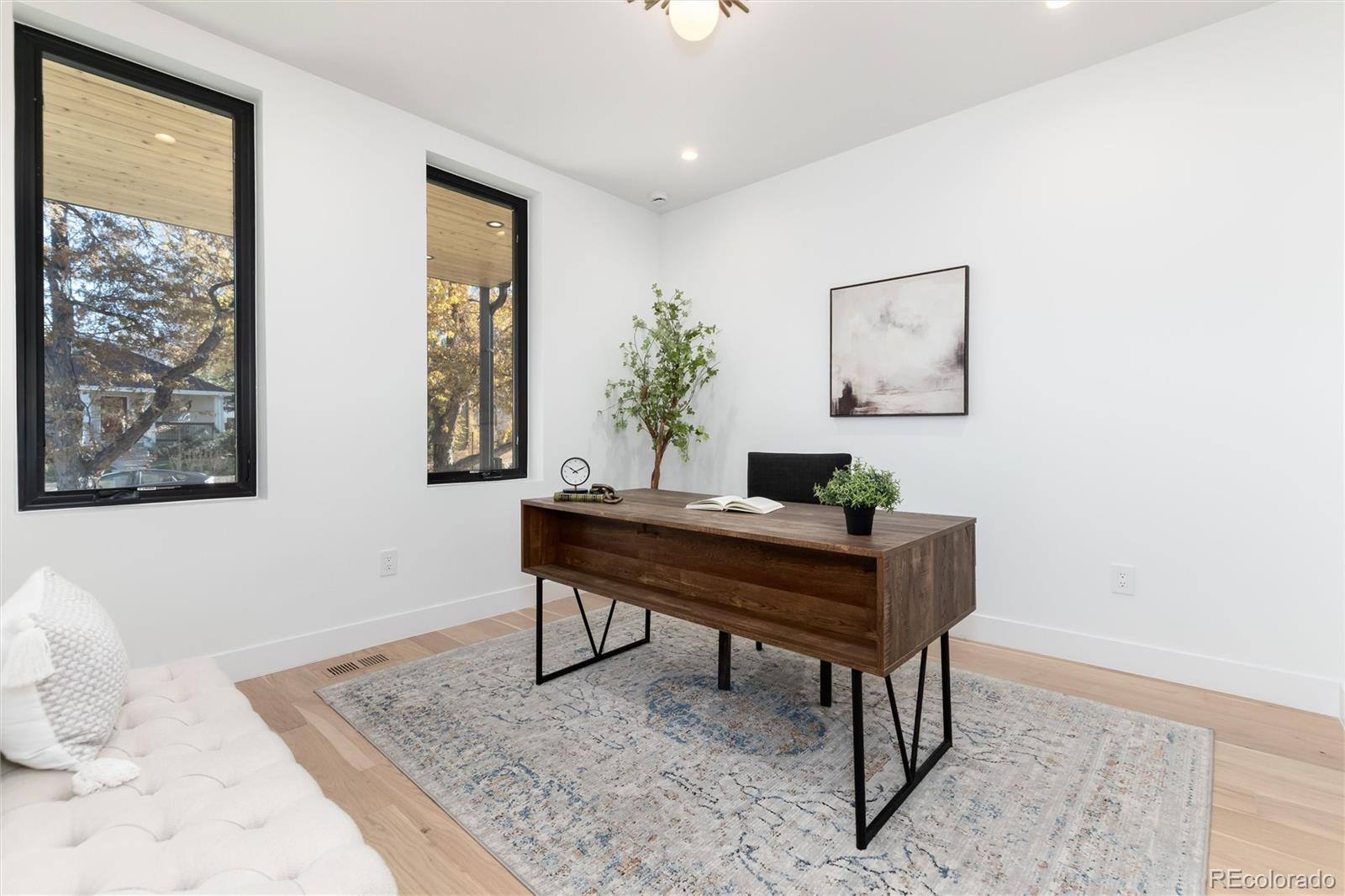 Welcome to 1781 S Marion Street, an elevated urban sanctuary in the heart of Denver’s coveted Platt Park neighborhood. Thoughtfully designed and newly built in 2025, this modern residence blends sophisticated style with effortless livability. The home features 6 bedrooms and 4 bathrooms across 3,600+ square feet with 10' ceilings throughout main level and 9' ceilings in the basement. Enjoy the natural light pouring in through large windows, wide-plank white oak hardwood floors, custom cabinetry, soaring vaulted ceilings, and designer finishes throughout. The chef-inspired kitchen is the heart of the home, featuring premium Bosch appliances, a large island, and a hidden walk-in butler’s pantry with a second sink and bar area. The open-concept living and dining areas flow seamlessly to an inviting backyard and patio space, perfect for entertaining or quiet evenings outdoors. A rear mudroom with built-in cabinetry is conveniently located upon exit to the patio and oversized 2-car detached garage. The main floor is complete with a powder room, built in front mudroom area, and a light-filled office/bedroom. Upstairs, the primary suite impresses with a vaulted ceiling, private balcony, spa-style 5 piece bath w/ wet-room, and a spacious custom walk-in closet that is completely modular. Two additional bedrooms, both with custom closets share a Jack-and-Jill bathroom, and a thoughtfully designed laundry room completes the upper level. The finished basement expands your living space with a generous lounge area and wet bar, a 3/4 bathroom, plus two additional bedrooms ideal for guests, a home gym, a playroom or office. With a detached oversized 2-car garage, spacious patio, walkability to Wash Park and South Pearl Street’s shopping, dining, and entertainment, along with access to light rail, this home offers the ultimate blend of modern luxury and urban convenience. 1 year builder warranty included.