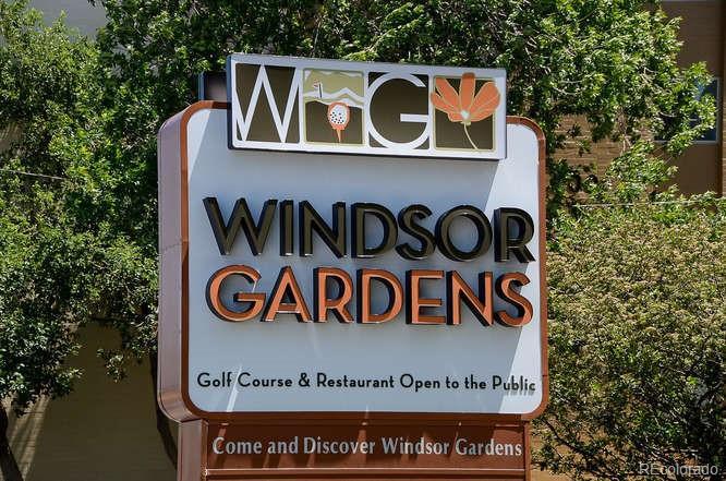 Welcome to the beautiful and friendly Golf Course community of Windsor Gardens. Relax in this no maintenance community with loads of opportunity for casual relaxing and cultural entertaining. This building is located directly on the Highline Canal trail offering walking and biking to miles of paved trails. Enjoy the large enclosed lanai with beautiful sunsets and partial mountain views. Golf, indoor and outdoor pools and many other activities are available in the community. Convenient bus service is available to many other destinations throughout the Denver area. Real estate taxes are included in the HOA fees, in addition to Water, sewer, trash, heat, hot water, and much more. Come see what Windsor Gardens Denver has to offer.