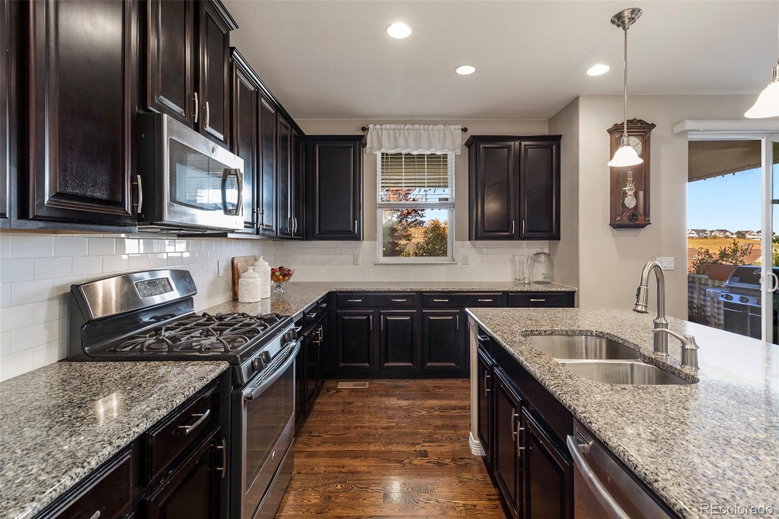 Experience the best of Colorado living in this beautiful Leyden Rock home in Arvada. The main floor invites you in with a bright great room featuring a cozy gas fireplace, ideal for relaxing evenings or gathering with friends. The kitchen is a chef’s dream with a large island, stainless steel appliances, and granite countertops, seamlessly connecting to the dining area for effortless entertaining. A convenient half bath completes the main level. Upstairs, the primary suite offers a private full bath, while two additional bedrooms and a full bath provide plenty of space for family or guests. The unfinished walk-out basement is ready for your personal touch—perfect for a media room, gym, or play area. Outside, the expansive deck offers beautiful mountain views, making morning coffee or sunset evenings unforgettable. The back yard is both private and inviting and is host to not one, but two, wonderful places to entertain on the deck or patio. Leyden Rock residents enjoy 17 miles of trails, just one block away to the community pool, and clubhouse, plus easy access to Boulder, Denver, I-70, and nearby shopping and dining. With Highly Rated Meiklejohn Elementary and Ralston Valley High School (GO MUSTANGS!) nearby and a community built for outdoor enjoyment and connection, this home is more than a house—it’s a lifestyle. Equal distance to Boulder, Downtown Denver and the Mountains discover why Leyden Rock was once one of the 10 fastest growing communities in the country! Discover why this is the one you've been waiting for! Welcome Home!!