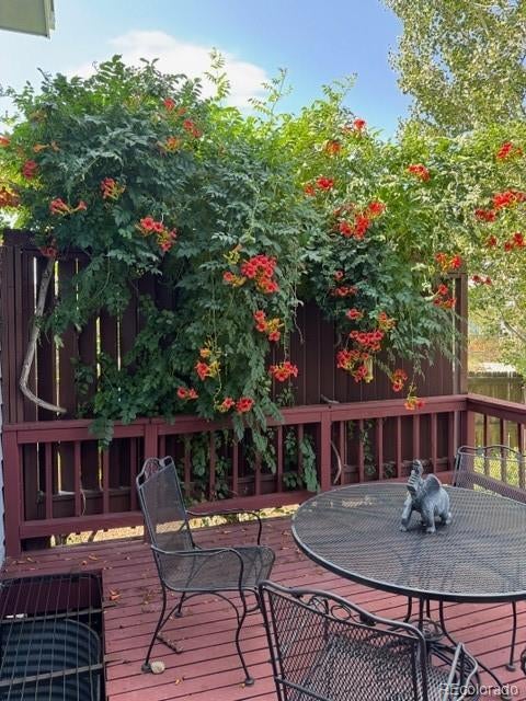Well cared-for and WONDERFUL home with INCREDIBLE VIEWS of Standly Lake, the mountains and the Flat Irons! The last listing with these same views went under contract in just a FEW DAYS -- don't wait. The spacious living room is dramatically VAULTED and features a fireplace and access to a professionally landscaped back yard. The CHARMING back yard features a large deck, a LOVELY garden sitting area, a trumpet vine that is UNBELIVABLE and which -- provides GORGEOUS privacy. The kitchen has just been REMODELED and boasts BEAUTIFUL QUARTZ countertops, new stainless appliances, a pantry, NEW laminate flooring and fixtures. This same brand-new laminate flooring is installed throughout the main floor. The sitting area adjacent to the kitchen features an IMPRESSIVE picture window with both lake and mountain views. The large primary suite is vaulted and features the same incredible views. (Note: there is plenty of room for a king size bed and the primary bath features an inviting soaking tub.) The basement is finished and includes an egress window, laundry with extra space for sewing and crafts, and a workshop with a utility sink. And to top it off the three-quarter bath has a STEAM SHOWER! The basement room can serve as a third bedroom, family room, man cave or lady's den. The front porch is INVITING, featuring healthy happy aspens, flowers and lawn. Great and popular Arvada/Jefferson County location with easy access to shopping, Stanley Lake Regional Park and Wildlife Refuge, Denver, Boulder and the Mountains of Colorado. This HOME is DELIGHTFUL...
