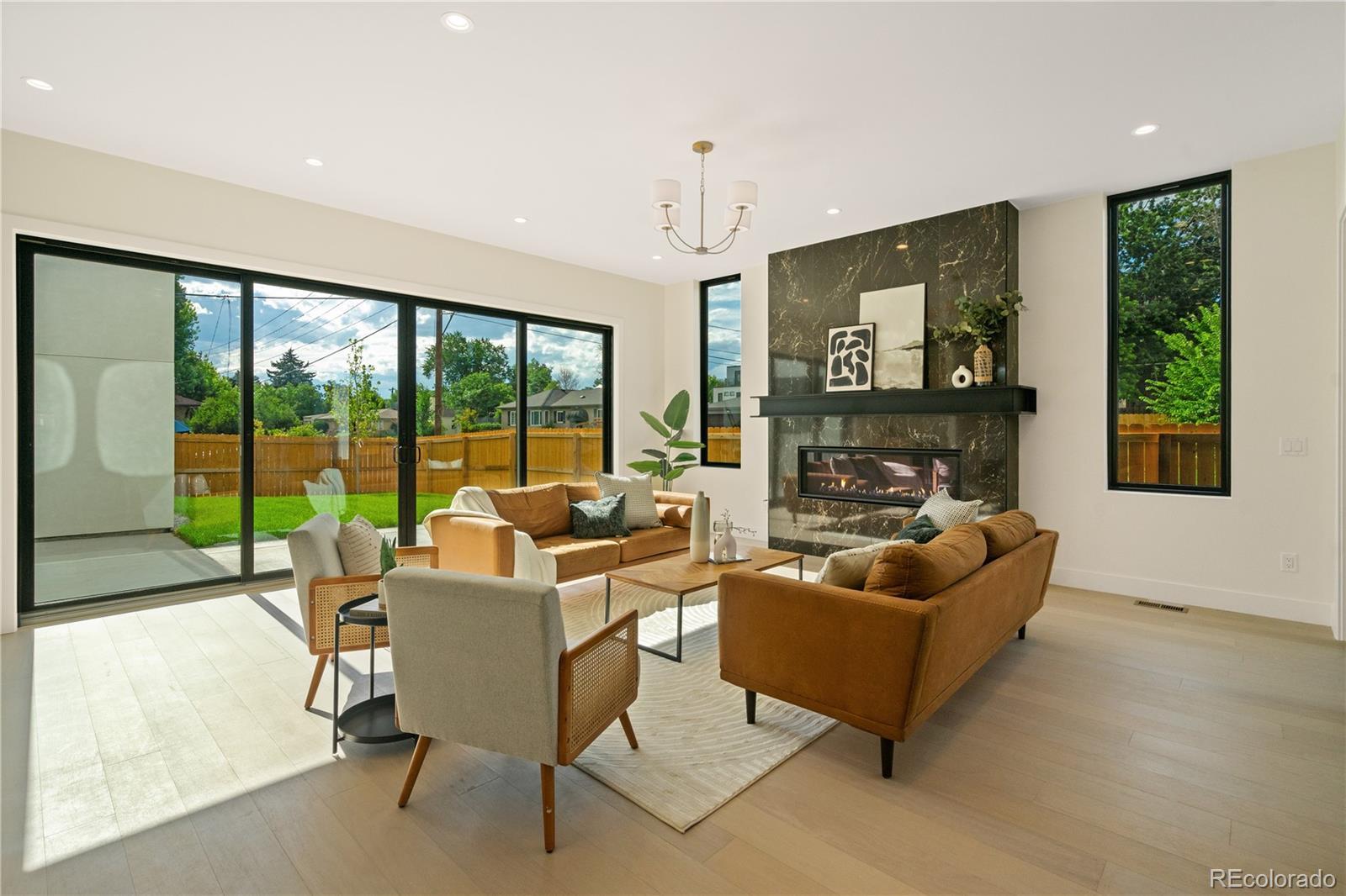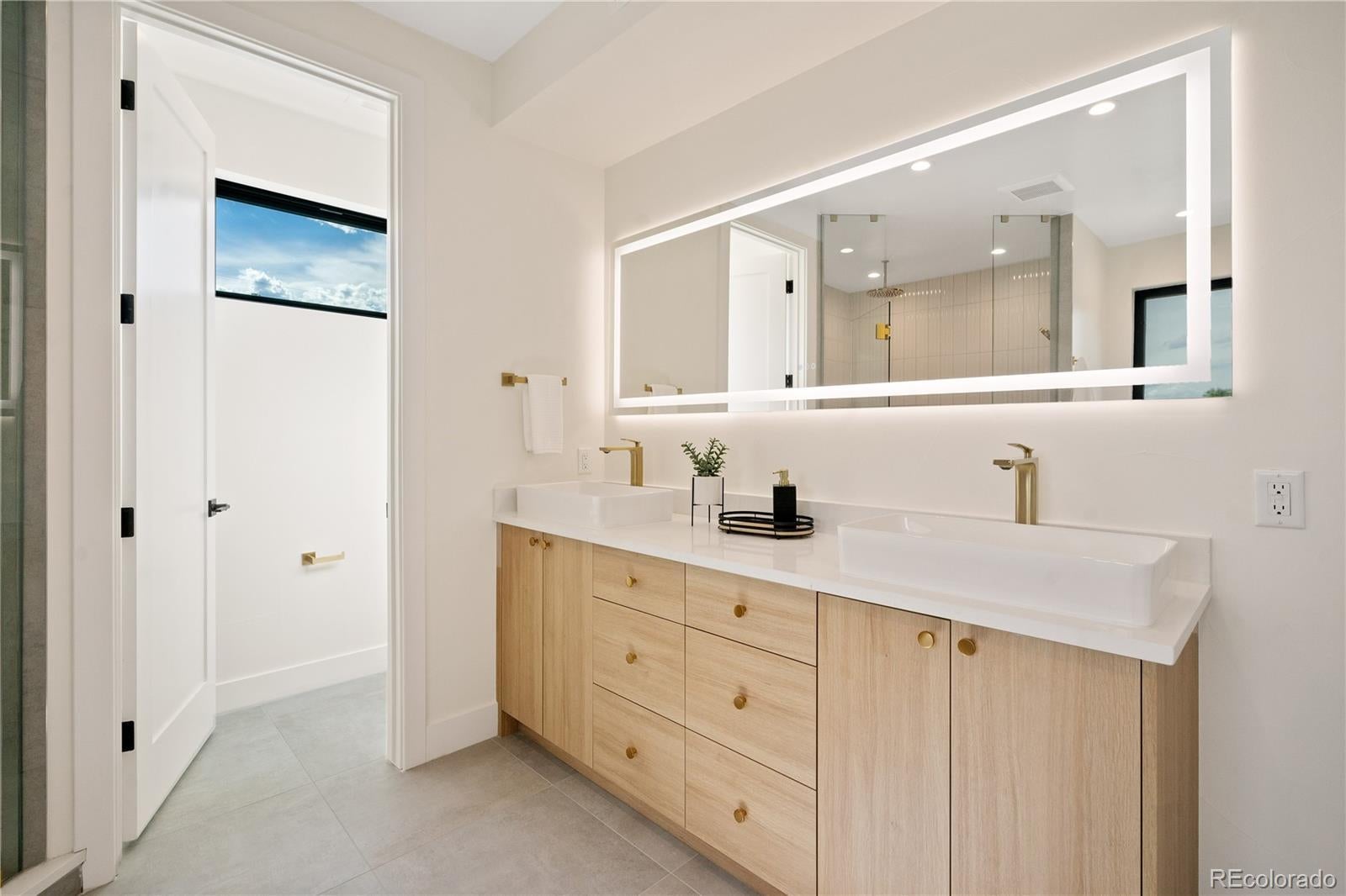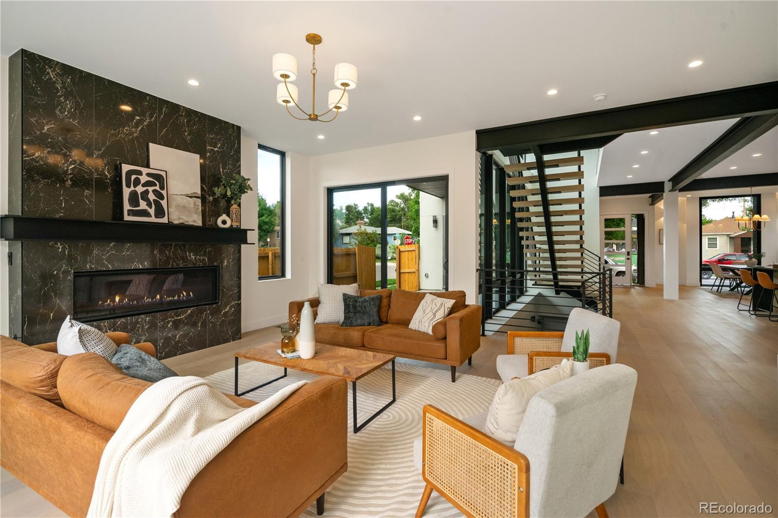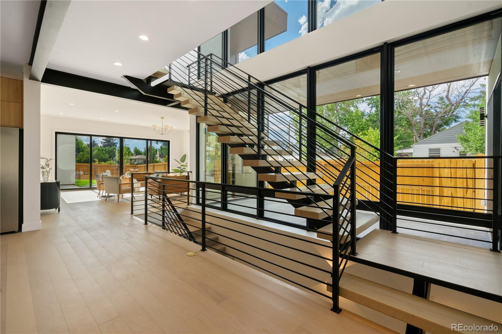 PRICE REDUCED! Experience the pinnacle of luxury living in this architectural masterpiece. 5 bed/6 bath contemporary new construction home on a prime corner lot in Cory-Merrill. With over 5200 total sq ft, this home features luxury finishes, natural light & designer details throughout. Huge chef's kitchen w/soft-close custom cabinetry, Thermador double oven, cooktop & dishwasher, a 66" double wide fridge/freezer, drawer-style microwave, 10'4" huge eat-in black quartz waterfall island w/bonus cabinet storage on back side, pot filler, undercabinet lights, & walk-in pantry. 4 out of 5 bedrooms with their own ensuite bathrooms. Expansive 20'x19' living room w/double sided access to 2 exterior patios & a linear gas fireplace w/custom steel I-beam mantel. Glass wall of windows alongside the custom monorail staircase w/floating treads. Main floor office w/floor to ceiling windows, custom glass door, open shelves & patio access. Mud room w/dog wash, bench, coat closet + coat hooks. Luxurious powder bath w/vessel sink. 9'10" tall main floor ceilings. Huge (18'9" x 14'9") primary bedroom w/walk-in closet, cafe bar, 5-piece ensuite bath w/heated floors, enormous shower w/3 shower heads+hand sprayer, full length quartz shelf & linear drain. Walk out primary bedroom deck w/linear fireplace that puts out serious heat & w/multiple color/lighting options. Basement w/ 2 additional bedrooms, 10 ft tall ceilings, & wet bar w/9'2" island. Andersen fibrex windows. Engineered hardwood flooring. Luxurious pull trowel drywall texture. Tankless water heater. Excellent exterior w/2 separate patios (1 w/gas line for patio fire pit & the other w/gas line for BBQ + pre-wired for exterior TV - perfect entertaining spaces. 2 car insulated & drywalled attached garage with smart/wifi opener, EV wiring in place, & gas line for future garage heater. Prime location close to Washington Park, Bonnie Brae, DU, I-25 access & much more. No HOA. 1-year builder warranty included.