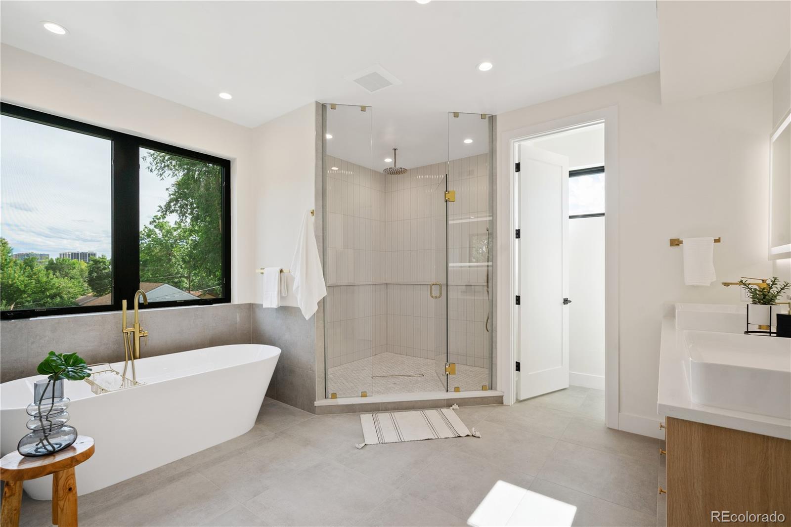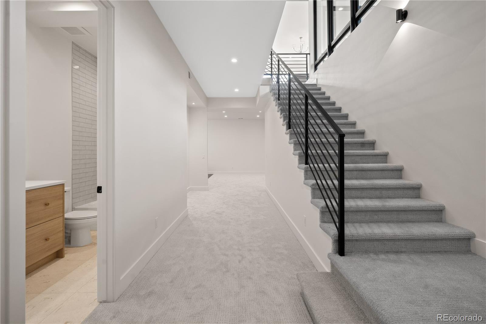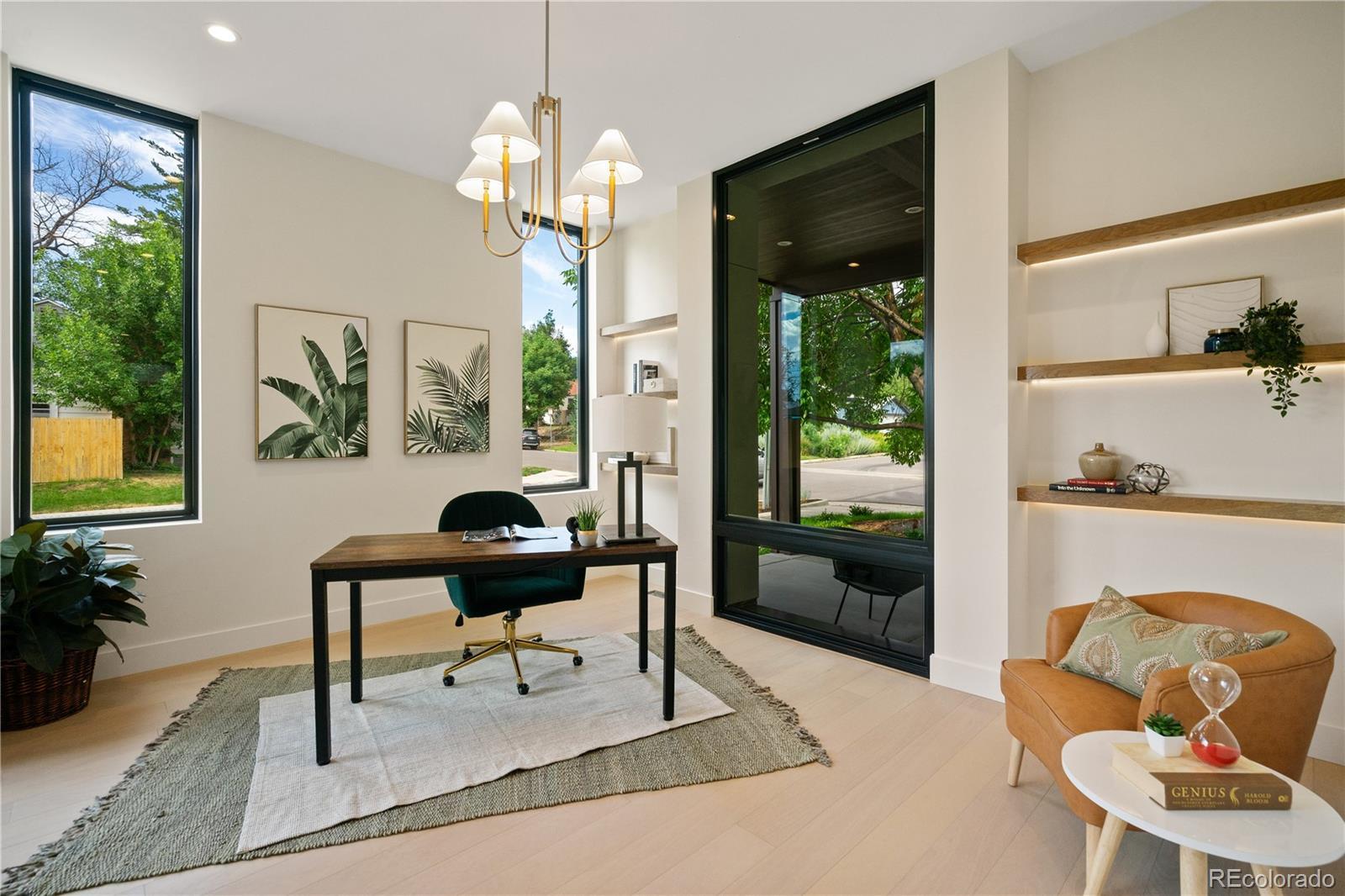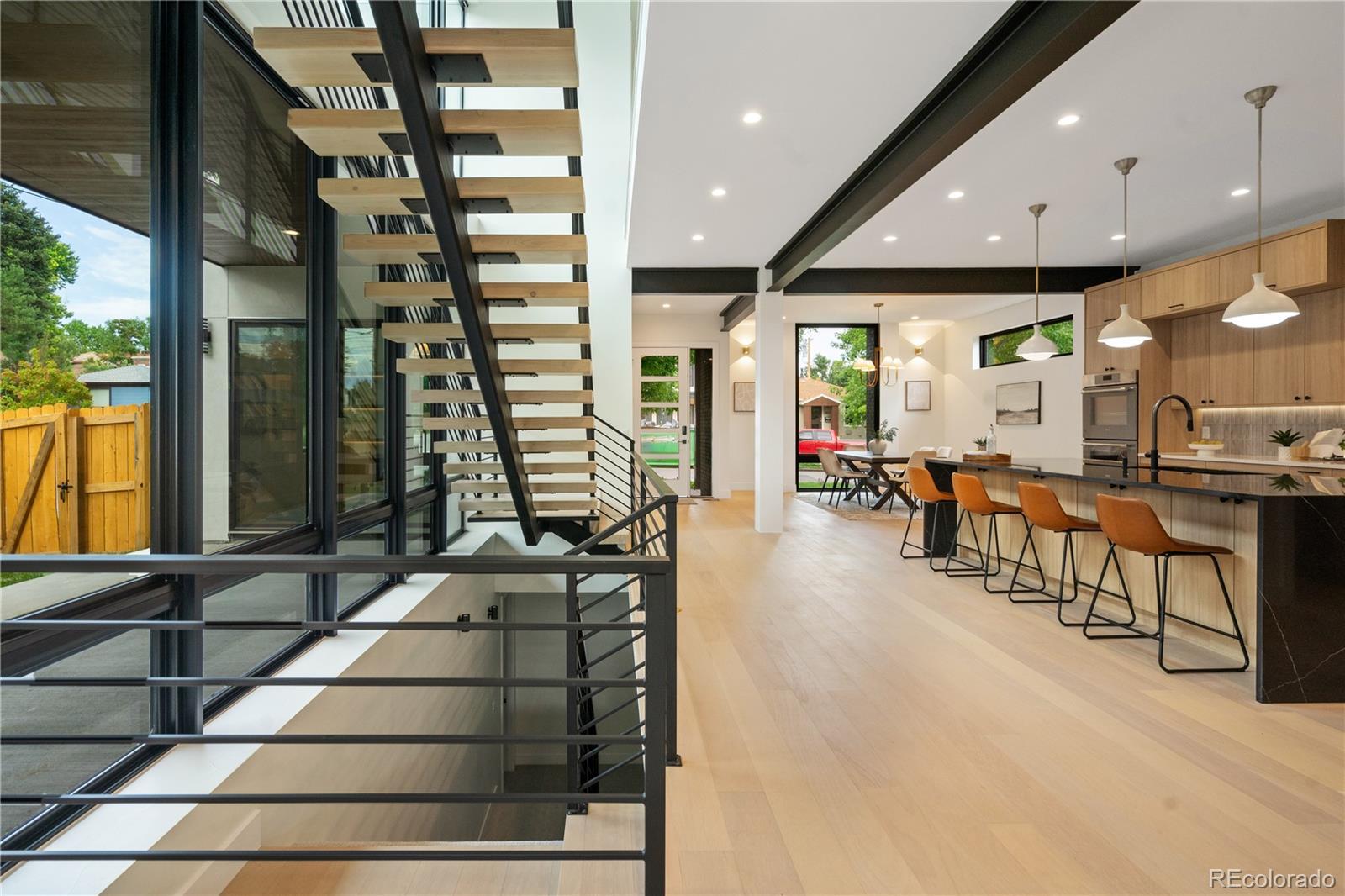 PRICE REDUCED! Experience the pinnacle of luxury living in this architectural masterpiece. 5 bed/6 bath contemporary new construction home on a prime corner lot in Cory-Merrill. With over 5200 total sq ft, this home features luxury finishes, natural light & designer details throughout. Huge chef's kitchen w/soft-close custom cabinetry, Thermador double oven, cooktop & dishwasher, a 66" double wide fridge/freezer, drawer-style microwave, 10'4" huge eat-in black quartz waterfall island w/bonus cabinet storage on back side, pot filler, undercabinet lights, & walk-in pantry. 4 out of 5 bedrooms with their own ensuite bathrooms. Expansive 20'x19' living room w/double sided access to 2 exterior patios & a linear gas fireplace w/custom steel I-beam mantel. Glass wall of windows alongside the custom monorail staircase w/floating treads. Main floor office w/floor to ceiling windows, custom glass door, open shelves & patio access. Mud room w/dog wash, bench, coat closet + coat hooks. Luxurious powder bath w/vessel sink. 9'10" tall main floor ceilings. Huge (18'9" x 14'9") primary bedroom w/walk-in closet, cafe bar, 5-piece ensuite bath w/heated floors, enormous shower w/3 shower heads+hand sprayer, full length quartz shelf & linear drain. Walk out primary bedroom deck w/linear fireplace that puts out serious heat & w/multiple color/lighting options. Basement w/ 2 additional bedrooms, 10 ft tall ceilings, & wet bar w/9'2" island. Andersen fibrex windows. Engineered hardwood flooring. Luxurious pull trowel drywall texture. Tankless water heater. Excellent exterior w/2 separate patios (1 w/gas line for patio fire pit & the other w/gas line for BBQ + pre-wired for exterior TV - perfect entertaining spaces. 2 car insulated & drywalled attached garage with smart/wifi opener, EV wiring in place, & gas line for future garage heater. Prime location close to Washington Park, Bonnie Brae, DU, I-25 access & much more. No HOA. 1-year builder warranty included.