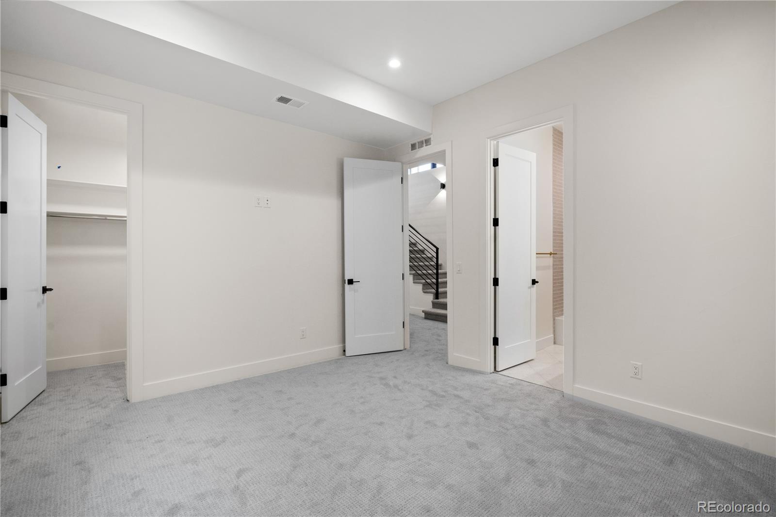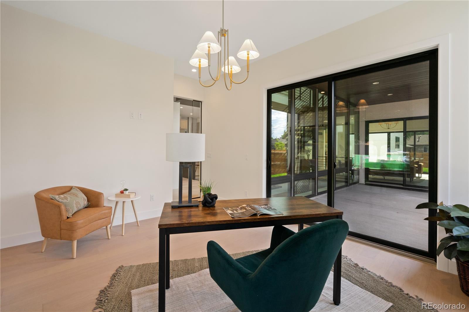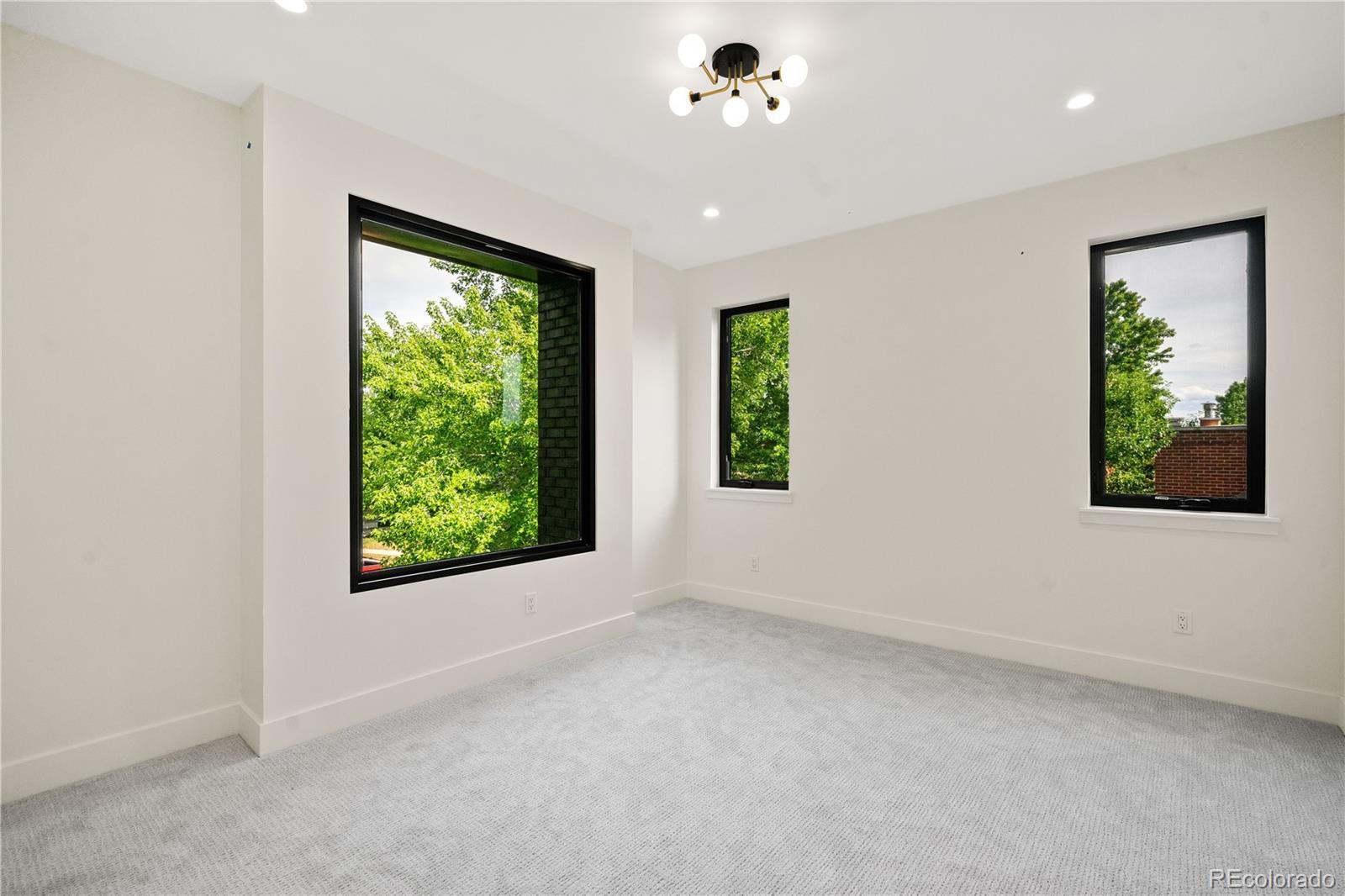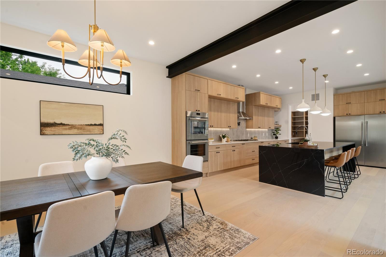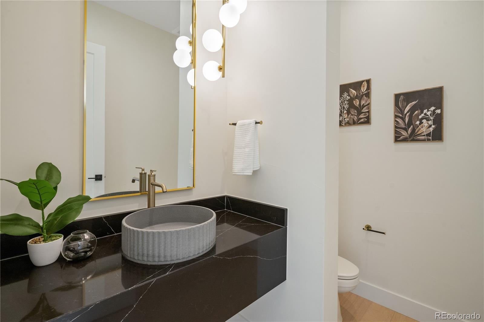PRICE REDUCED! Experience the pinnacle of luxury living in this architectural masterpiece. 5 bed/6 bath contemporary new construction home on a prime corner lot in Cory-Merrill. With over 5200 total sq ft, this home features luxury finishes, natural light & designer details throughout. Huge chef's kitchen w/soft-close custom cabinetry, Thermador double oven, cooktop & dishwasher, a 66" double wide fridge/freezer, drawer-style microwave, 10'4" huge eat-in black quartz waterfall island w/bonus cabinet storage on back side, pot filler, undercabinet lights, & walk-in pantry. 4 out of 5 bedrooms with their own ensuite bathrooms. Expansive 20'x19' living room w/double sided access to 2 exterior patios & a linear gas fireplace w/custom steel I-beam mantel. Glass wall of windows alongside the custom monorail staircase w/floating treads. Main floor office w/floor to ceiling windows, custom glass door, open shelves & patio access. Mud room w/dog wash, bench, coat closet + coat hooks. Luxurious powder bath w/vessel sink. 9'10" tall main floor ceilings. Huge (18'9" x 14'9") primary bedroom w/walk-in closet, cafe bar, 5-piece ensuite bath w/heated floors, enormous shower w/3 shower heads+hand sprayer, full length quartz shelf & linear drain. Walk out primary bedroom deck w/linear fireplace that puts out serious heat & w/multiple color/lighting options. Basement w/ 2 additional bedrooms, 10 ft tall ceilings, & wet bar w/9'2" island. Andersen fibrex windows. Engineered hardwood flooring. Luxurious pull trowel drywall texture. Tankless water heater. Excellent exterior w/2 separate patios (1 w/gas line for patio fire pit & the other w/gas line for BBQ + pre-wired for exterior TV - perfect entertaining spaces. 2 car insulated & drywalled attached garage with smart/wifi opener, EV wiring in place, & gas line for future garage heater. Prime location close to Washington Park, Bonnie Brae, DU, I-25 access & much more. No HOA. 1-year builder warranty included.