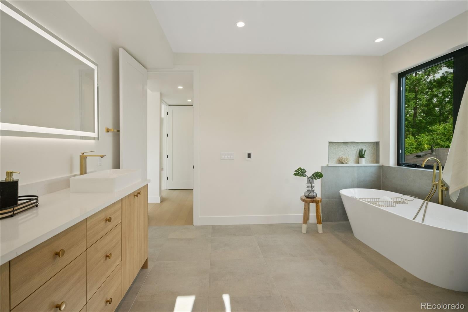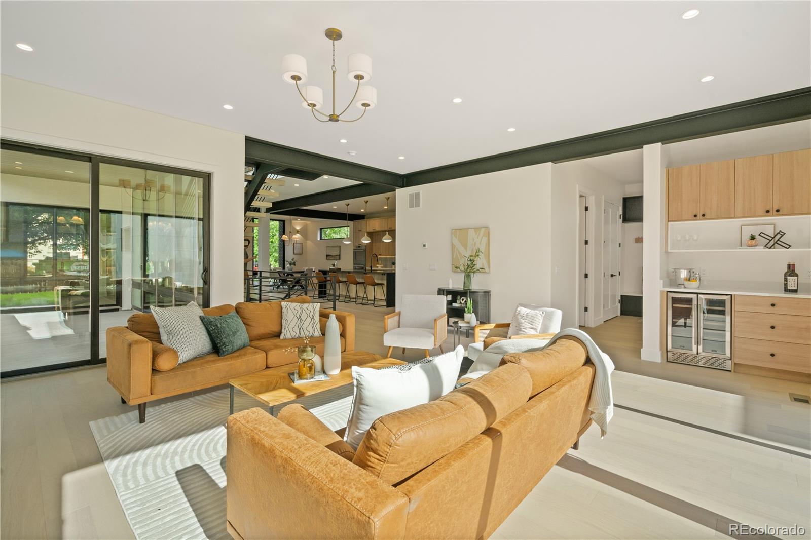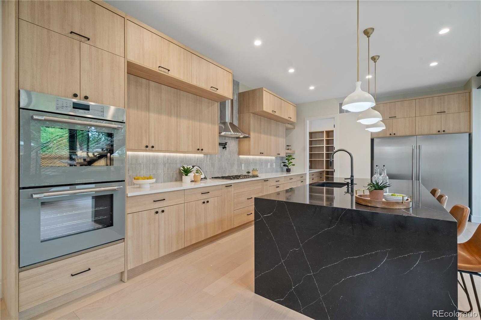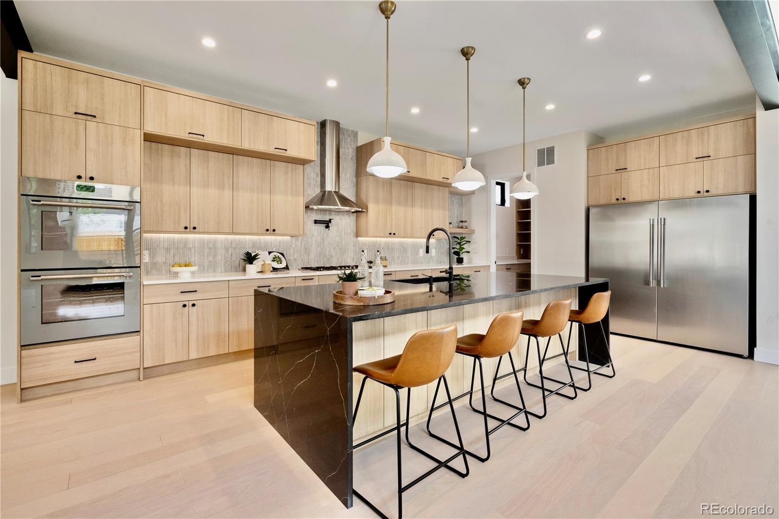 PRICE REDUCED! Experience the pinnacle of luxury living in this architectural masterpiece. 5 bed/6 bath contemporary new construction home on a prime corner lot in Cory-Merrill. With over 5200 total sq ft, this home features luxury finishes, natural light & designer details throughout. Huge chef's kitchen w/soft-close custom cabinetry, Thermador double oven, cooktop & dishwasher, a 66" double wide fridge/freezer, drawer-style microwave, 10'4" huge eat-in black quartz waterfall island w/bonus cabinet storage on back side, pot filler, undercabinet lights, & walk-in pantry. 4 out of 5 bedrooms with their own ensuite bathrooms. Expansive 20'x19' living room w/double sided access to 2 exterior patios & a linear gas fireplace w/custom steel I-beam mantel. Glass wall of windows alongside the custom monorail staircase w/floating treads. Main floor office w/floor to ceiling windows, custom glass door, open shelves & patio access. Mud room w/dog wash, bench, coat closet + coat hooks. Luxurious powder bath w/vessel sink. 9'10" tall main floor ceilings. Huge (18'9" x 14'9") primary bedroom w/walk-in closet, cafe bar, 5-piece ensuite bath w/heated floors, enormous shower w/3 shower heads+hand sprayer, full length quartz shelf & linear drain. Walk out primary bedroom deck w/linear fireplace that puts out serious heat & w/multiple color/lighting options. Basement w/ 2 additional bedrooms, 10 ft tall ceilings, & wet bar w/9'2" island. Andersen fibrex windows. Engineered hardwood flooring. Luxurious pull trowel drywall texture. Tankless water heater. Excellent exterior w/2 separate patios (1 w/gas line for patio fire pit & the other w/gas line for BBQ + pre-wired for exterior TV - perfect entertaining spaces. 2 car insulated & drywalled attached garage with smart/wifi opener, EV wiring in place, & gas line for future garage heater. Prime location close to Washington Park, Bonnie Brae, DU, I-25 access & much more. No HOA. 1-year builder warranty included.