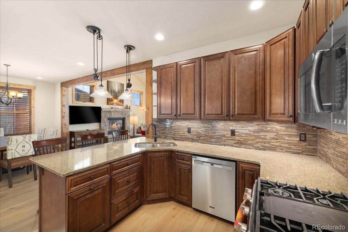 Premier lakefront 3 bedroom duplex with southwestern exposure that soaks up the sunshine. Big views of the Gore Range and Peak One. Fantastic main level living with the great room, dining area and master suite all on the ground floor. Large deck overlooking the lake is perfect for entertaining and sunsets. 2 car heated garage with storage closet for all your toys. Soak in the hot tub on the lower level patio. Large 2nd Living area and 2 bedrooms on the lower level are fantastic for guests. HOA plows driveways and shovels the walkways. Easy access to the Blue River, rec path and the trail that connects to Ptarmigan Peak. Located a few doors down from the Club House. Fantastic location close to all that Summit County offers with the lake just steps away.