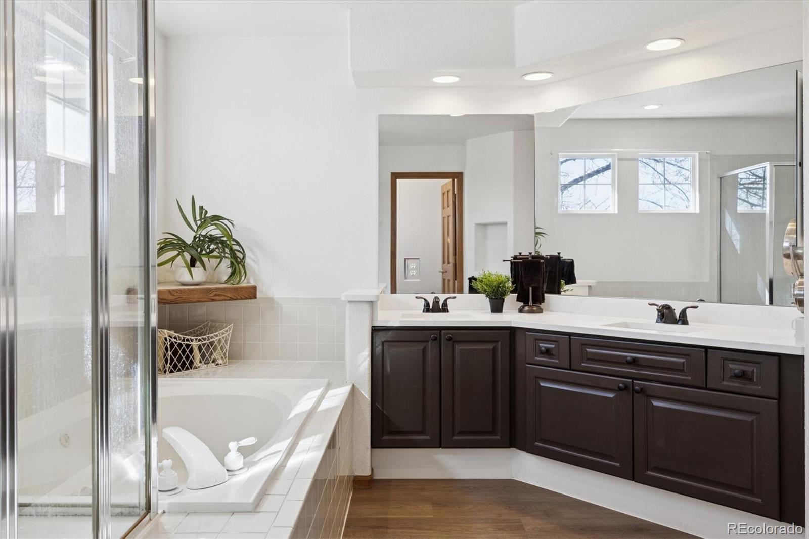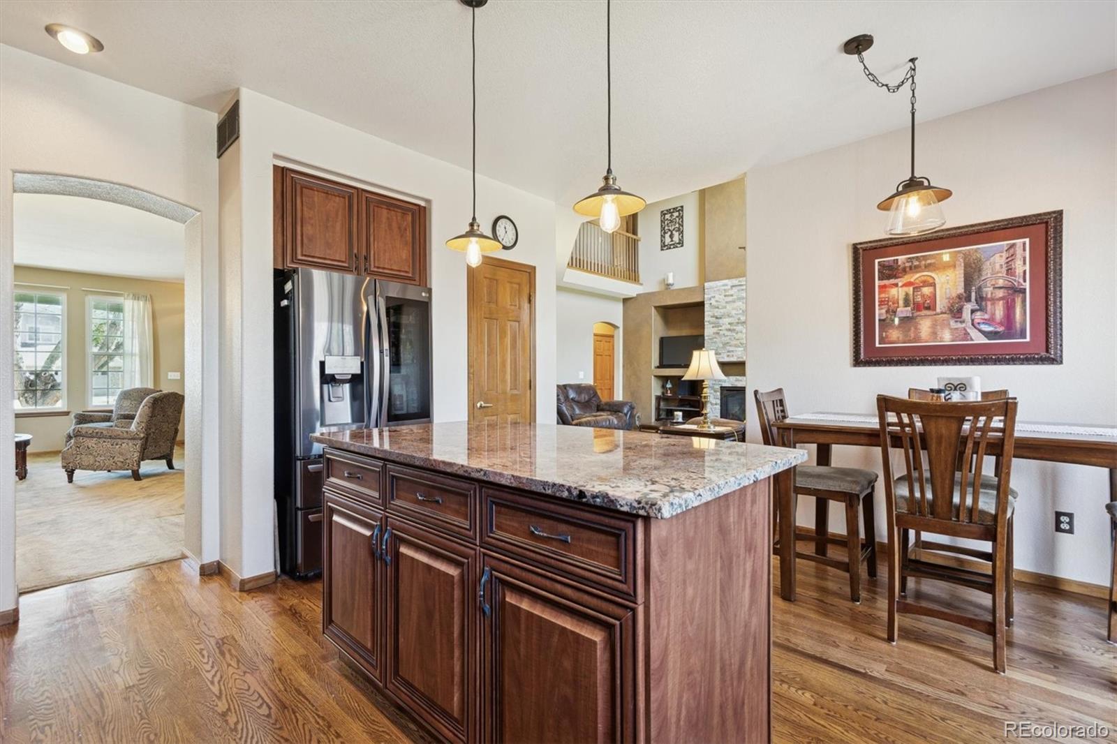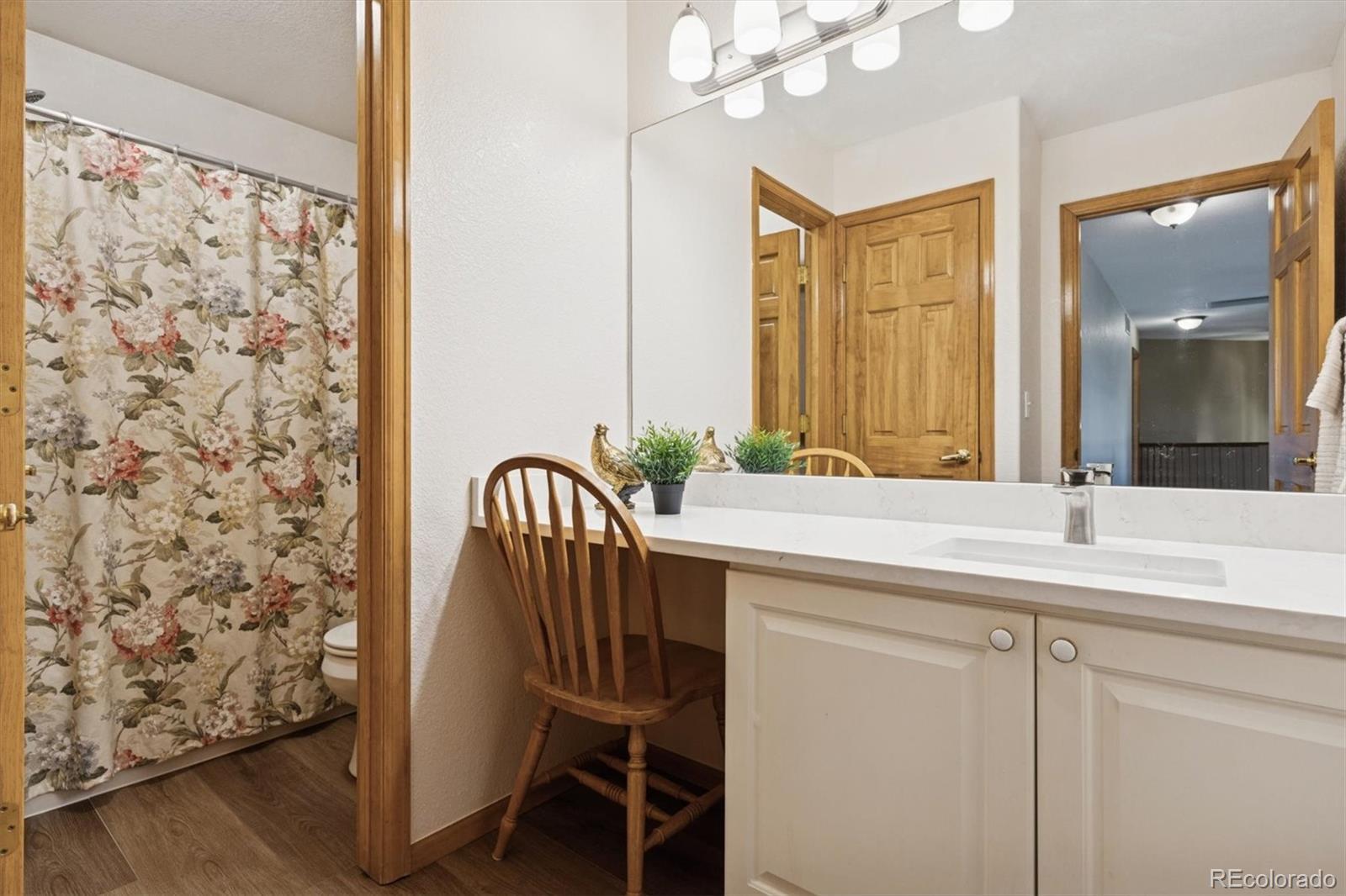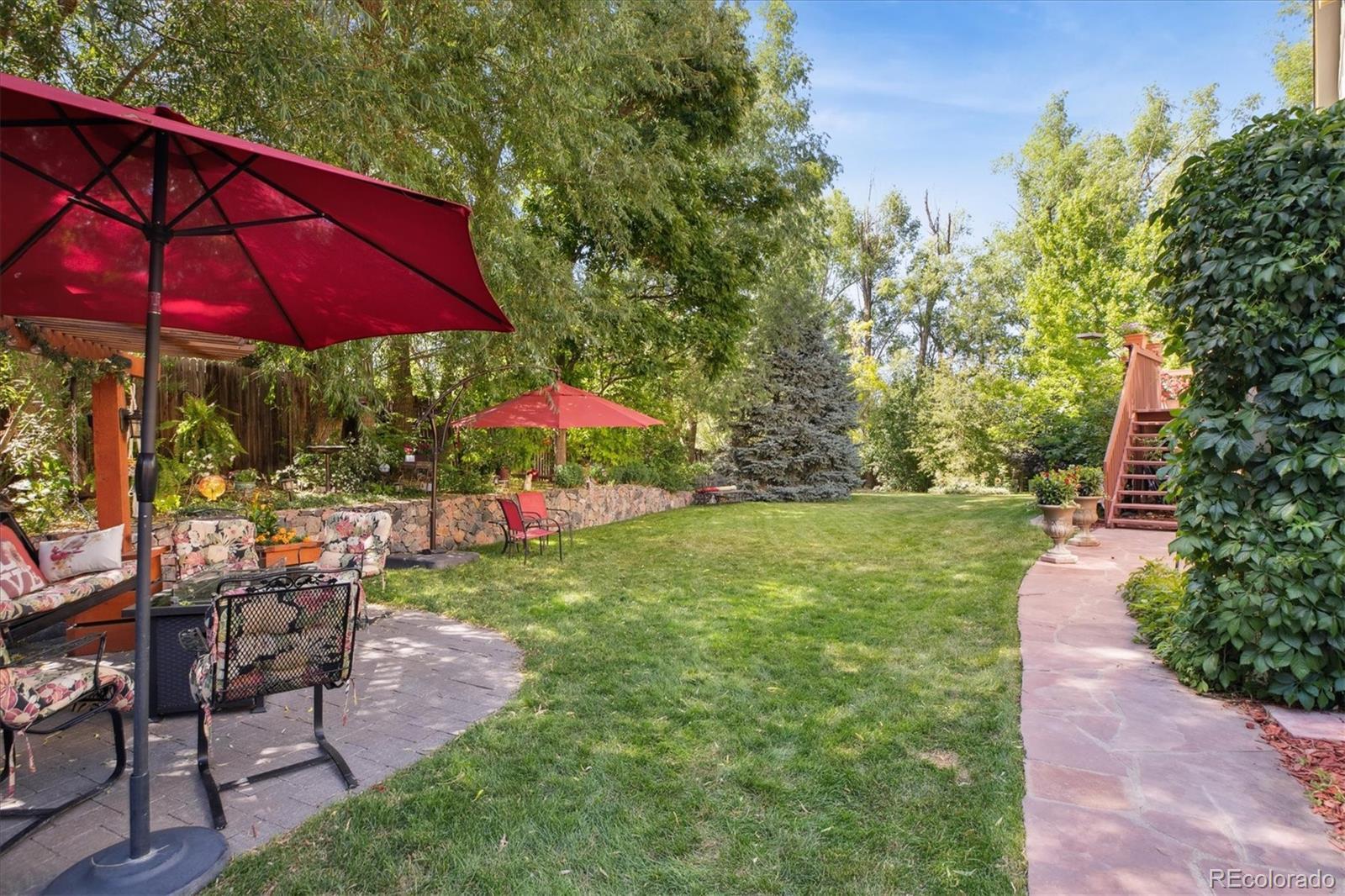 Nestled at the end of a cul-de-sac in the heart of Mira Vista, this wonderful 6 BR home with remarkable curb appeal & a charming front porch is the idyllic retreat you’ve been searching for. From the moment you step in, you’ll notice the soaring ceilings, solid wood doors, formal dining room, striking dry stack stone gas fireplace & double-pane windows that flood the space w/natural light. The kitchen is a chef’s dream, featuring 55” high cabinets, high-end granite countertops, stone backsplash, nook, SS appls, island/breakfast bar & the soft glow of pendant lighting. Retreat to the master suite—a private haven featuring a 5-pc bath w/quartz countertop, new light fixtures, new flooring & large walk-in cl. The basement includes a BR with a built-in vanity, ¾ bath w/accent tile, large storage room & a custom bar equipped with a fridge, wine rack & sink—ideal for hosting guests. This fabulous one-owner home also has main floor laundry, 5 additional BRs, 3-car garage, new roof (2024), leaf gutter guards & A/C! However, the true romance of this property lies in the beautiful, park-like backyard. Situated on one of the community’s largest lots, the backyard is a private oasis shaded by a lush canopy of over 30 mature trees. Whether you are tending to your raised gardens, relaxing on the redwood deck or hosting brunch on the flagstone patio under the powered awning, this backyard offers a lifestyle of unrivaled beauty & grand-scale entertaining. And what a prime location! Walk to Tonys Meat & Wine Market, Lifetime Fitness, Light Rail, South Suburban Golf Course! Walk one block away to Mira Vista Open Space with a walking path, park & playground! Easy access to Park Meadows Mall, Streets at Southglenn, DTC, I-25 and C-470. There are several neighborhood events each year! Low HOA! Plenty of guest parking! Award-winning schools including National Blue Ribbon! The list just goes on & on! Seriously, don't miss the chance to make this amazing home your own!