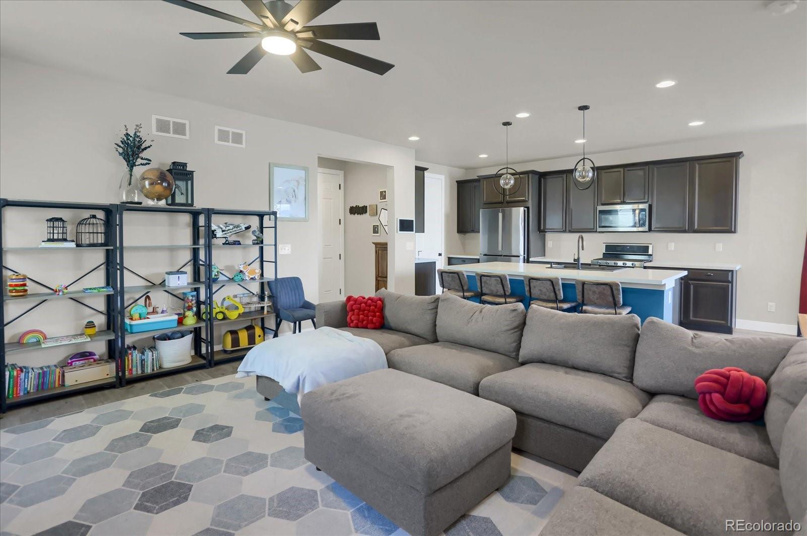 Experience the perfect blend of modern efficiency and thoughtful design in this stunning 3-bedroom, 3-bathroom home located in the vibrant Sterling Ranch community. The highly desirable floor plan is designed for the way you live, featuring a dedicated main-floor office for remote work and a gourmet kitchen anchored by an expansive oversized island—the ultimate centerpiece for entertaining. Luxury meets convenience on the upper level, where the laundry room is smartly attached directly to the primary suite’s walk-in closet. Upstairs you will also find a loft space that can be used as a secondary office. Beyond the interior, living in Sterling Ranch means more than just a beautiful house; it’s a lifestyle upgrade with access to premier amenities including pickleball courts, scenic parks, fitness center, walking trails, and a state-of-the-art clubhouse. Positioned for ultimate convenience, this home offers unbeatable commuter access just minutes from Santa Fe Drive and E-470. Whether you’re heading into downtown Denver, trekking to the airport, or making a quick escape to the mountains, you're perfectly situated to spend less time in traffic and more time enjoying the Colorado lifestyle.