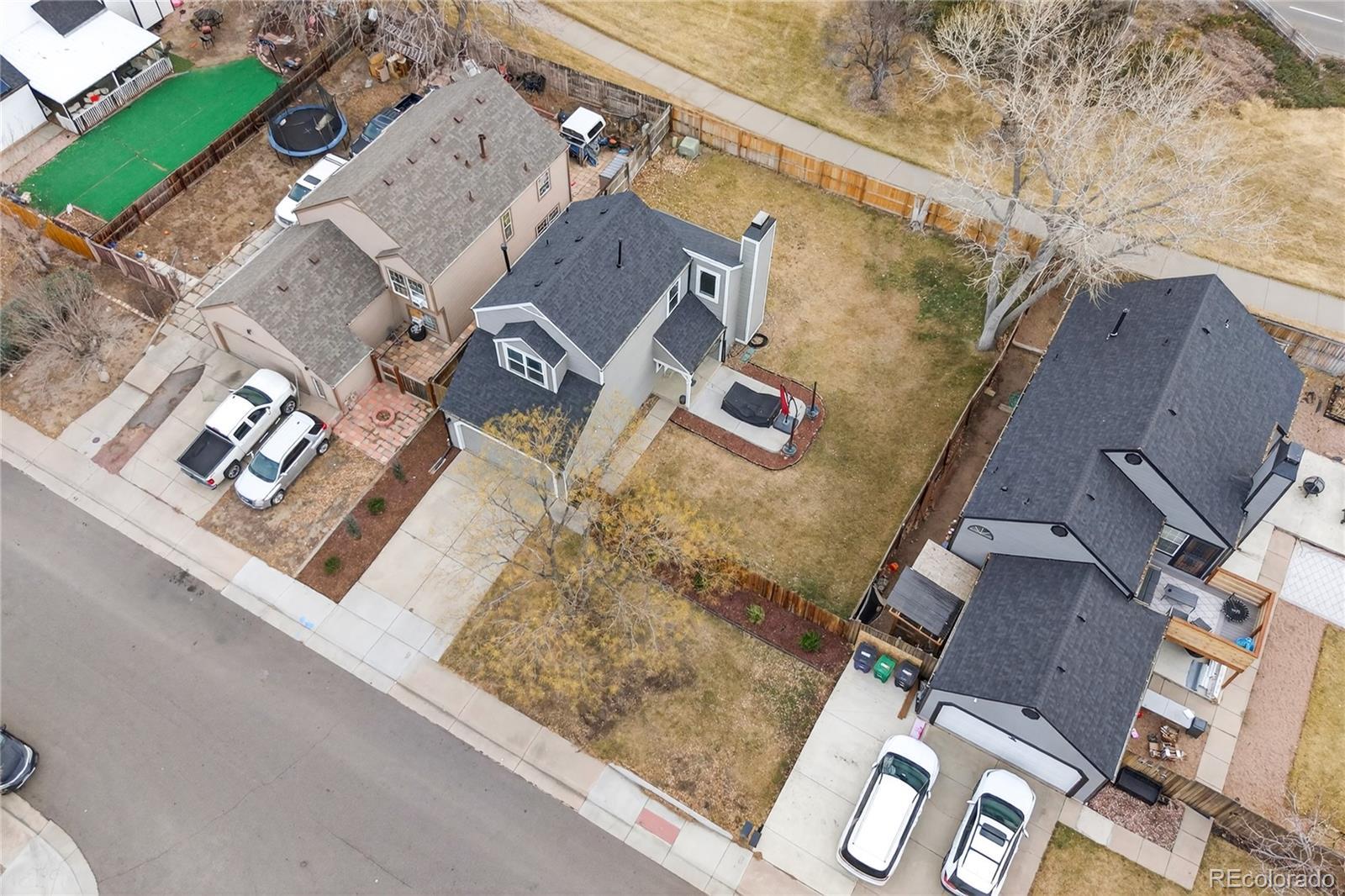 Set on an exceptionally spacious lot, this home offers the perfect blend of indoor comfort and outdoor living. The oversized lot is the true standout, providing a private entry, a large patio perfect for entertaining, and a huge grassy area for play, gardening, or relaxation. The backyard is fully fenced with a new back fence (November 2024), complemented by newly planted trees and bushes (October 2025) that enhance privacy and curb appeal. Step inside to a bright and open living room featuring vaulted ceilings and a cozy fireplace that create a warm and inviting atmosphere. The beautifully updated kitchen boasts quartz countertops, stainless steel appliances, a built-in desk area, and an eat-in table space ideal for casual dining. Conveniently, a main-level half bath includes full-size laundry for added ease. Both bedrooms are located upstairs, with the primary bedroom offering vaulted ceilings, a walk-in closet, a private vanity, and direct access to the bathroom. Thoughtful updates throughout ensure peace of mind, including a new roof and gutters (November 2024), new AC (2021), fresh paint (2021), and a smart garage door opener (February 2025). The kitchen has been refreshed with new countertops and sink (January 2026) and new flooring (December 2025), while the primary bath features a new vanity and flooring (December 2023). Ideally located near Rocky Mountain Arsenal, just 15 minutes from DIA, and close to Costco, shopping, and dining, this home sits in an established community with exciting new development nearby. With its combination of thoughtful updates, spacious interiors, and an exceptional lot, this property is a rare find ready to welcome its next owner!