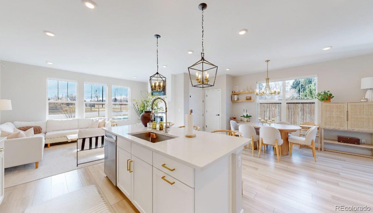 Built in 2022 and meticulously maintained, this sophisticated paired home looks and lives better than new. The Aspen plan—the largest model offered in Kipling West—features over 2,950 total square feet, only one shared wall, and a hard-to-find fenced yard. The light-filled main level offers a spacious open-concept layout with a large eat-in kitchen, quartz countertops, upgraded appliances including a gas range, over-sized pantry, and designer finishes throughout, all overlooking the great room and dining area. Energy-efficient construction, a tankless water heater, and a radon mitigation system support a healthier, quieter lifestyle with lower utility costs. Upstairs includes a private primary bedroom with en-suite bathroom and walk-in closet, oversized loft ideal for an office or family room, dedicated laundry, and two additional bedrooms with a full bath. The covered side porch provides direct access to the fenced yard, perfect for play or gardening. A fully sheetrocked two-car garage with built-in storage adds convenience, while the 840 sq ft unfinished basement—complete with an included sauna—offers incredible potential for a home gym, storage, or future finished space. Ideally located near shopping, parks, trails, trendy restaurants, transit, rec centers, and with quick access to Hwy 285, this low-maintenance, nearly new home offers space, style, and an exceptional floor plan in a highly desirable area. For more photos, videos, virtual walkthrough and more please see https://www.v6d.com/houses/4560-s-kipling-cir-denver-co-80123/