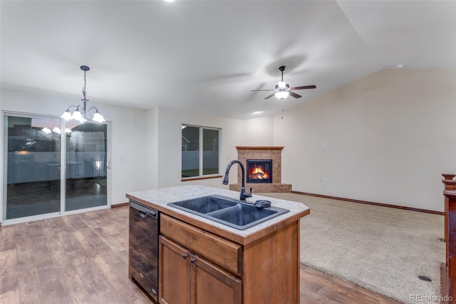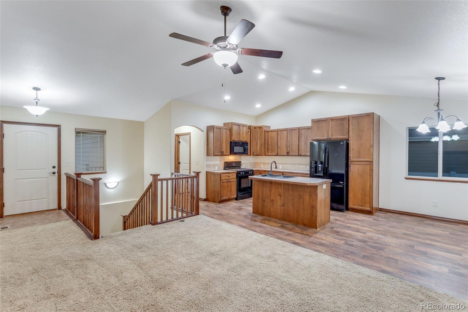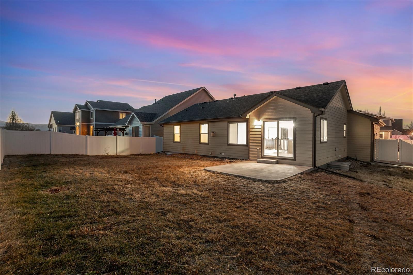 All of this is just minutes from downtown Berthoud, the TPC Golf Club, Berthouds new Rec. Center, and Carter Lake Reservoir. Easy access to Longmont, Fort Collins, and the Rocky Mountains including Estes Park and Rocky Mountain National Park. Built in 2016 by Sage Homes w/ no Metro Tax & low HOA, this meticulously maintained home offers new interior paint, all new LED adjustable light fixtures, double pane energy efficient windows, rounded corners, knock down texture, & 2 panel doors w/ brushed bronze hardware. The open foyer welcomes you into a vaulted family room w/ fan & corner gas fireplace w/ mantel. The kitchen features abundant counterspace, cityscape solid alder cabinets, center island w/ breakfast bar, 2 lazy Susans, laundry closet that can convert to pantry, & all appliances included: gas range, microwave, refrigerator & dishwasher. Spacious dining area opens to the backyard through a sliding glass door. The primary suite offers vaulted ceilings, fan, private 3/4 bath w/ lifted vanity, tile backsplash & large walk-in closet. Two additional main floor bedrooms, full guest bath w/ tile backsplash, linen closet, & main floor laundry w/ washer & dryer included complete the level. The finished basement boasts 7'6" ceilings, huge family room, game area, wet bar w/ refrigerator, 3/4 bath w/ quartz countertop, large storage area, 4th bedroom and a game area. Exterior highlights include new Class 4 roof in 2025, .16-acre fully fenced lot, stone mason work, covered front patio, sprinkler system, oversized concrete patio w/ stunning Longs Peak & Rocky Mountain views, plus attached insulated 2 car garage w/ epoxy floors, shelving, racks, TV, attic access & more. E-mail broker for a floor plan, additional features or to show.