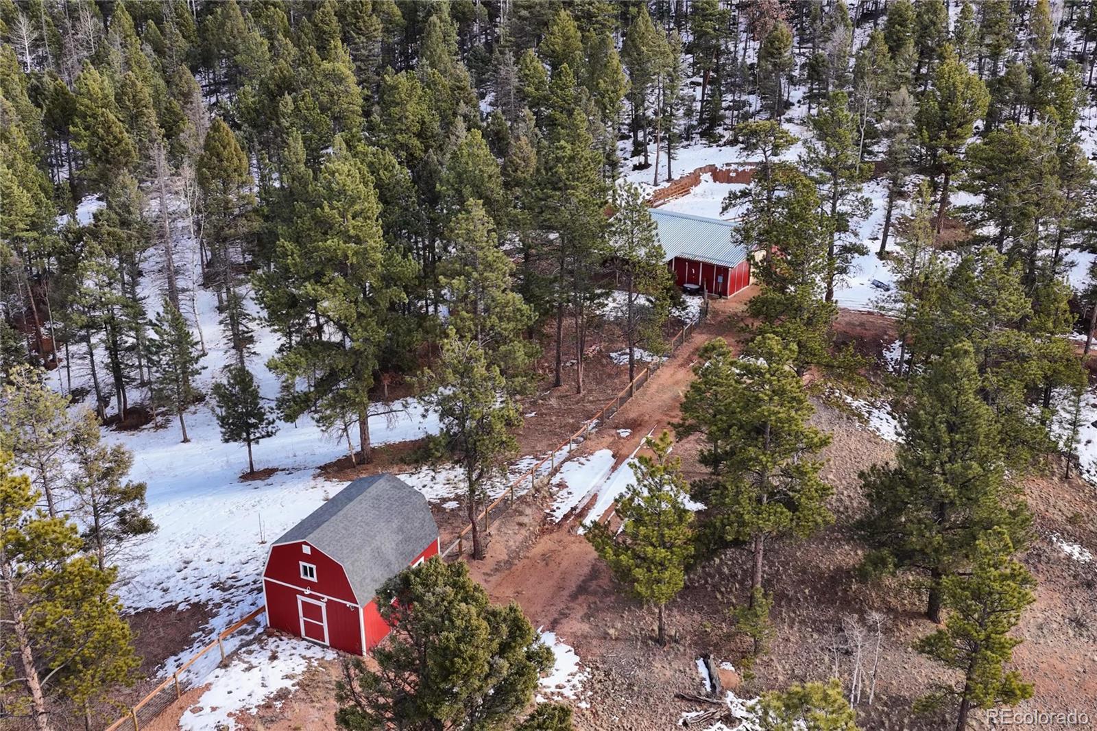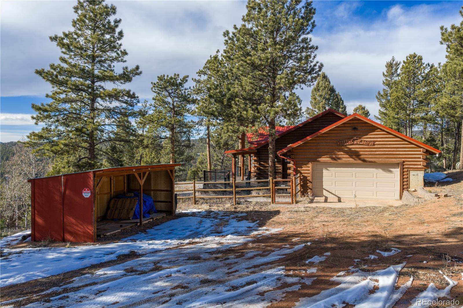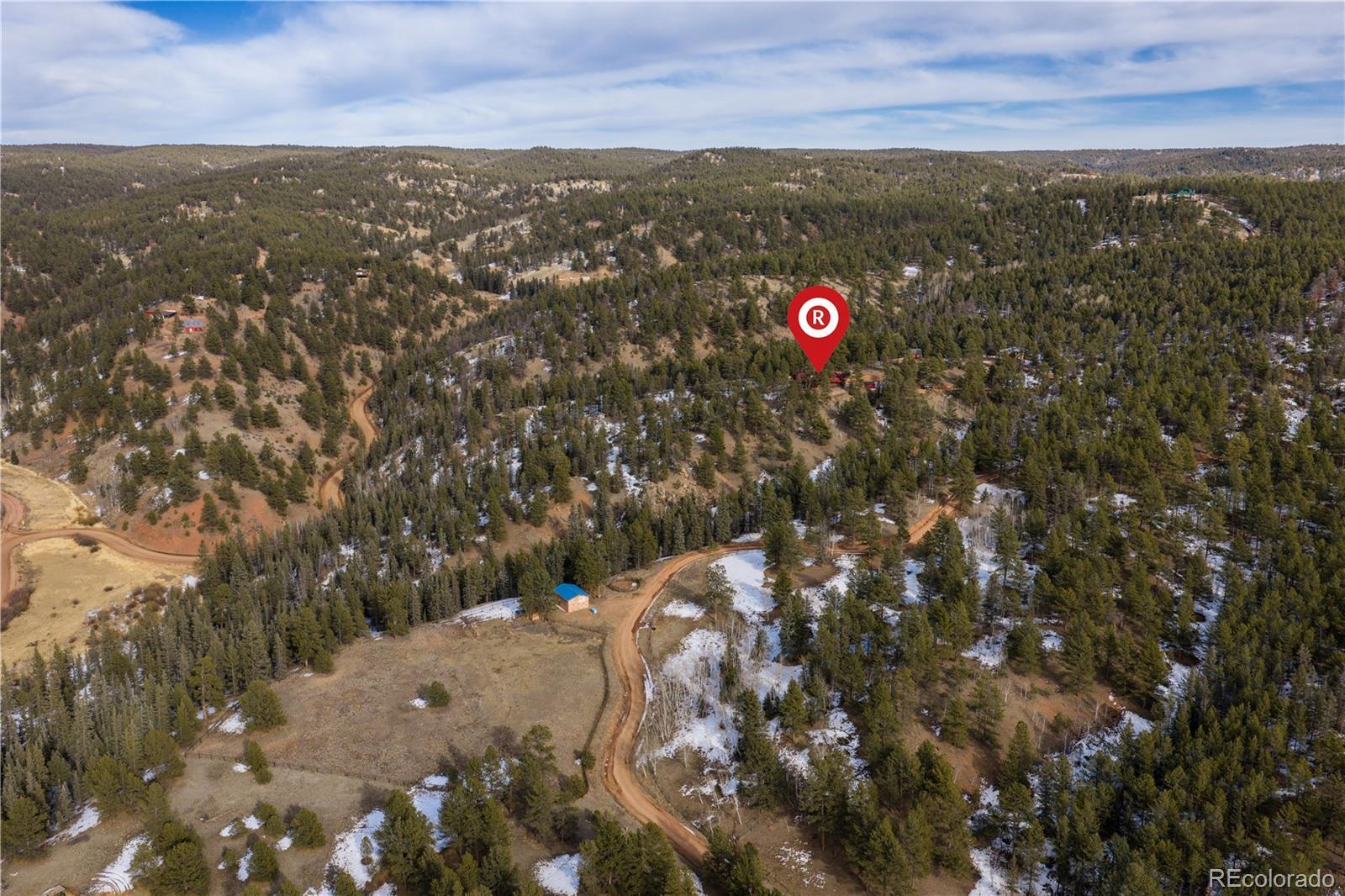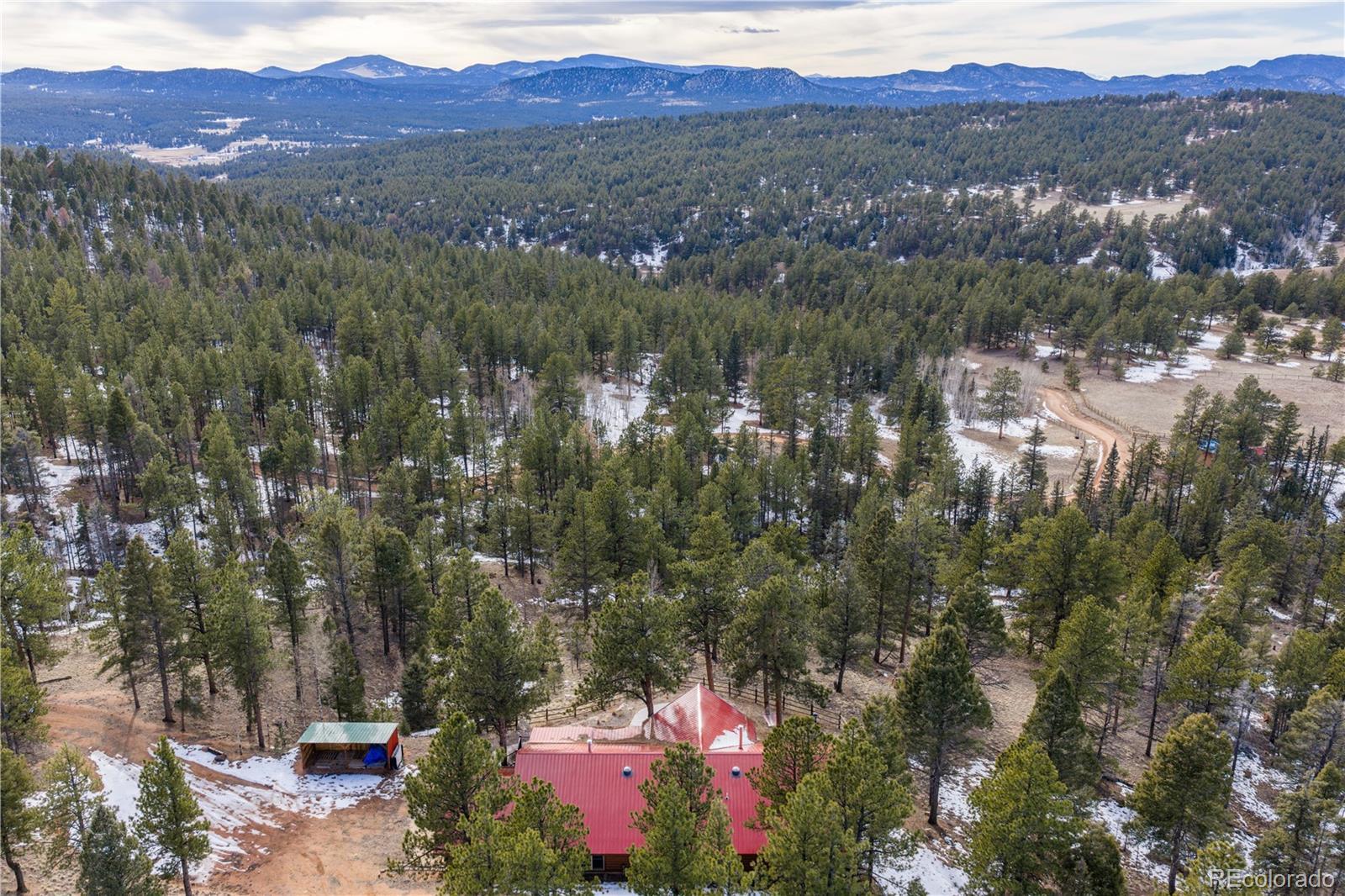 Experience the perfect blend of privacy, comfort, and wide-open space on this fantastic 40-acre property with breathtaking views in every direction. This beautifully updated one-level cabin offers true main-level living with 3 bedrooms, including a stunning primary suite featuring a spacious walk-in closet and a luxurious en suite bath with claw-foot soaking tub and walk-in shower. The open living area is filled with natural light, highlighted by vaulted ceilings and a cozy wood-burning stove, ideal for mountain evenings. The modern kitchen has been thoughtfully updated with granite countertops, a pantry, and brand-new stainless steel appliances, and flows seamlessly into a large laundry room conveniently located just off the kitchen. New hardwood flooring runs throughout the home, complemented by new carpet and fresh finishes. Outside, enjoy two brand-new Trex decks perfect for taking in the incredible views and peaceful surroundings. The property is fully weathered and winterized, with insulation beneath the cabin for year-round comfort. Multiple outbuildings add exceptional functionality, including two barns (one equipped with a 500-gallon cistern), a loafing shed, and a greenhouse, ideal for livestock, hobbies, or sustainable living. Just 25 minutes to Woodland Park and about a two-hour drive to Denver or DIA. A rare opportunity to own a turnkey rural retreat with modern updates, expansive acreage, and endless possibilities.