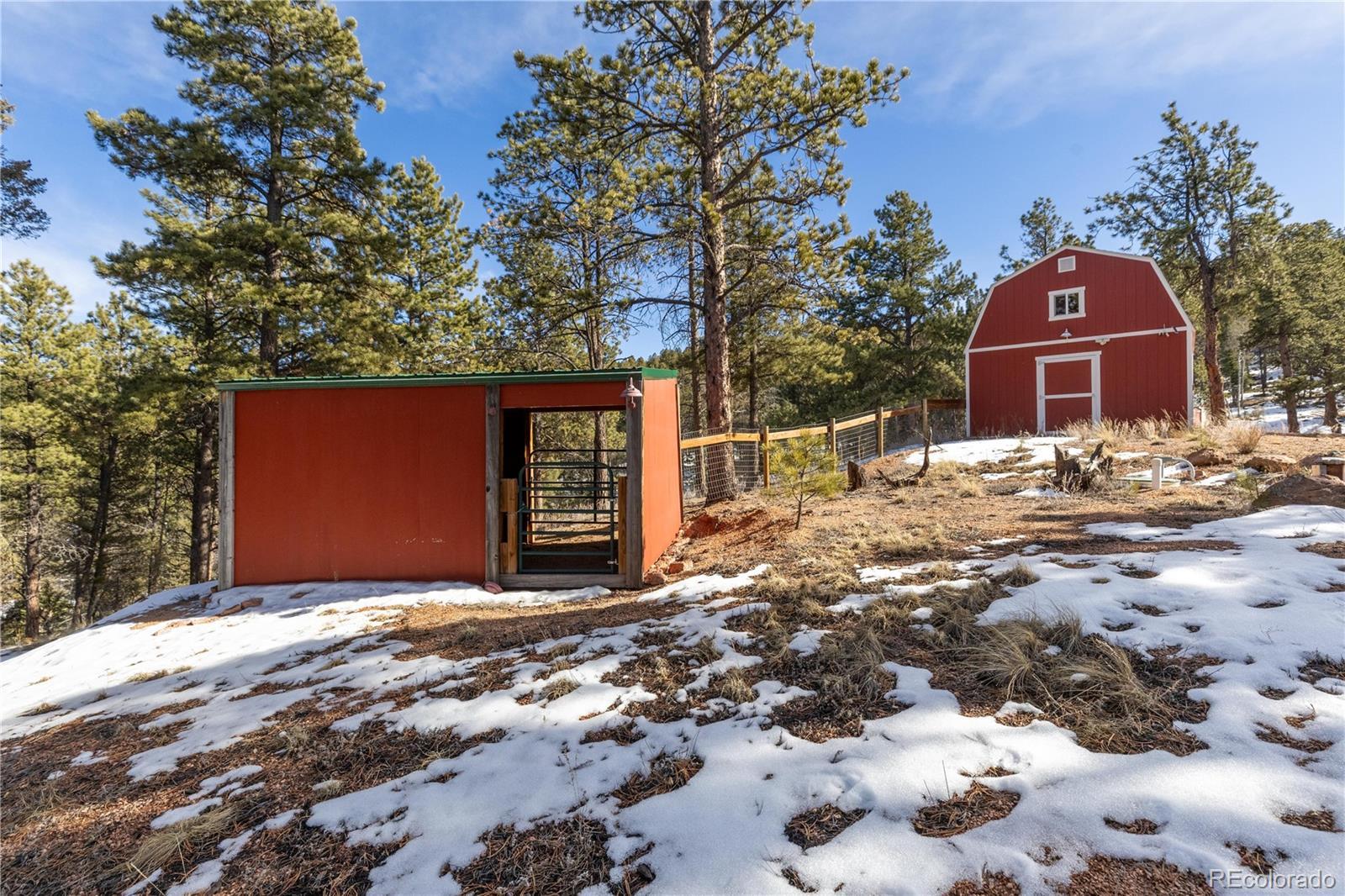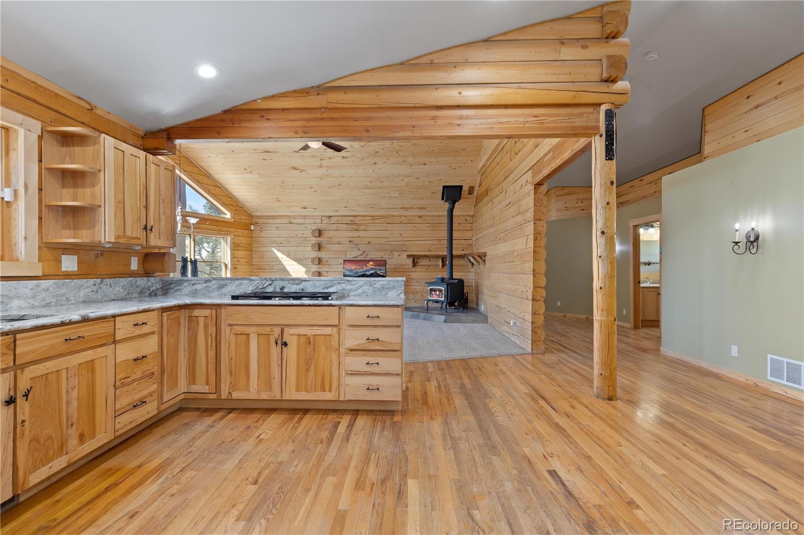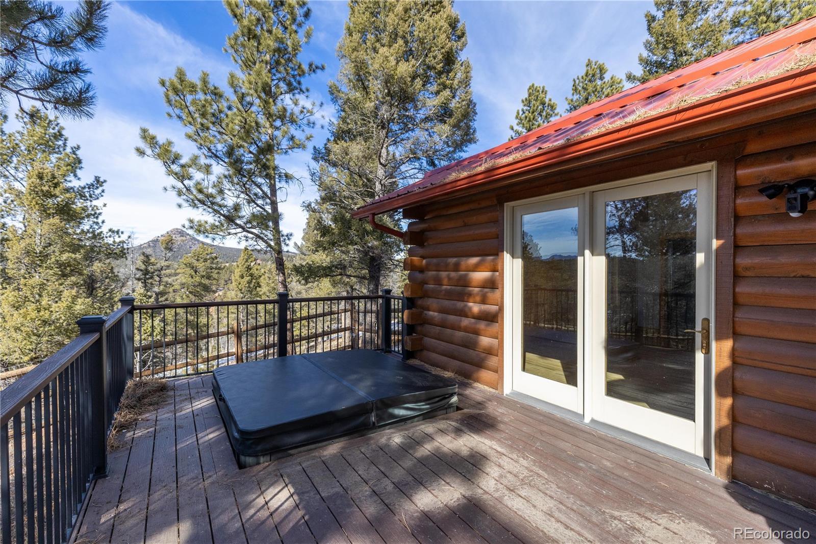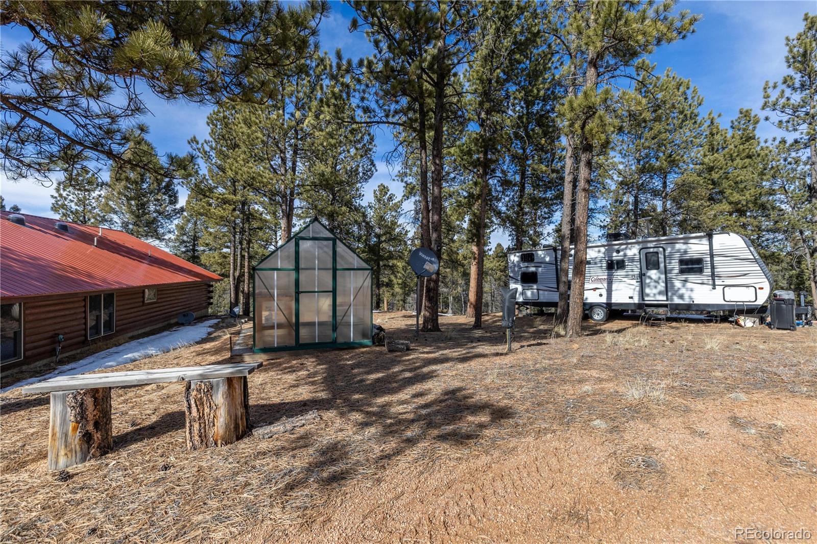 Experience the perfect blend of privacy, comfort, and wide-open space on this fantastic 40-acre property with breathtaking views in every direction. This beautifully updated one-level cabin offers true main-level living with 3 bedrooms, including a stunning primary suite featuring a spacious walk-in closet and a luxurious en suite bath with claw-foot soaking tub and walk-in shower. The open living area is filled with natural light, highlighted by vaulted ceilings and a cozy wood-burning stove, ideal for mountain evenings. The modern kitchen has been thoughtfully updated with granite countertops, a pantry, and brand-new stainless steel appliances, and flows seamlessly into a large laundry room conveniently located just off the kitchen. New hardwood flooring runs throughout the home, complemented by new carpet and fresh finishes. Outside, enjoy two brand-new Trex decks perfect for taking in the incredible views and peaceful surroundings. The property is fully weathered and winterized, with insulation beneath the cabin for year-round comfort. Multiple outbuildings add exceptional functionality, including two barns (one equipped with a 500-gallon cistern), a loafing shed, and a greenhouse, ideal for livestock, hobbies, or sustainable living. Just 25 minutes to Woodland Park and about a two-hour drive to Denver or DIA. A rare opportunity to own a turnkey rural retreat with modern updates, expansive acreage, and endless possibilities.