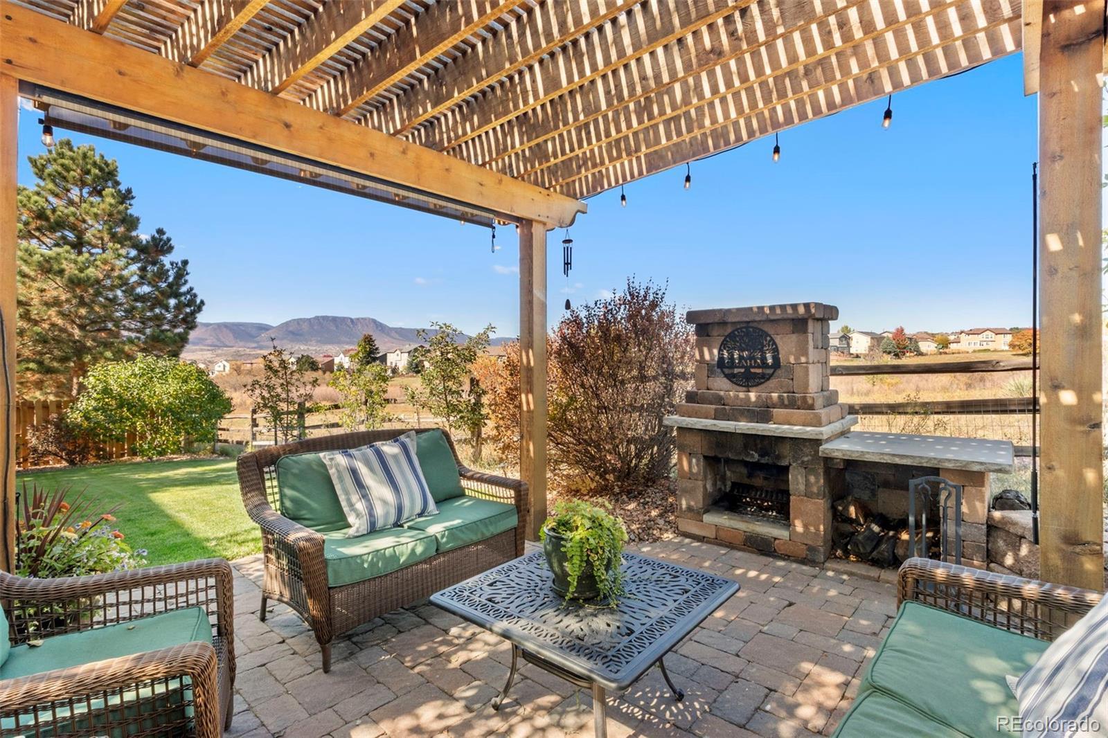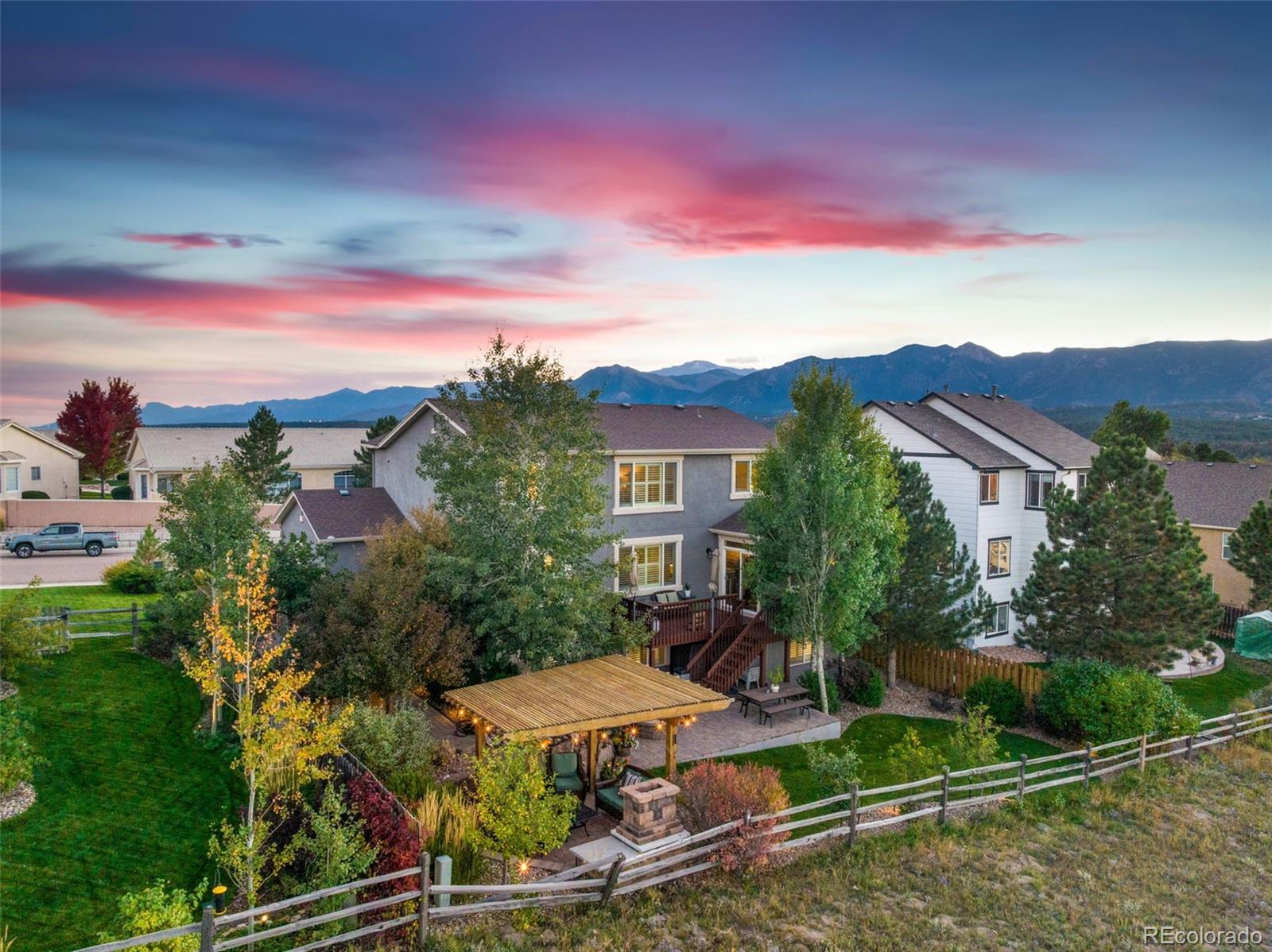 Welcome Home to this one-owner, move-in-ready, immaculate home in Struthers Ranch! If you love outdoor living with Views, Views, Views...this is your place! The backyard will let you experience all Colorado seasons to the fullest! Featuring a gas or wood burning fireplace, pergola, gas fire pit, water feature, mutiple level stone patio's wood deck, raised bed garden areas, fenced in side yard with a shed, lots of grass, three apple trees, one cherry tree, lilac bushes, among other mature landscape, and views into the open space where you can watch the sunsets, or the animals walking by! A Colorado Dream!! Upon entering the home, you will be greeted by hardwood floors, a formal dining area, and a spacious kitchen featuring upgraded cabinets, stainless steel appliances, an eat-in area, and an island with barstools that seamlessly connect to the living room, complete with a gas fireplace perfect for cozy nights. Double French doors will lead to a private office, rounding out the main level. The primary bedroom is located upstairs with a gorgeously remodeled spa-like 5-piece bath. An oversized shower with a rainhead, plus two additional shower heads, a soaking tub, double vanities, a make-up area, and a walk-in closet. There are three additional bedrooms upstairs with a remodeled full bath featuring two sinks. A laundry room, complete with a sink, rounds out this level. The garden-level basement features a large family room and a pool table, which is included with the home. There are two more bedrooms, one is very large and can double as a secondary office. There is also an additional full bath and storage area. Located in Northgate, this home is close to USAFA and offers a quick drive to Colorado Springs or Denver. You will not want to miss this gem! Take a look today!
